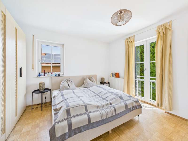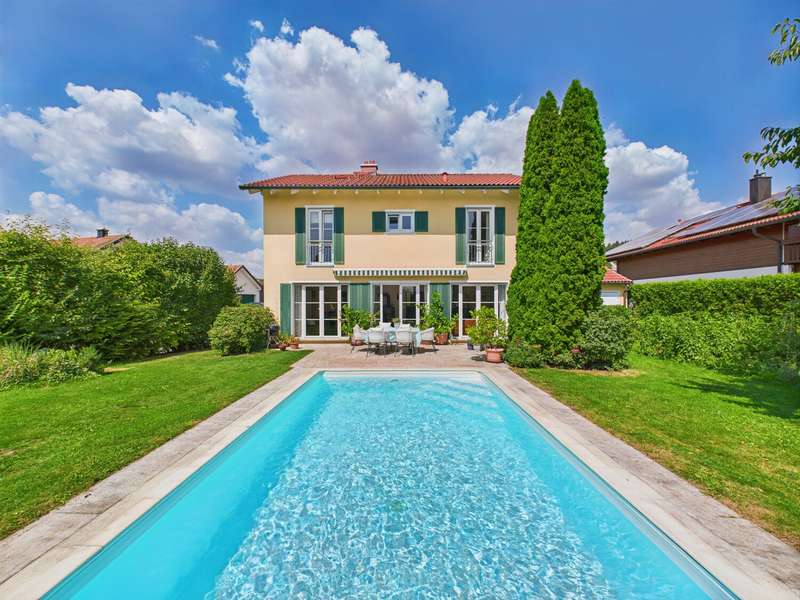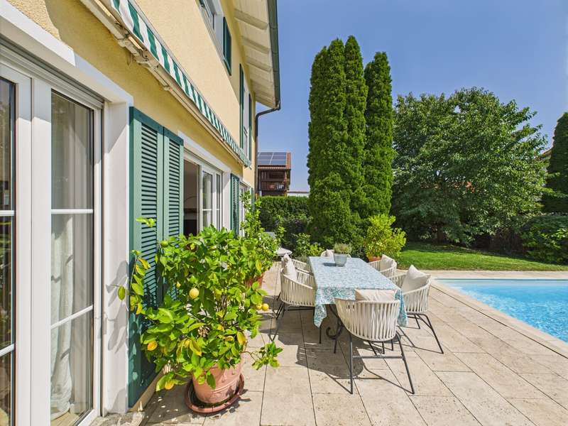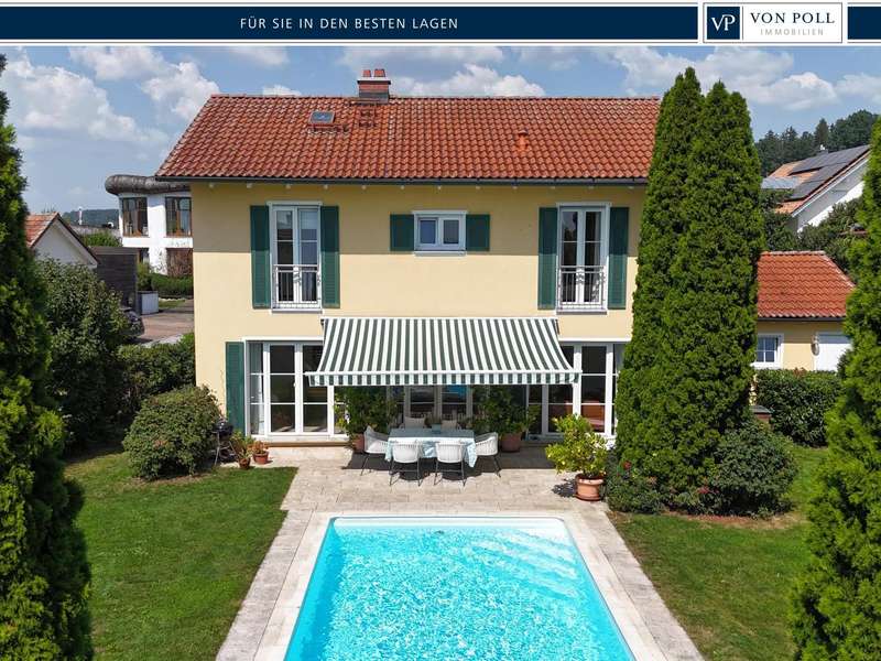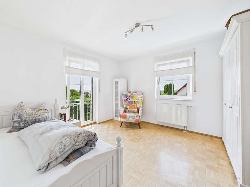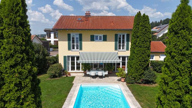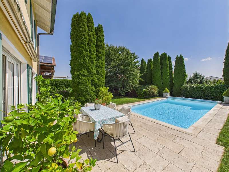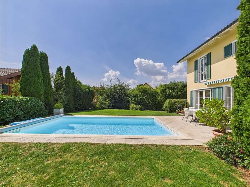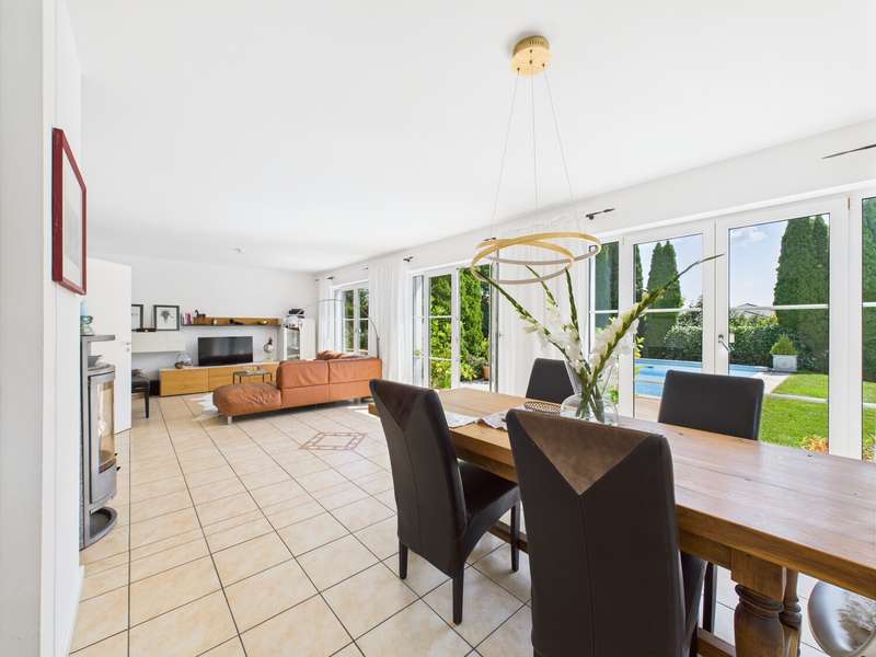 Charming detached house with pool - a home to fall in love with This extremely well-kept detached house with around 130 m² of living space on a generous plot of 712 m² combines charm, comfort and high-quality furnishings in an ideal way. From the very first glance, it is clear that a home has been created here with great attention to detail that radiates warmth, style and security. The house was built in 2002 as a solid construction and is in very good condition. A total of 4 rooms, including 3 bedrooms, are spread over three floors, offering plenty of space for family and guests. Bright rooms, large window fronts and a harmonious room layout create a living ambience that immediately invites you to feel at home. The spacious living room with access to the sunny terrace is particularly noteworthy. Here you can enjoy the view of the lovingly landscaped garden. An absolute highlight is the private swimming pool - a place for unforgettable summer days and sociable hours with family and friends. The property boasts a modern fitted kitchen, a guest WC, a cozy fireplace, underfloor heating and a fibre optic connection. There are also practical details such as a cellar, two garages and two additional parking spaces. The energy consumption certificate shows a final energy consumption of 91.9 kWh/(m²a) (class C, main energy source gas). This house is more than just a property - it is a place to arrive, feel good and enjoy. A retreat that harmoniously combines peace, comfort and quality of life.