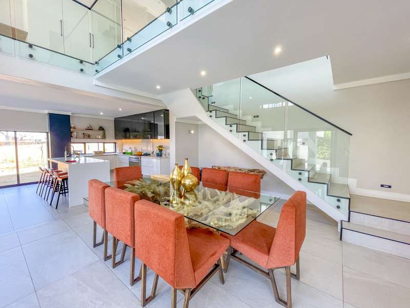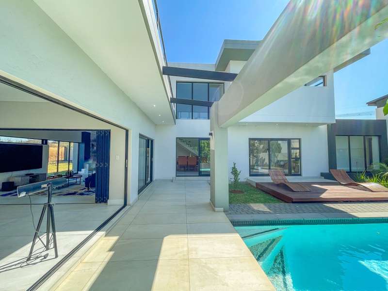 Modern Double Story home with a view of the Ankole for the Executive. This modern double-story family home is situated on a desirable quiet cul-de-sac street, Offering both style, space and a view of the famous American Beef cattle - Ankole. Designed with contemporary elegance, the home features open-plan living areas, large windows for natural light, and high-end finishes throughout. The home provides added privacy and curb appeal, making it an ideal choice for families seeking comfort and sophistication in a prime location within Midstream Ridge. Property features may also include: 5 Bedrooms l 5 Bathrooms l Kitchen l Scullery l Lounge l Pajama Lounge l Dining area l Study l Coffee Station l Workstation l Staff Quarters l 4 Garages. One bedroom down stairs. Double garages with Sliding door opening up on the pool for added space or man cave. Additional Property features also includes: Enclosed Patio with built in braai area and stylish bar for business or family entertainment. . Sparkling blue Pool with wooden deck for cocktail evenings. . Staff quarters has it’s own separate bathroom with a shower. The main Bedroom has its own bathroom and walk-in closet. Security. Ridge boasts its own Primary school, baby house, Action cricket, play area for children and shopping on Ridge. Midstream Estates has been in existence for 22 years and 6300 homes and families who chose Midstream Estate for the following 20 reasons: Central location l Security is top priority l Outstanding schools on your doorstep l Medical facilities l Variety of Housing options supported by banking institutions l Keeping the lights on l Estate convenience l Outdoor living for everyone l Lightning-fast Internet connection l Small-Town lifestyle l Healthy and fit community l Pet friendly - only 2 dogs permitted l Relax in Midstream l Establish your business in Midstream Estates l Children and families just love Midstream l Church communities l Storage solutions l Midstream keeps you informed l Strong homeowners associations with large cash reserves Read Less