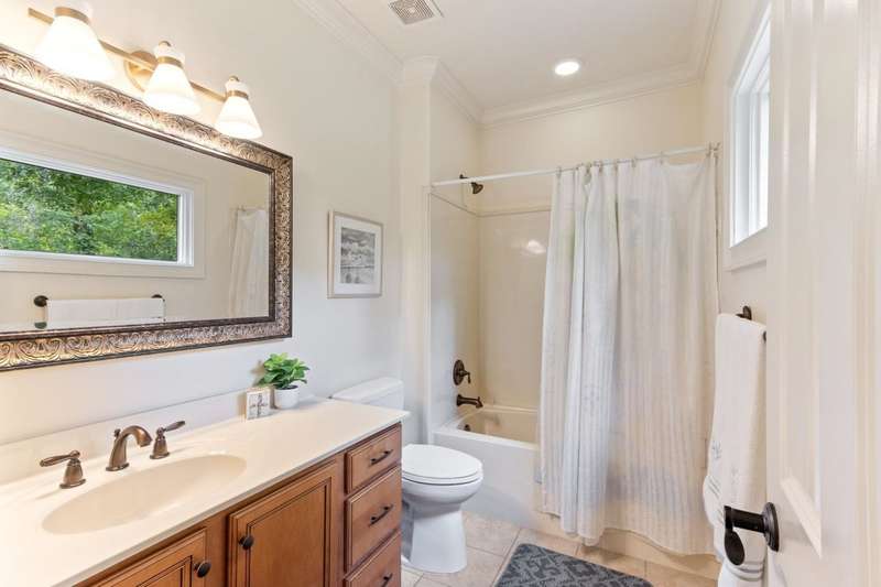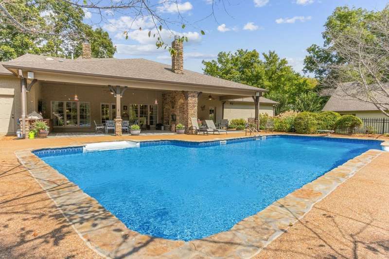 Custom designed and quality constructed by Hunter Ryan, this home impresses throughout it's thoughtful interior & outdoor spaces. Offering a perfect floor plan with 4 bedrooms & 3.5 baths down, and an oversized 5th bedroom (or bonus) w/full bath up, the capacious entertainment spaces in between offer light-filled rooms, tall, smooth ceilings, custom heavy moldings, a freshly painted interior, beautiful new lighting, stone fireplaces & a kitchen that delights! The covered rear porch offers a double sided fireplace, an outdoor kitchen, a heated/cooled 1/2 bath, with views of the glistening pool, fountain, and lush mature landscaping. There are 2 double side-load garages + a detached insulated drive-thru garage w/half bath & water heater that can be finished to expandable space, or enjoyed by the man of the house. Temp controlled storage in main garage & expansive walk-in attic/storage. Nestled on 4+ acres surrounded by nature, with deer and hummingbirds visiting daily. A MUST SEE!!!
