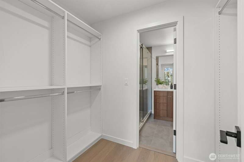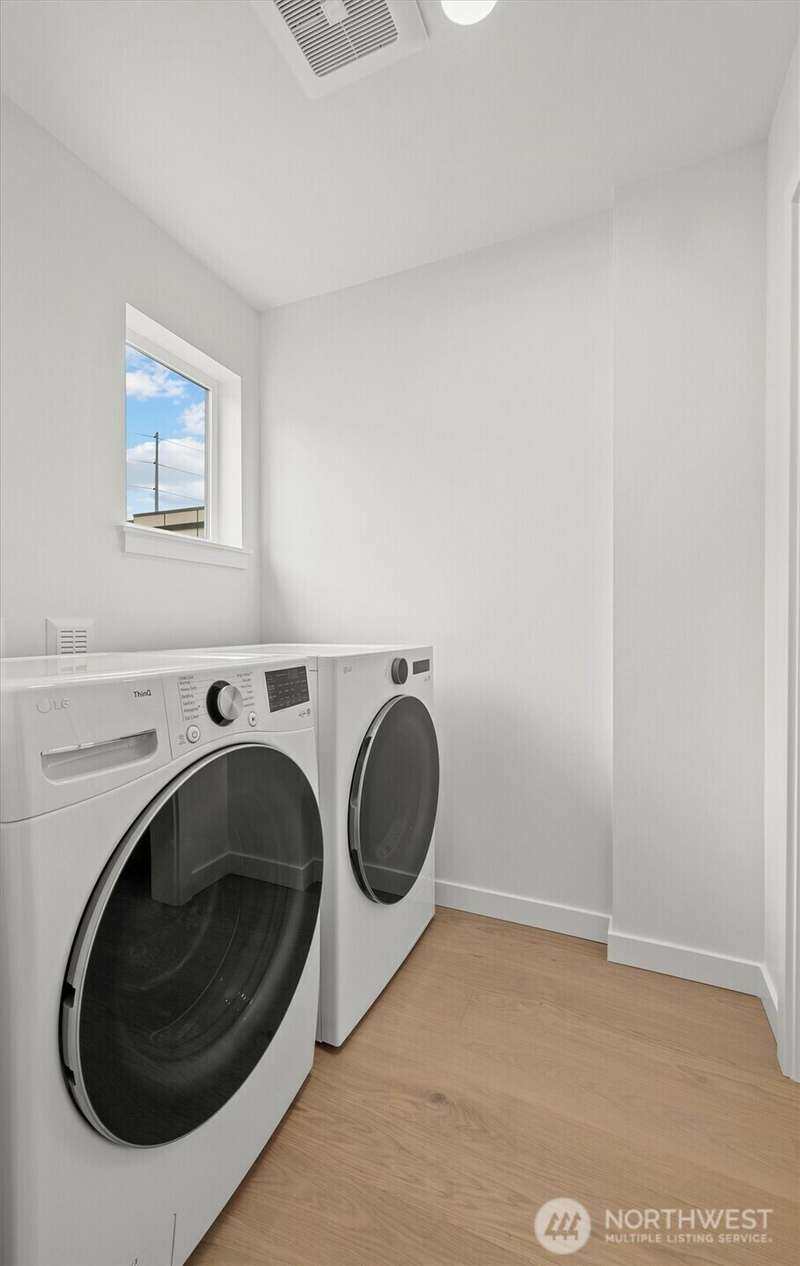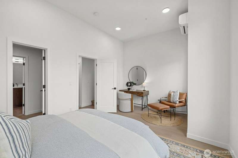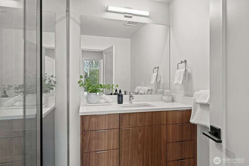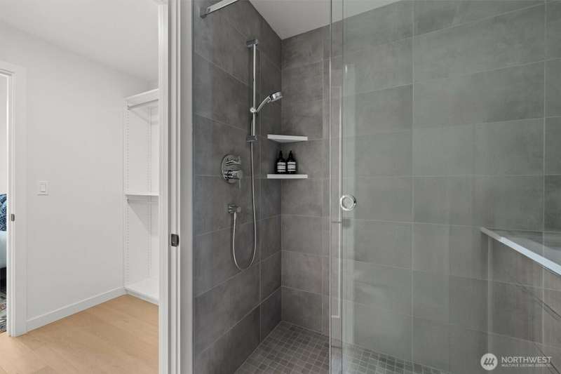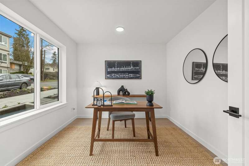 New Modern Quality built Townhome with large garage on quite street in convenient Northgate. Easy access to stores, Restaurants, Coffee & I-5, Spacious & light living & dining room with wide plank Hardwood floors, Lots of tall windows facing west, High ceilings, Custom steel handrails with hardwood stairs, Large Gourmet kitchen with Island, Quartz counters & undermount sink, Stainless steal High end appliances , Lower floor with guest bedroom, Top floor with Master bedroom & bath, 3/4 tile shower & large walk-in closet, Mini splits for heating & cooling, Roof deck with nice MTN & territorial views.