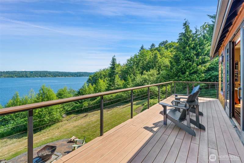 Property has a unique combination of attributes. Privacy and seclusion: 2.1 acres at end of a gated, private road, 2 adjoining tax lots available. Zero road noise. Abundant birds/eagles, wildlife, sea mammals/fish, oyster bed. Location: waterfront, beach access via steps and short ladder. Cascade Mtn views. Living space east facing, so pleasant afternoons, sunny mornings. Easy access to Seattle, 1 mile to Southworth Ferries (car ferry to West Seattle; walk on/bike fast-ferry to downtown Seattle in ~30 minutes) Custom house: Open main floor plan, beautiful views of Colvos Passage, in-floor heating both floors. Covered deck off kitchen for meals, bird watching. Lovely landscaping. Large 2-car garage plus out buildings.