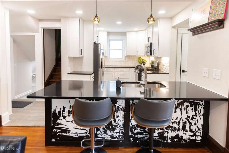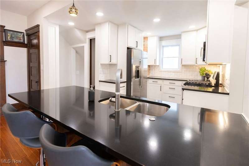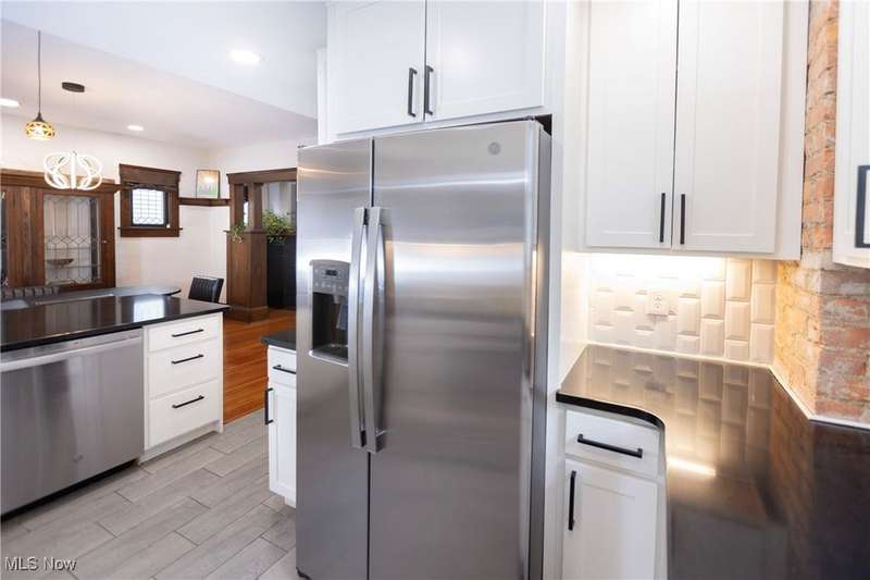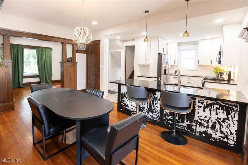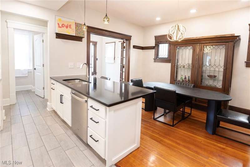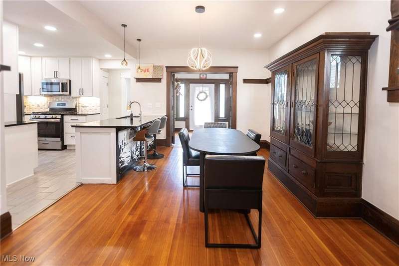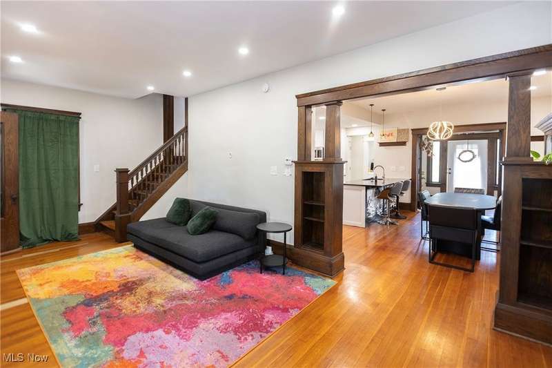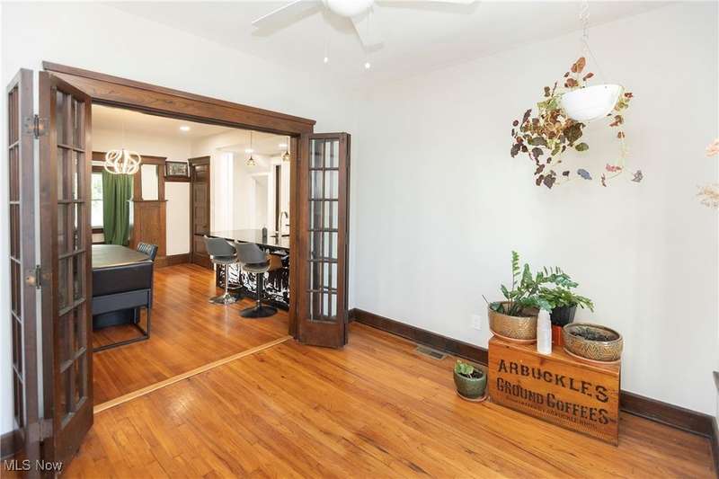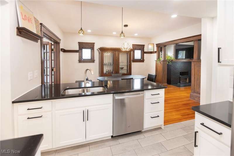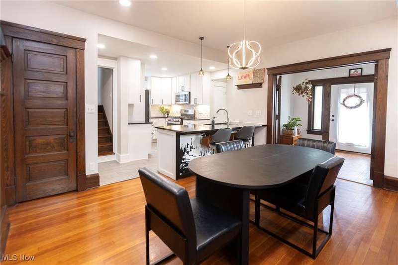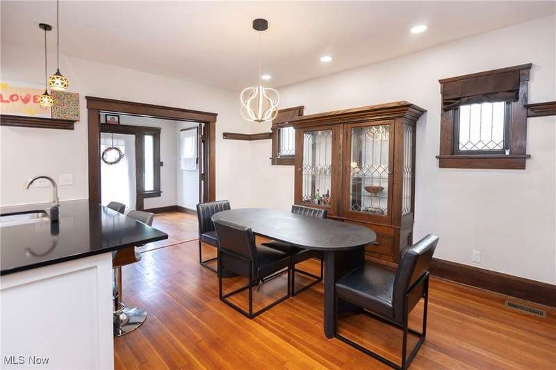 Step into timeless elegance with this lovely older home, rich in character and craftsmanship. Gorgeous natural woodwork and a stunning built-in buffet with original leaded glass doors showcase its historic charm, while thoughtful renovations offer modern comfort. The spacious, open kitchen and three fully updated bathrooms blend style and function seamlessly. Gleaming hardwood floors flow throughout, leading to a completely finished third floor?perfect for a guest suite, office, or recreation space. The spacious primary suite features tall ceilings and an amazing ensuite bath with your own stack washer and dryer! Enjoy quiet mornings on the inviting covered front porch, or entertain in the private backyard featuring a brick patio. With a perfect mix of old-world beauty and contemporary upgrades, this home is ready for its next chapter.