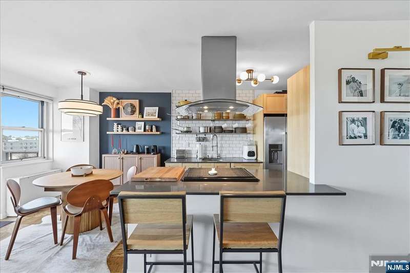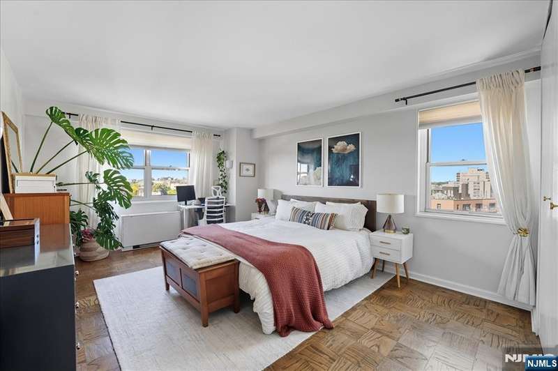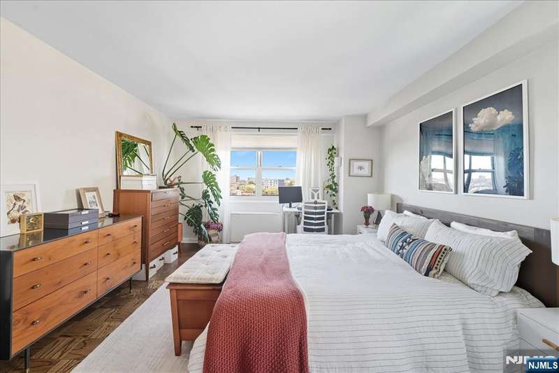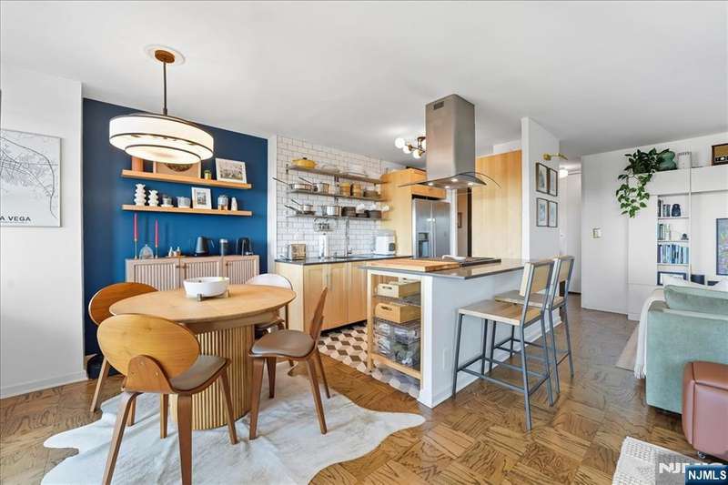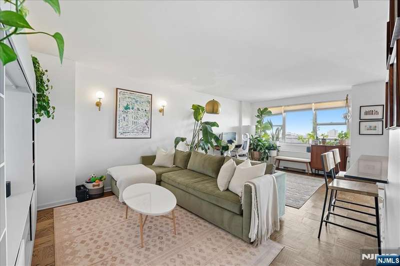 Bright and inviting corner home with a private balcony to enjoy open-sky views!!This residence offers a spacious open layout with oak parquet floors, modern finishes, and abundant natural light. The living and dining areas flow seamlessly for both entertaining and everyday comfort, while the updated kitchen features open shelving, stainless steel appliances, and designer lighting. The bathroom has been updated with modern fixtures for a chic, ciontemporary touch. This full-service high-rise provides exceptional amenities including a pool, gym,laundry facilities, and 24/7 security. Ideally located along scenic Blvd East, you'll enjoy quick access to NYC buses,ferries, and the ligh rail. The vibrant neighborhood offers countless conveniences-Whole Foods, Trader Joe's, Mitsuwa, parks, dining,and boutique shopping are all nearby. Monthly fee covers taxes,gas,electricity, water,A/C,pool and use of all amenities-delivering a truly turn-key lifestyle in a prime location.