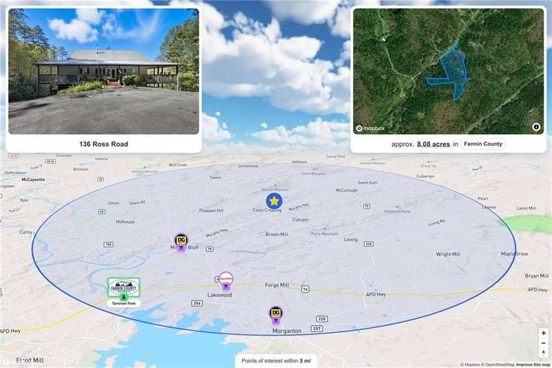Escape to the mountains and discover this private 5-bedroom, 3-bathroom retreat. Beautiful home on 8.08 acres nestled on a peaceful mountain property with two creeks and a perfect blend of flat bottom land and wooded privacy. This ranch on a full finished basement offers incredible space and flexibility, with each level boasting its own three-sided wrap-around covered porch—ideal for morning coffee, evening relaxation, and taking in the mountain air. The main floor welcomes you with an open living room featuring a wood-burning stove, creating a warm, inviting space that flows seamlessly into the kitchen and dining area. The large primary suite includes a spacious ensuite bath with double vanities, separate tub and shower, and plenty of room to unwind. A second bedroom, full bath and laundry on the main level make this layout ideal for guests or family. Downstairs, the fully finished terrace level expands your living options with a second kitchen, two additional bedrooms, den, flex room, a full bath—perfect for multi-generational living, rental income, or a private guest suite. Outside, enjoy a two-car carport, beautiful mountain surroundings, and the sound of running creeks that add to the property’s serene atmosphere. Whether you’re dreaming of a mountain homestead, vacation getaway, or full-time retreat, 136 Ross Road offers the best of North Georgia living—privacy, space, and natural beauty all in one.