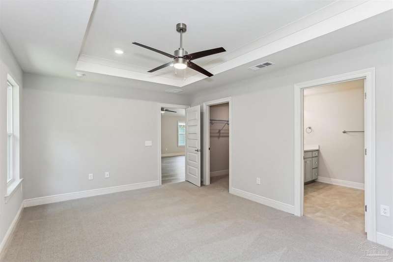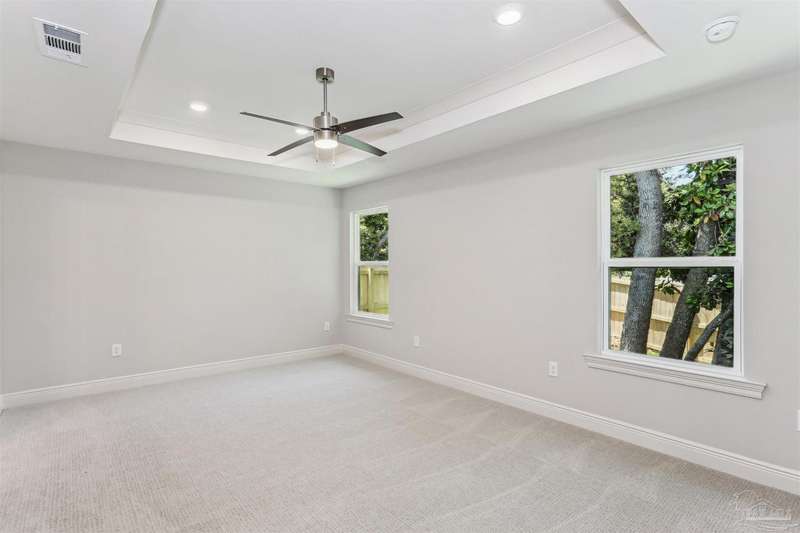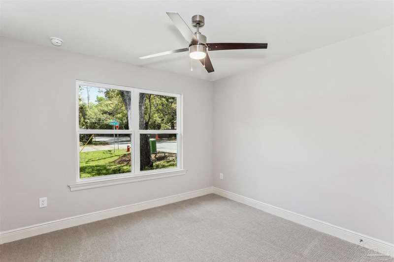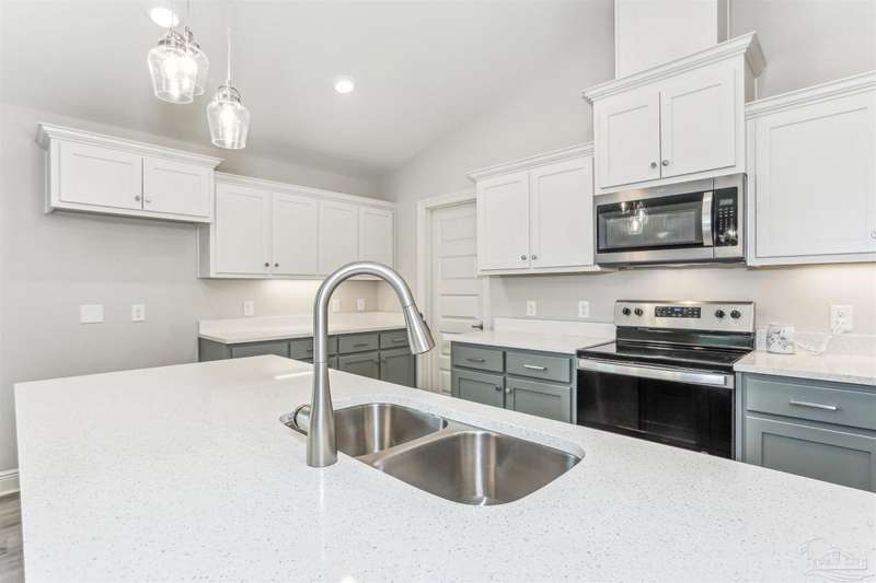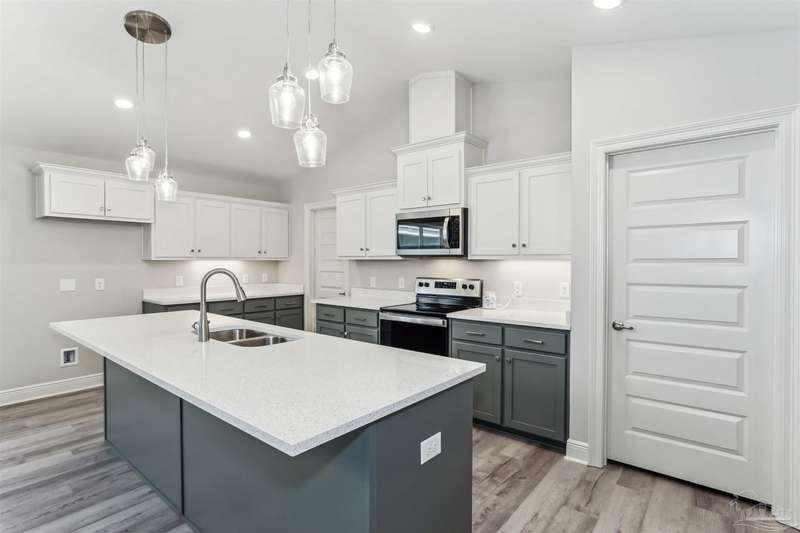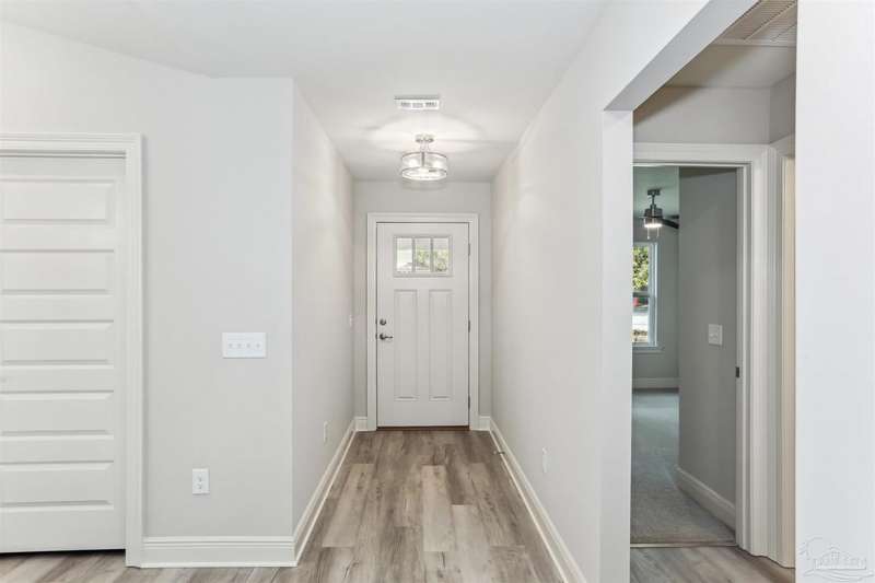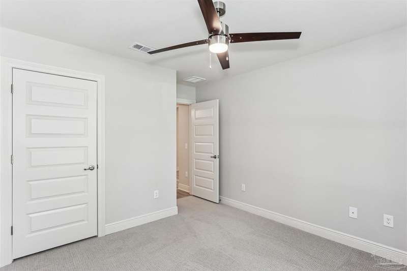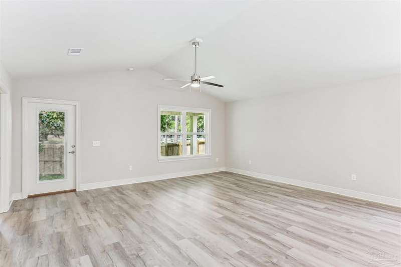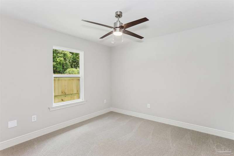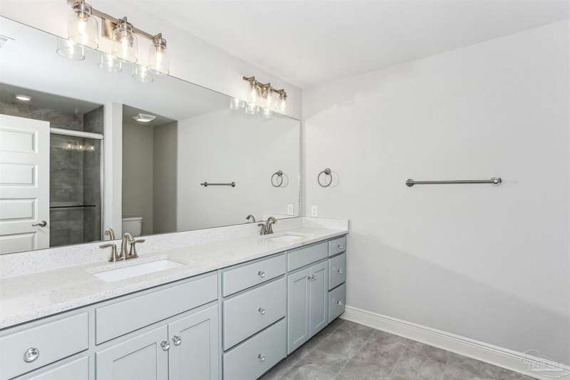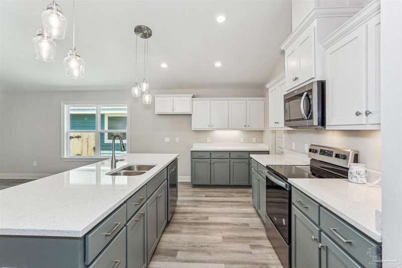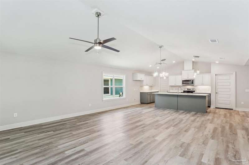 Seller Concession Available! New Construction in Perdido Key on Innerarity Point! This open concept single story home features 1717 square feet, 3 bedrooms, 2 baths, and double car garage. The home starts with a true stem-wall foundation, exterior has brick and hardy plank siding, and has front and rear porches with a privacy fence in the rear of the home. All windows are vinyl, low-e windows with fabric shield. Fully sodded yard, front landscaping, with sprinkler system. Interior features luxury vinyl plank floors in the living areas and carpet in the bedrooms. Primary bedroom has trey ceilings, recessed lighting, walk in closet, and leads to the primary bath that has dual vanities separate, tiled, walk in shower, and tile floors. Kitchen contains large island, overlooks the family room, and is equipped with custom cabinets, pantry, stainless steel appliances, and quartz countertops. Inside laundry with washer and dryer hookups. This home is close to Galvez Landing boat launch, Hub Stacy's, The Pointe, and is minutes from grocery stores, Target, Wal-Mart, Starbucks, CVS, churches, State Parks, Johnson's Beach, and back gate of NAS. of Perdido Key. Come own your piece of paradise in Perdido Key!