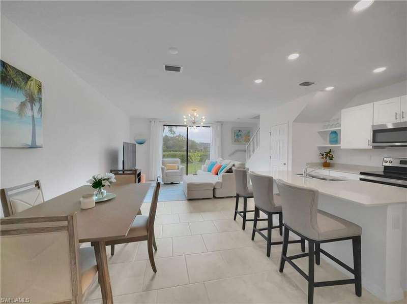 RARE BUYING OPPORTUNITY! BEAUTIFUL TOWNHOME W/GORGEOUS LAKE VIEW! Bennett floor plan by Lennar feat. 3 bedrooms, 2.5 bathrooms and 1-car attached garage. Located in the popular Townhome section of the highly sought-after Portico community in sunny Fort Myers, FL. One of the Best Units, w/lake view, western rear exposure and the shortest walk to the community amenities center and pool! Smart Home w/plenty of room on two floors. First floor with open living concept and tile flooring throughout. The heart of the home is the great room w/tall glass sliding doors that flood the space with natural light. The kitchen is a chef's dream, feat. a large island, quartz countertops, white cabinetry, stainless-steel appliances + walk-in pantry. Enjoy preparing meals while still being part of the action, perfect for both daily living and entertaining. Also located on the first floor are a powder bath and a large storage space under the stairs to the second floor. All bedrooms and other bathrooms are on the second floor. The owner's suite is a true retreat, offering stunning lake views through two windows, complete with a large walk-in closet and ensuite bathroom feat. dual vanities + large walk-in shower. Two additional bedrooms provide ample space for family and guests, while the second full bathroom on this floor ensures convenience and privacy for all. Furniture is negotiable. Move right in and enjoy your very own piece of Florida paradise! Surrounded by the natural beauty of SW Florida, PORTICO is an access-controlled community w/Low HOA fees. Amenities include clubhouse, community pool, gym, yoga/exercise room, tennis, pickleball, basketball, play area + more. Pets, Fences/Patio Enclosures & LSVs permitted! Great location, short drive to I-75, shopping, dining & more!