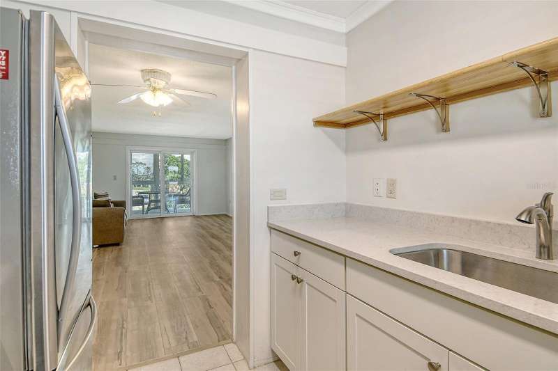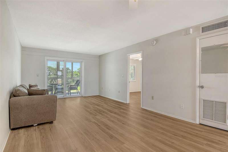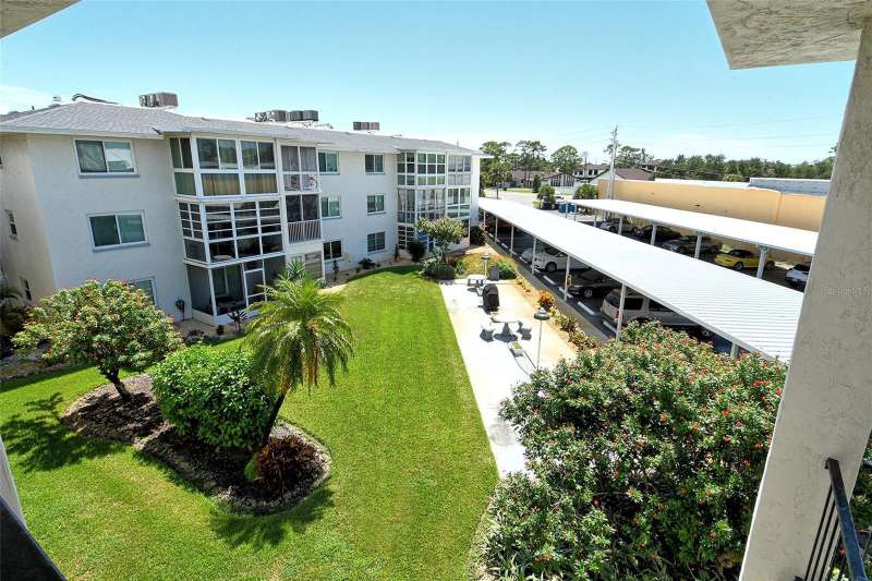 Under contract-accepting backup offers. Welcome to this beautifully updated, 2-bedroom, 2-bathroom condominium, nestled in the heart of Venice Island within a vibrant 55+ community. This bright and spacious unit is located on the third floor of an elevator building, offering a peaceful and private retreat just minutes from Venice Beach, historic downtown Venice, and a variety of local shops and dining. With a fresh coat of paint and newly installed LVP flooring throughout the main living areas, this condo exudes a welcoming, modern feel. The open floor plan is perfect for relaxing and entertaining, with both bedrooms offering generous space, walk-in closets, and en-suite bathrooms. The screened lanai is an ideal spot to enjoy Florida’s sunshine while sipping your morning coffee. The kitchen has been beautifully updated with new countertops, upgraded appliances, and a sleek design that enhances the overall appeal of the space. Both bathrooms have been thoughtfully renovated with stylish, tiled showers, modern vanities, and high-quality finishes. Impact windows and sliders throughout provide peace of mind and energy efficiency, including on the lanai. The Holiday Condominiums community offers resort-style living with meticulously maintained landscaping, a heated pool, and a spacious clubhouse for social gatherings. For added convenience, the building includes private laundry facilities on each floor and a personal storage locker for your beach gear or seasonal items. With covered parking just steps from your door and close proximity to golf courses, recreational trails, and cultural attractions, this condo offers the ultimate in island living. Whether you're looking for a full-time home or a seasonal getaway, this property is an ideal choice. Located in a sought-after X flood zone, it also offers excellent potential as a rental investment. Don't miss the chance to experience the relaxed, coastal lifestyle of Venice Island—schedule your private showing today and see for yourself how perfect this home is for you!