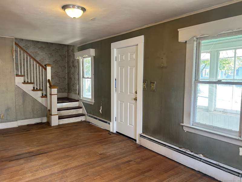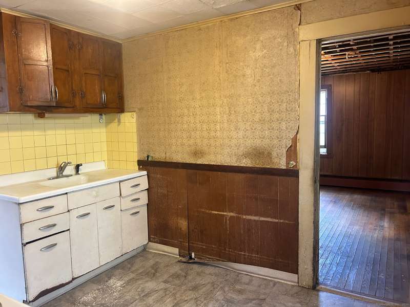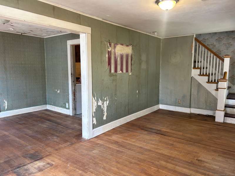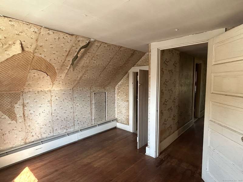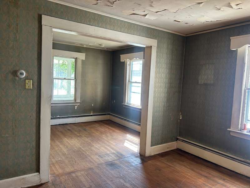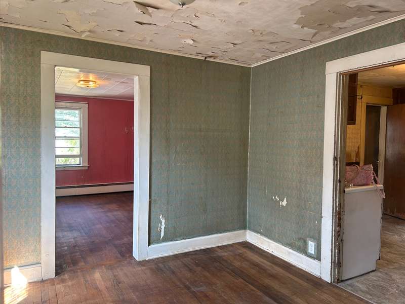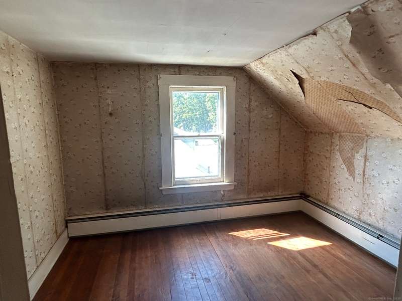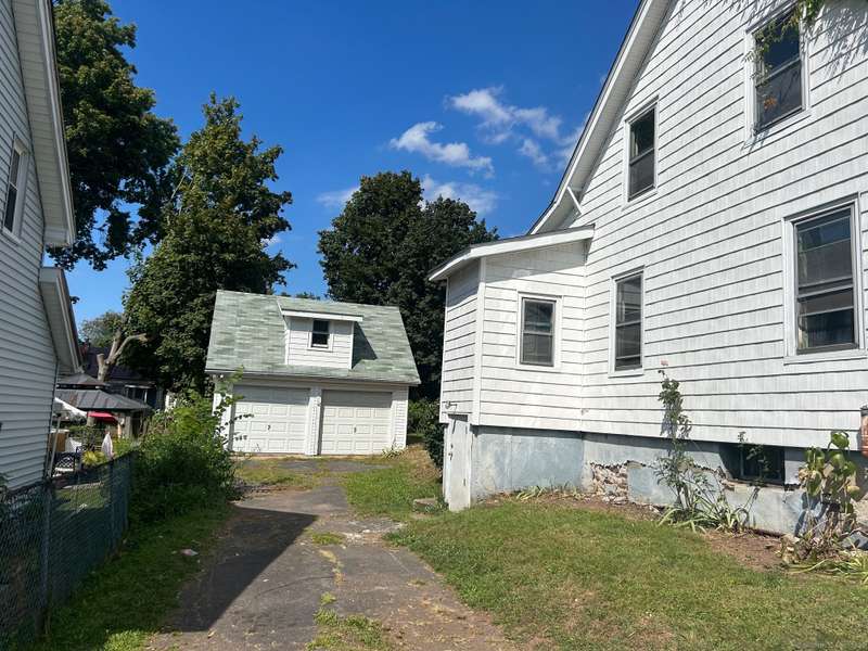INVESTOR OPPORTUNITY! Solid home on a nice lot in need of rehab. High quality vinyl siding on the exterior of the home and detached garage and the home has good bones. The first floor features a living room, dining room, kitchen, bedroom with closet, and another room that could be den, office, playroom, or room to add a laundry & half bath, etc. Upstairs are 3 bedrooms and a full bath. Nice front porch. Hardwood floors throughout except the tiled bathroom and vinyl tile in the kitchen. NOTE: All accessible copper pipes in the basement have been removed so there is no water to the home. In addition to plumbing, it will need a functional kitchen, windows, electrical upgrade, and lots of cosmetics. On the plus side, there is a lot of value in the garage which is newer and has a huge storage room on the second floor. The boiler was new in 2017. The basement has potential with good space and a "bathroom" according to the town, so it is plumbed. No info on the roof age. NO DISCLOSURES (Estat