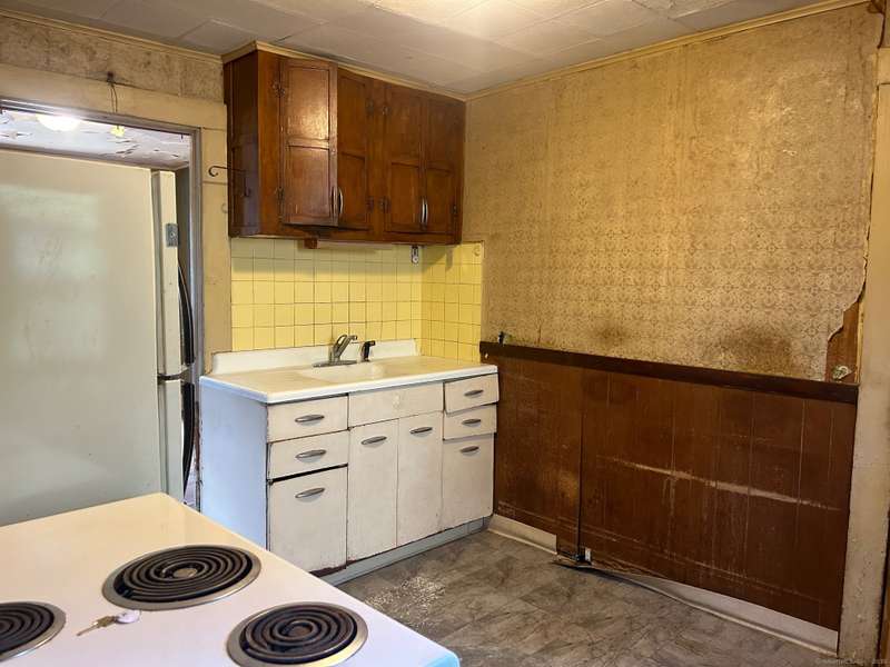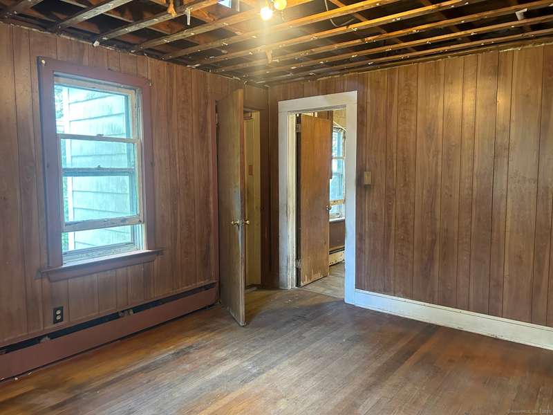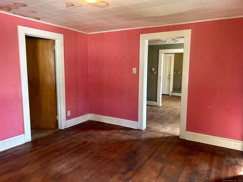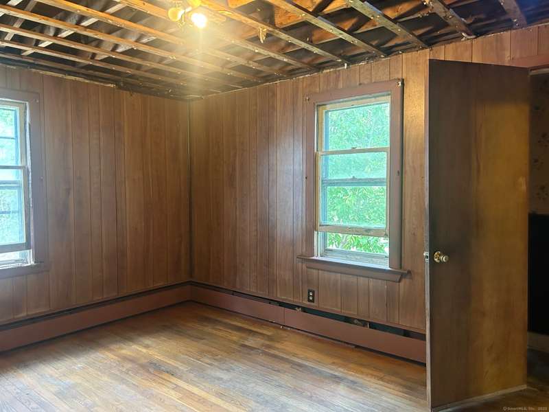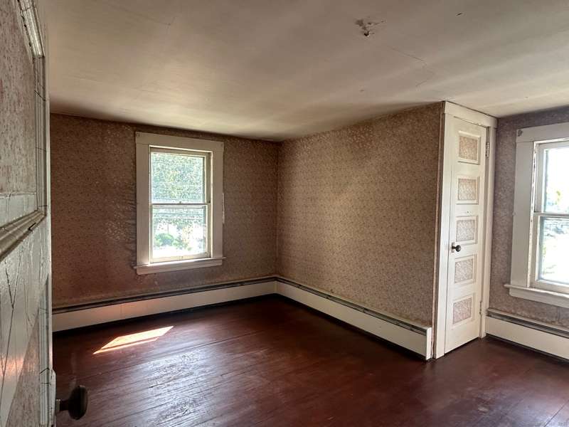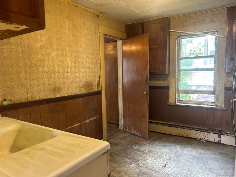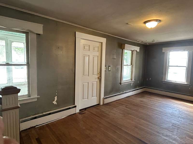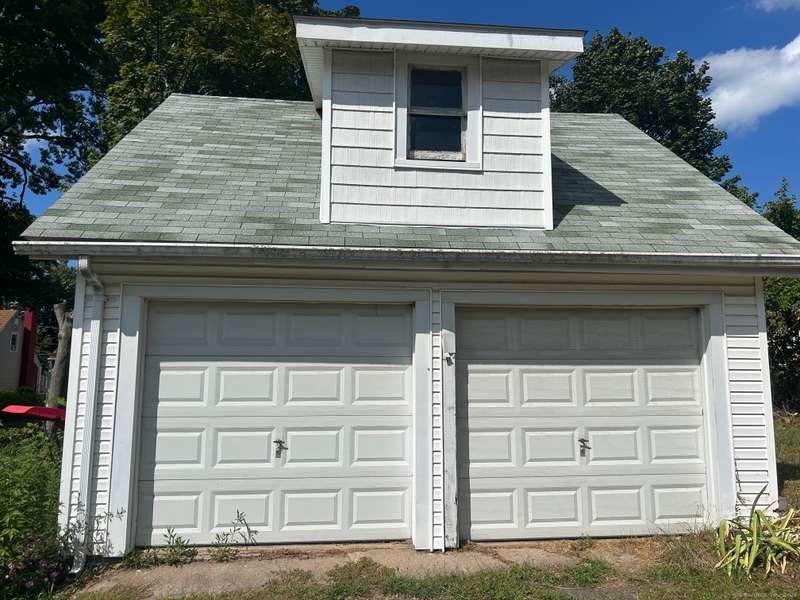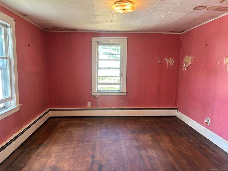 INVESTOR OPPORTUNITY! Solid home on a nice lot in need of rehab. High quality vinyl siding on the exterior of the home and detached garage and the home has good bones. The first floor features a living room, dining room, kitchen, bedroom with closet, and another room that could be den, office, playroom, or room to add a laundry & half bath, etc. Upstairs are 3 bedrooms and a full bath. Nice front porch. Hardwood floors throughout except the tiled bathroom and vinyl tile in the kitchen. NOTE: All accessible copper pipes in the basement have been removed so there is no water to the home. In addition to plumbing, it will need a functional kitchen, windows, electrical upgrade, and lots of cosmetics. On the plus side, there is a lot of value in the garage which is newer and has a huge storage room on the second floor. The boiler was new in 2017. The basement has potential with good space and a "bathroom" according to the town, so it is plumbed. No info on the roof age. NO DISCLOSURES (Estat