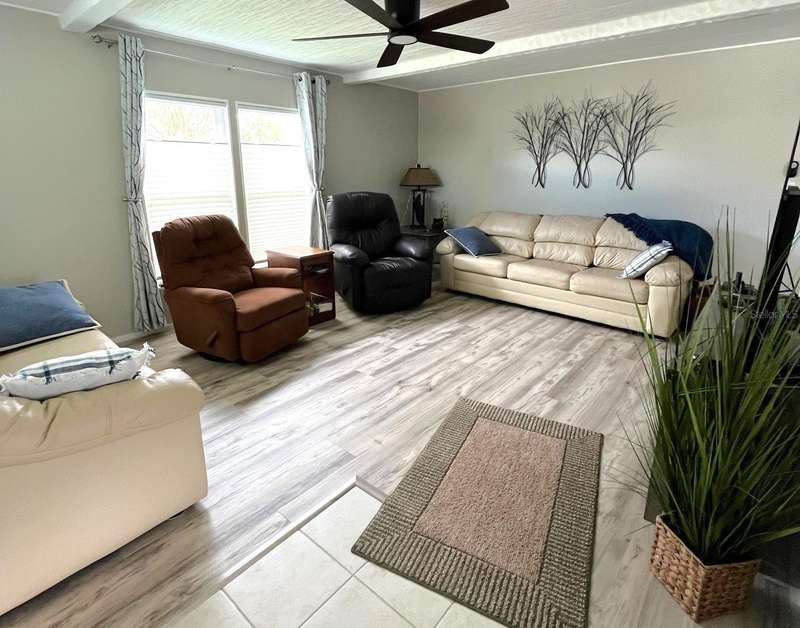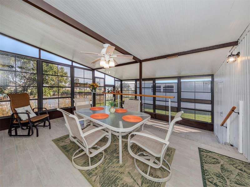 Nestled in the serene Lazy River community of North Port, Florida, this charming manufactured home offers the perfect blend of comfort and waterfront living. Situated along a canal off of the Myakka River, the property boasts a private dock, providing residents with easy access to the water and stunning views right from the rear lanai. The home features a split plan with 2 bedrooms and 2 bathrooms, providing a cozy and inviting living space. Enjoy the convenience of a new roof and addition of an extra wide carport, enhancing the property's functionality and aesthetic appeal. This turnkey furnished home features many thoughtful upgrades that include a new refrigerator, dishwasher, disposal, and modern toilets. The master bedroom is tastefully furnished with new furniture and a Sleep Number bed, ensuring a restful night's sleep. Whether you're a water enthusiast, nature lover, or simply seeking a peaceful retreat, this Lazy River home with its captivating water view and thoughtful amenities promises an idyllic lifestyle in the heart of North Port, Florida.