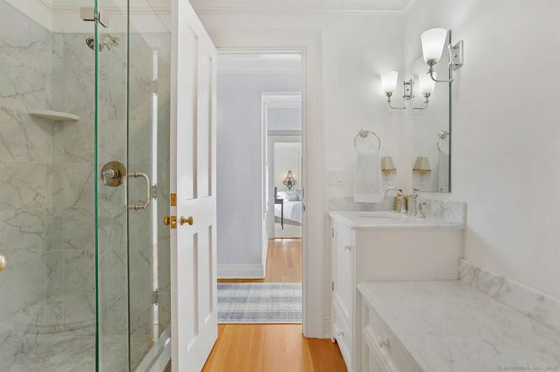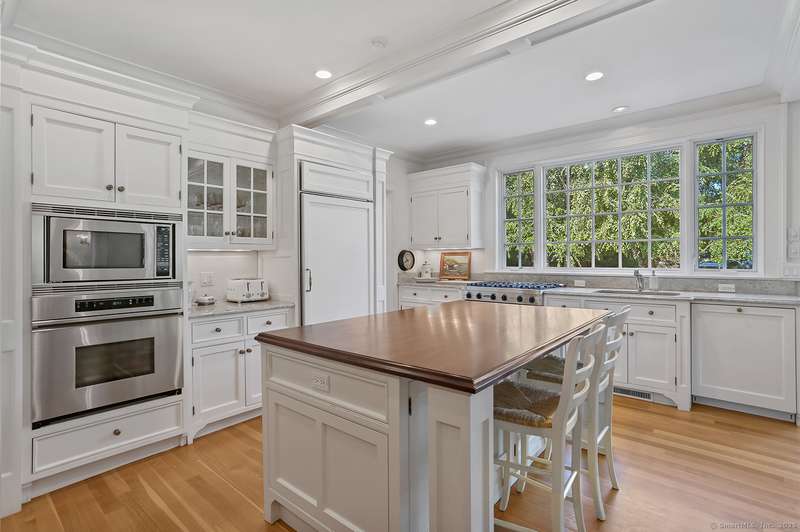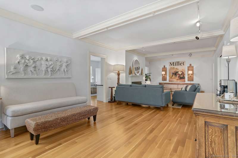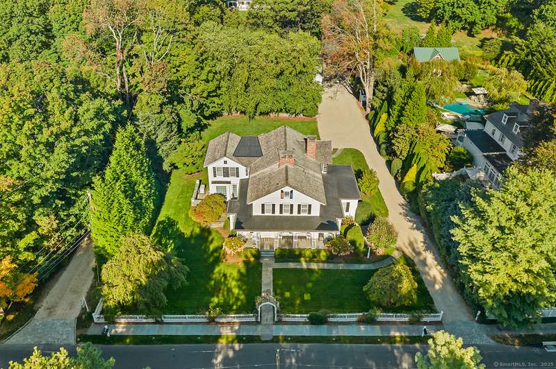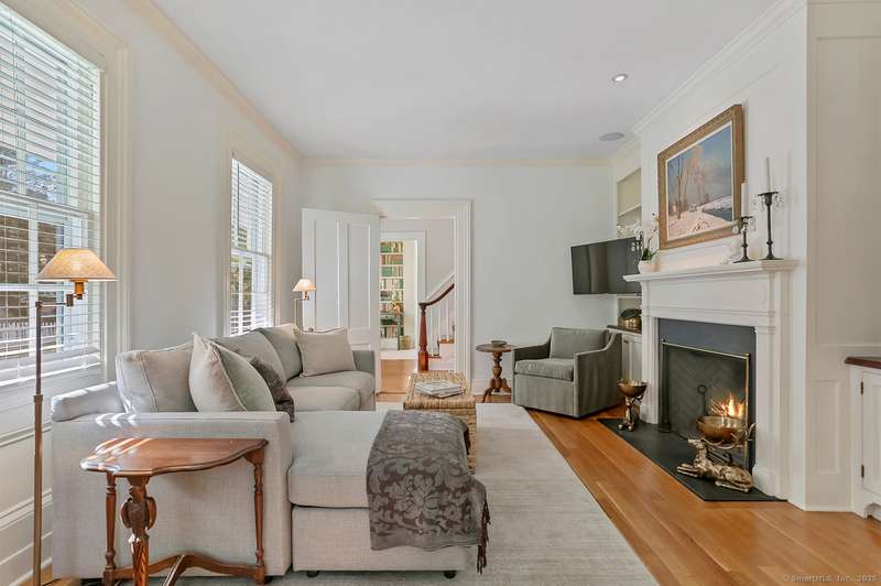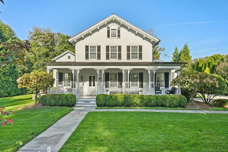 Step into history in the heart of Southport Village, where this location doesn't get any better! On Pequot Ave, and just a short stroll to the beach, village shops, dining, library, and train to New York City, this beautifully restored 1853 Colonial was once home to Miss Augusta Smith's Seaside Seminary. The residence has been reimagined for today with warmth, elegance, and every modern comfort. Behind its gracious front porch and classic lines, over 4,300 sf unfold with light-filled rooms, hardwood floors, and three wood-burning fireplaces that invite gathering. The home offers six bedrooms, including two primary suites--one on the first floor and one upstairs--each a private retreat with spa-like baths. A country kitchen with its own fireplace, banquette dining, and French doors to the terrace becomes the heart of the home, perfect for everyday living and entertaining. Outdoors, stone walls and sweeping lawns frame a terrace where privacy abounds, and that looks over the guest c