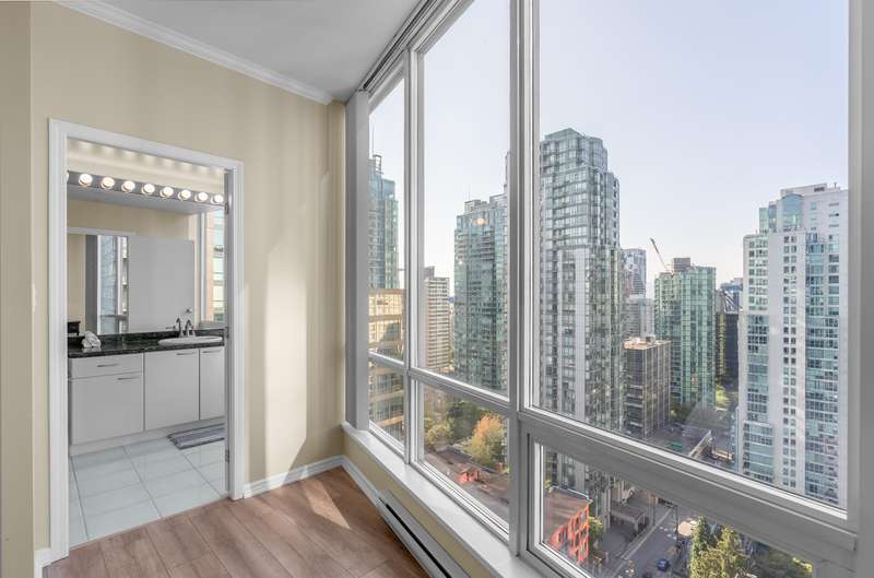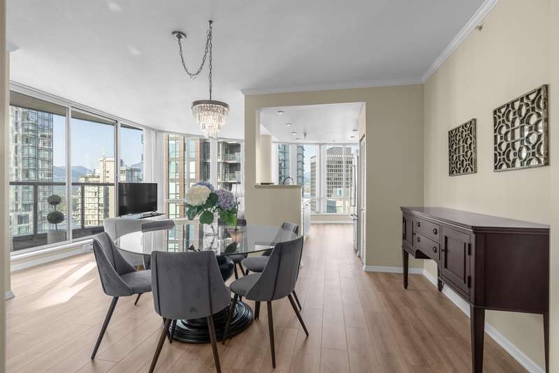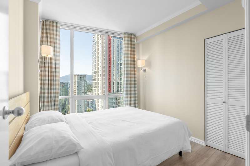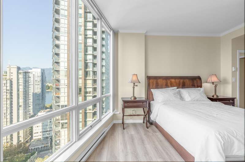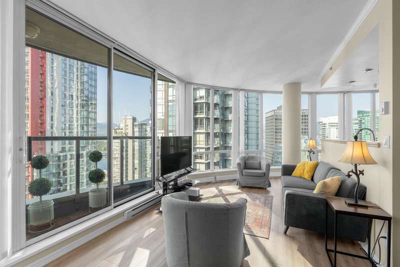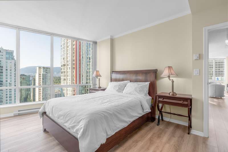 Welcome to this tastefully renovated, air-conditioned 2-bedroom, 2-bathroom corner unit at Orca Place, located in the heart of prestigious Coal Harbour. With only four suites per floor on the upper levels, this 1,068 sq. ft. home offers a functional layout with recent updates. Enjoy floor-to-ceiling windows that flood the space with natural light and showcase stunning views from every room. The large open kitchen features stainless steel appliances, granite countertops, and abundant cabinetry. The spacious ensuite bathroom boasts stone counters. Orca Place is a quality-built, well-managed building with a proactive strata. Just steps from the seawall, Stanley Park, and top amenities. Truly move-in ready! Open house: Oct 19 Sun 2:00-4:00