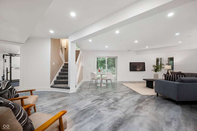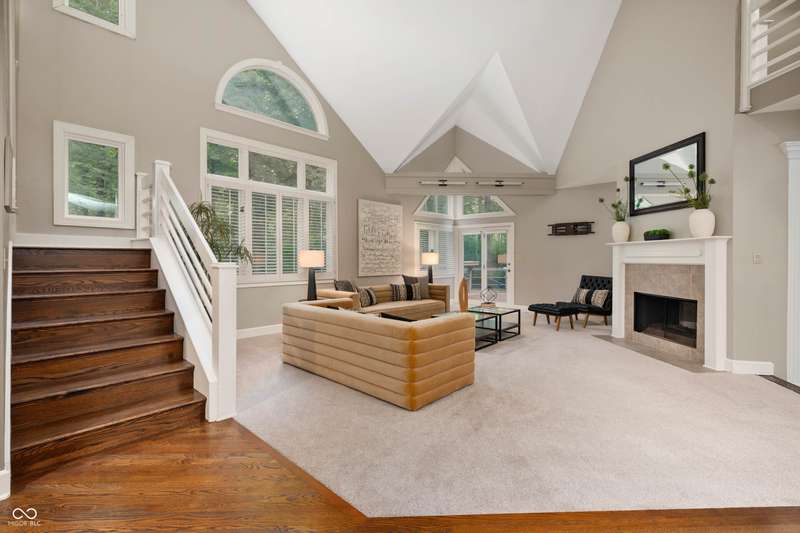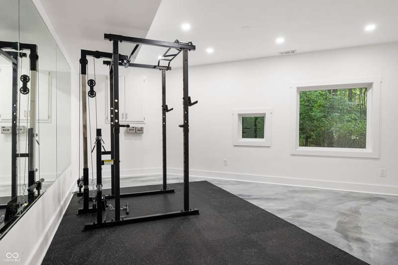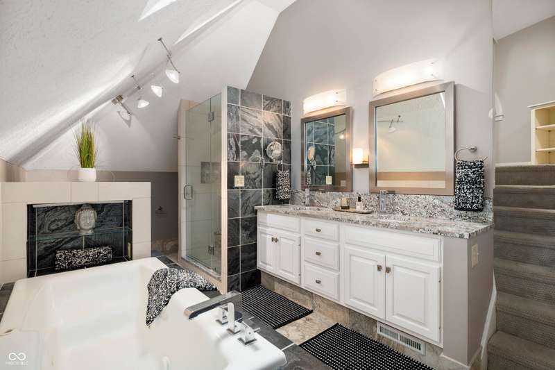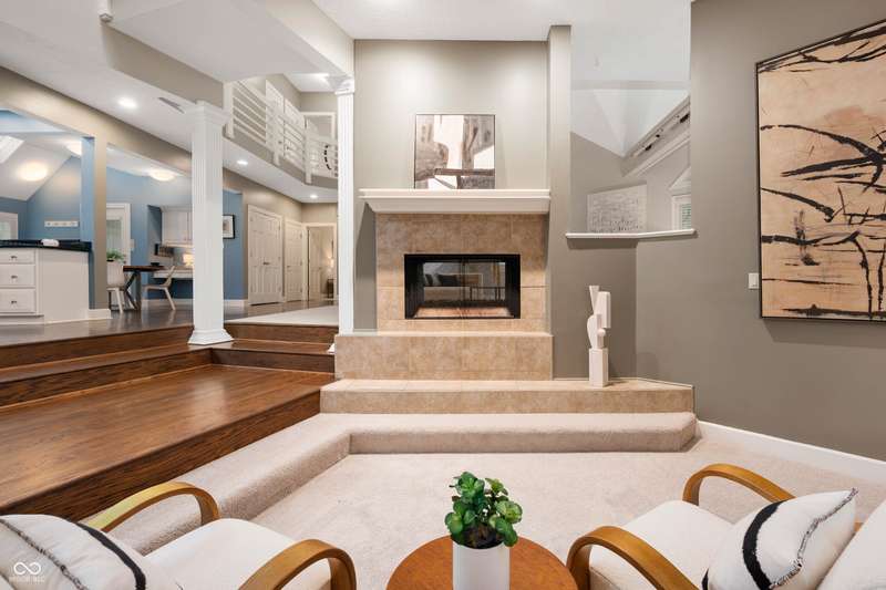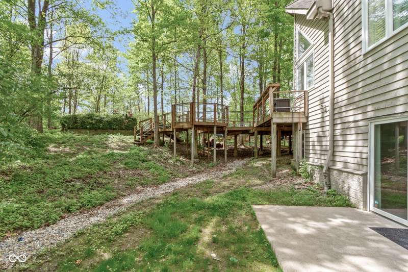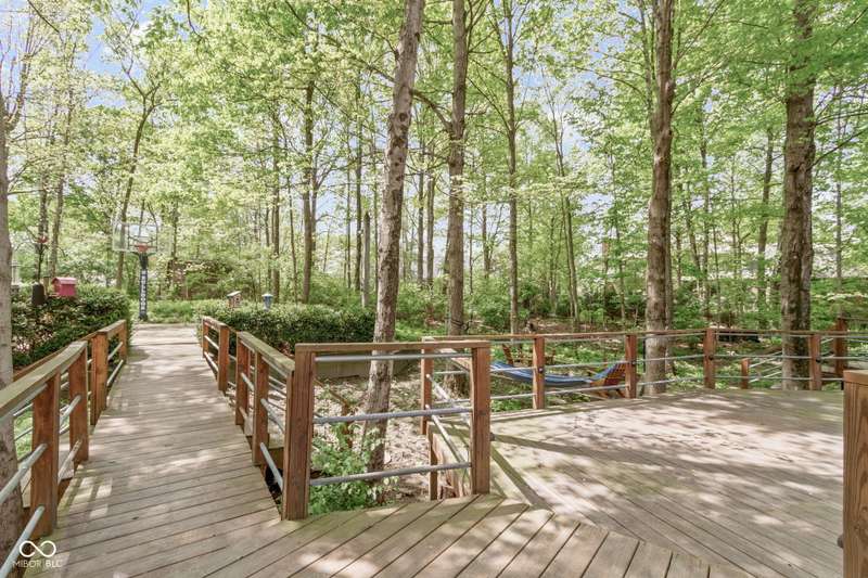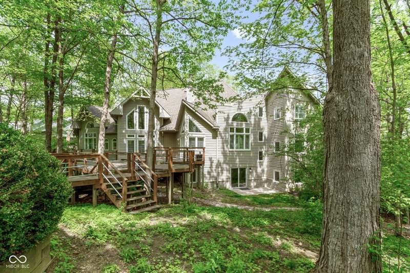 NEW PICS and NEW PRICE! Tired of the cookie cutter, builder beige look? Come check out this unique contemporary home! Nestled in the prestigious Geist neighborhood of Feather Cove I, this architect-designed residence offers a serene, wooded oasis on just over half an acre with it's own half court basketball court and cozy firepit. A quick stroll from Geist Reservoir, this home boasts glass floor to ceiling front entryway and expansive two-story living and dining rooms with magnificent windows creating a bright and airy atmosphere. The sunken formal dining room, two-sided gas fireplace and open floor plan further connect the kitchen and hearth room making this home perfect for entertaining. The primary suite is located on the main floor and includes an upper spa-like private bath, two walk-in closets and is connected to a flex room, perfect as a den or nursery. The gourmet kitchen is equipped with granite countertops, stainless steel appliances, white cabinetry plus a built in banquette with enough space for casual everyday dining. An upstairs loft area is perfect for meditation or as a kids' playroom and the walk out basement with exercise room offers additional hang out space. Huge pluses are the large 3 car garage, dual zone heating/cooling, whole home water filtration system, whole home humidification system plus the reliability of a new whole home Generac generator. This exceptional property combines luxurious living with the tranquility of nature, making it a rare find in the Geist Reservoir area. Nearby shopping, dining, walking path and school options, such as the "A" rated Amy Beverland Elementary, St Simon, Horizon and Holy Cross schools, make this home a winner!