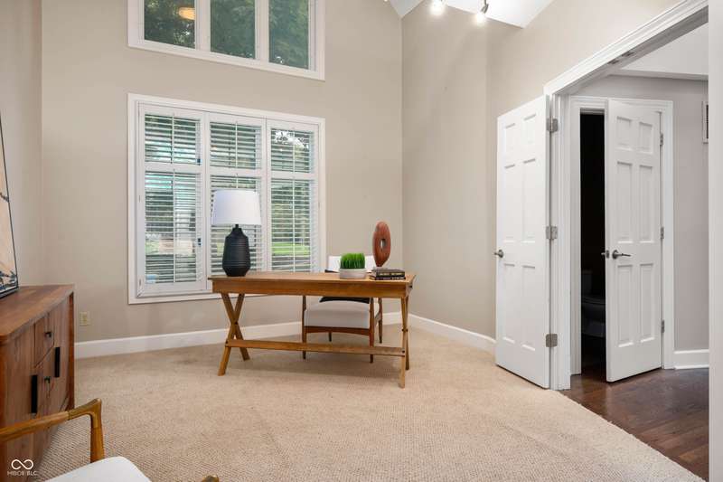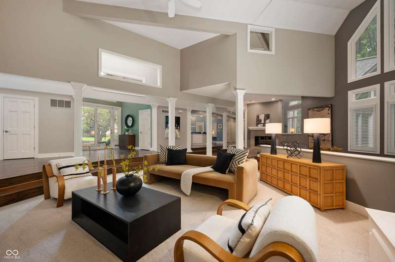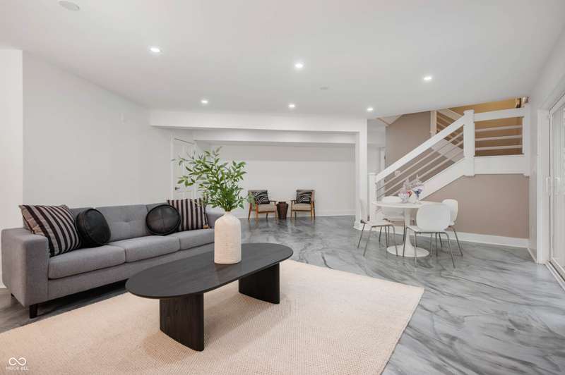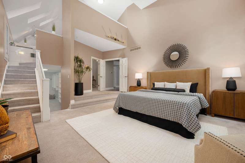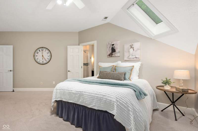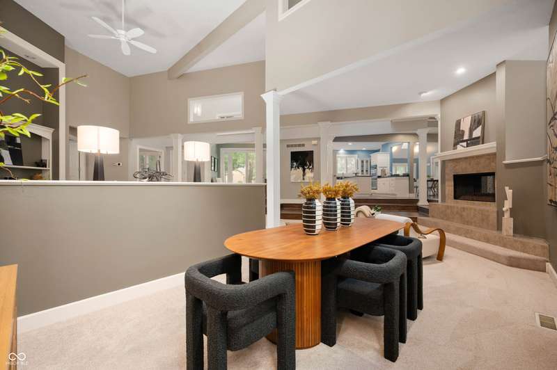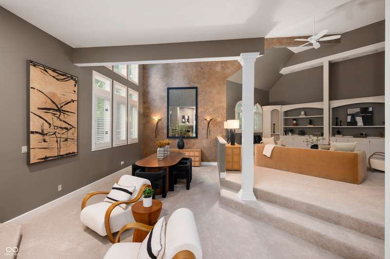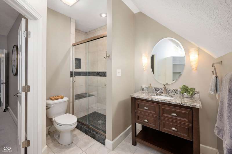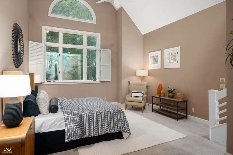 NEW PICS and NEW PRICE! Tired of the cookie cutter, builder beige look? Come check out this unique contemporary home! Nestled in the prestigious Geist neighborhood of Feather Cove I, this architect-designed residence offers a serene, wooded oasis on just over half an acre with it's own half court basketball court and cozy firepit. A quick stroll from Geist Reservoir, this home boasts glass floor to ceiling front entryway and expansive two-story living and dining rooms with magnificent windows creating a bright and airy atmosphere. The sunken formal dining room, two-sided gas fireplace and open floor plan further connect the kitchen and hearth room making this home perfect for entertaining. The primary suite is located on the main floor and includes an upper spa-like private bath, two walk-in closets and is connected to a flex room, perfect as a den or nursery. The gourmet kitchen is equipped with granite countertops, stainless steel appliances, white cabinetry plus a built in banquette with enough space for casual everyday dining. An upstairs loft area is perfect for meditation or as a kids' playroom and the walk out basement with exercise room offers additional hang out space. Huge pluses are the large 3 car garage, dual zone heating/cooling, whole home water filtration system, whole home humidification system plus the reliability of a new whole home Generac generator. This exceptional property combines luxurious living with the tranquility of nature, making it a rare find in the Geist Reservoir area. Nearby shopping, dining, walking path and school options, such as the "A" rated Amy Beverland Elementary, St Simon, Horizon and Holy Cross schools, make this home a winner!