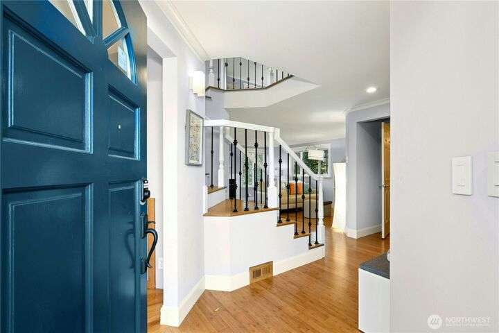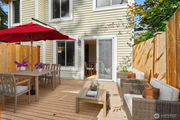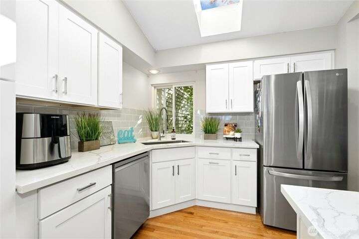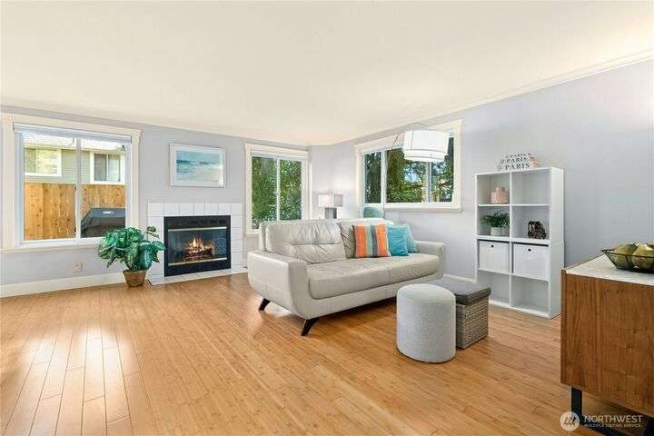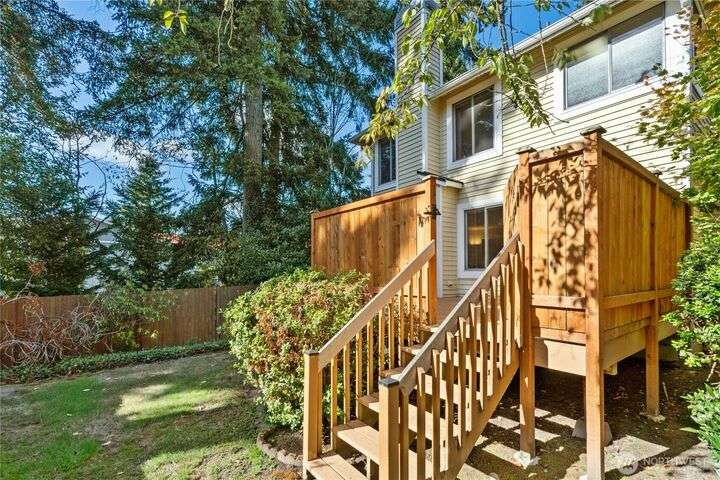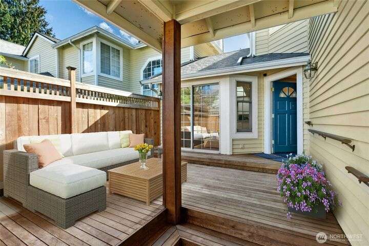 Smartly situated near Crossroads, Microsoft & the heart of the Tech corridor, this exceptional Fox Borough end-unit offers all the comforts of home with the ease of townhouse living. Step inside to stunning hardwoods, including eco-friendly bamboo flooring and a contemporary, tastefully updated kitchen featuring SS appliances/quartz surfaces. Spa-inspired bathrooms boast stylish tile work, while soaring ceilings & skylights flood the home with nurturing, natural light. Enjoy cozy evenings by the gas fireplace or the comfort of Central A/C. Two spacious walk-in closets, two private decks, plus attached two car garage with storage, complete this thoughtful layout. Easy access to parks, shopping, freeways, light rail & Downtown. Bellevue SD.