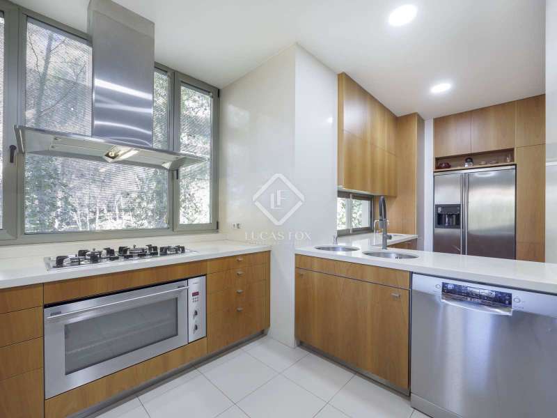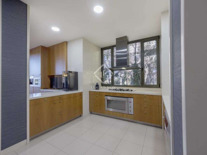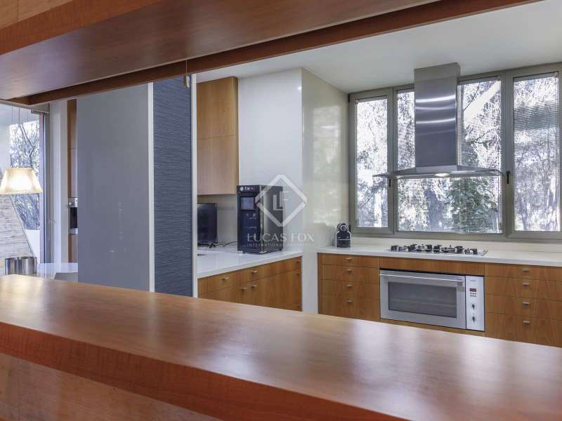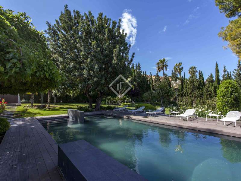 Lucas Fox is pleased to present this majestic villa on a plot of 3500m2 with a perfectly maintained garden and elegant design; the leafy trees giving the property unequalled beauty. Make the most of the summer evenings in the outdoor dining area and keep cool in the lovely pool. The symmetry of the villa gives it a modern style, surrounded by a covered terrace offering stunning views. There is central heating and air conditioning in each room. The large living area with a chimney is ideal during the winter months and a large space in which to relax. Continuing through the property we come to a kitchen designed to complement the design of the dining room. The electrical appliances are from top German brands contributing to its distinctive air, an elegant breakfast bar allows you to enjoy informal dining. On the upper floor of the villa there are 4 double bedrooms and 2 designer bathrooms permitting privacy for the whole family. There is parquet flooring throughout the property except for in the bathrooms which boast marble flooring. The villa also has a laundry room.
