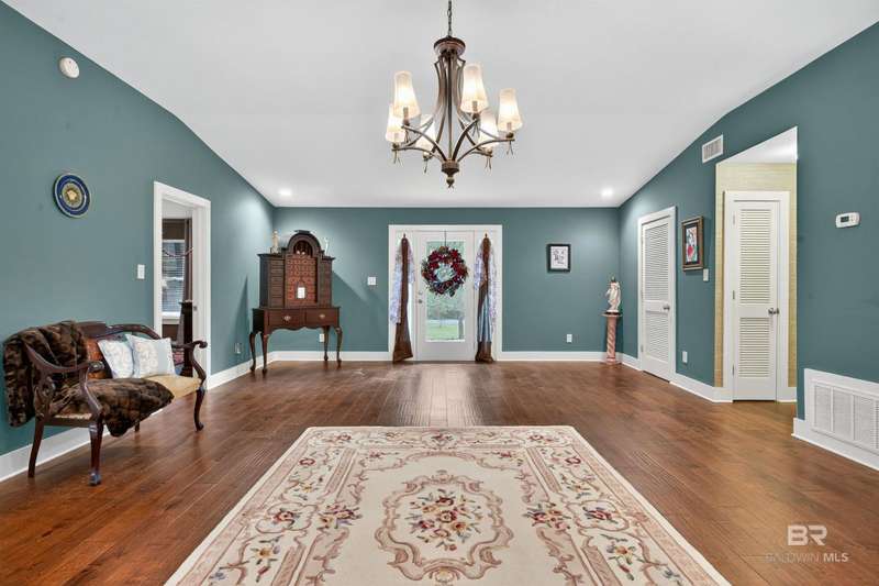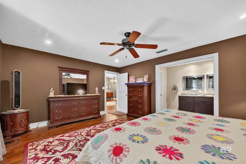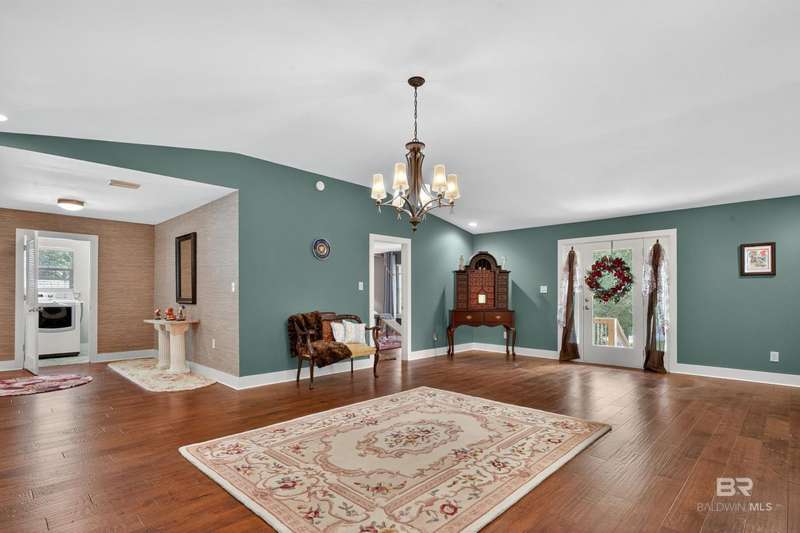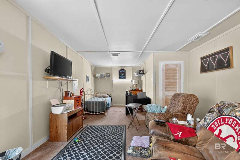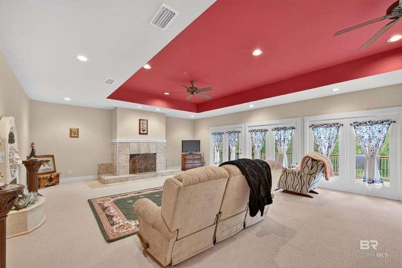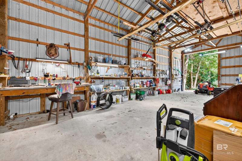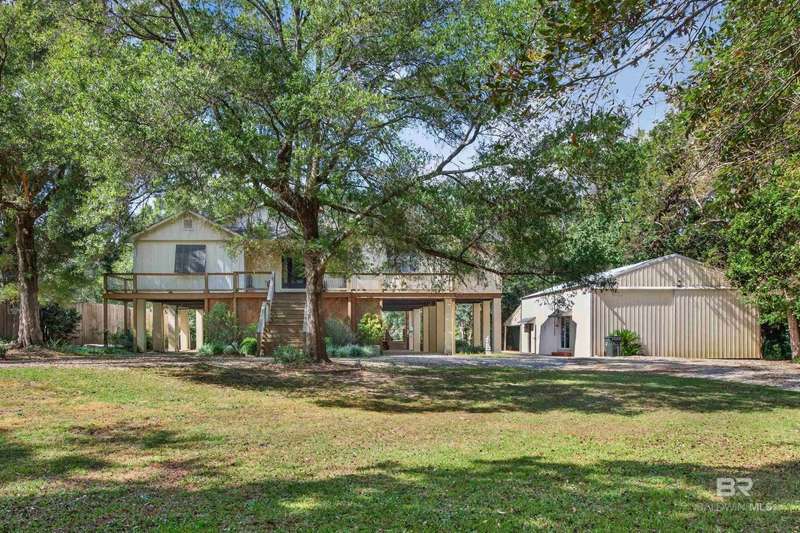 Welcome to this stunning waterfront retreat in Summerdale that has been completely reimagined from the ground up. A comprehensive renovation raised the home on steel-reinforced concrete piers, ensuring both strength and longevity. Every major system was replaced in 2014, from new foam-insulated floor joists to all-new plumbing, electrical, subflooring, flooring, sheetrock, insulated doors and windows, exterior cladding, and a new roof. The result is a home that offers the charm of riverfront living with the peace of mind that comes from modern construction. This elevated residence features approximately 3,350 square feet of living space, including four bedrooms and three baths. Inside, you'll find trey ceilings, recessed lighting, warm wood flooring, and walls of windows that bring in natural light and showcase serene views of the water. The open-concept design flows seamlessly through the main living areas, anchored by a cozy wood-burning fireplace. An 1,800-pound elevator and ramp provide convenient access from the six covered parking spaces below to the upper decks and living spaces. Outdoors, the wide covered porches offer the perfect spot for morning coffee or sunset gatherings overlooking the river. The property also includes a detached 450-square-foot in-law suite with its own bath (the fourth bedroom and third bathroom is part of this studio suite). This abuts a large steel shop designed for enclosed RV or boat storage, complete with a workshop and overhead storage. With deep-water access directly from your backyard, you can fish, kayak, or boat with ease. Centrally located from downtown Foley, Fairhope, and a short drive to Alabama's sugar-sand beaches, this home offers a rare combination of peaceful riverfront living and easy access to coastal amenities - a true Baldwin County gem. Buyer to verify all information during due diligence.