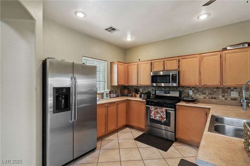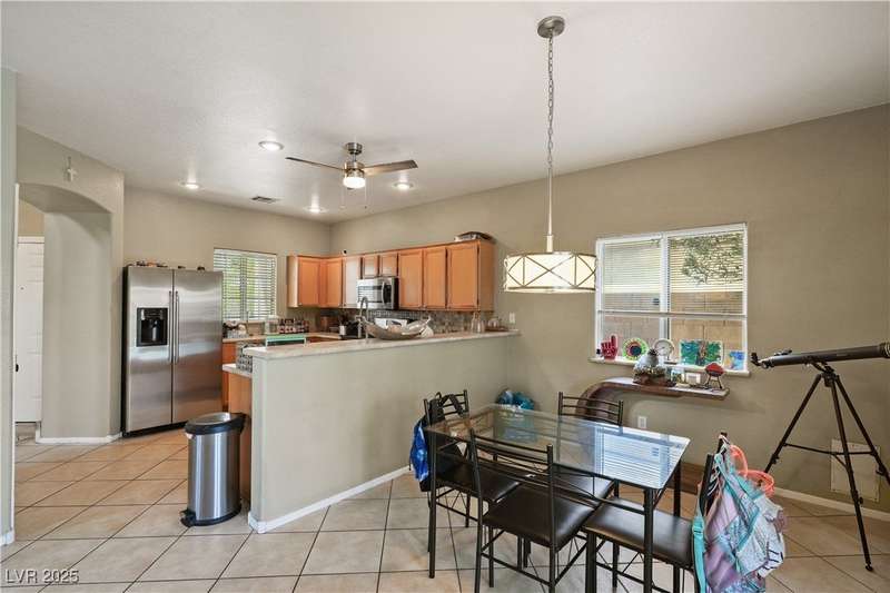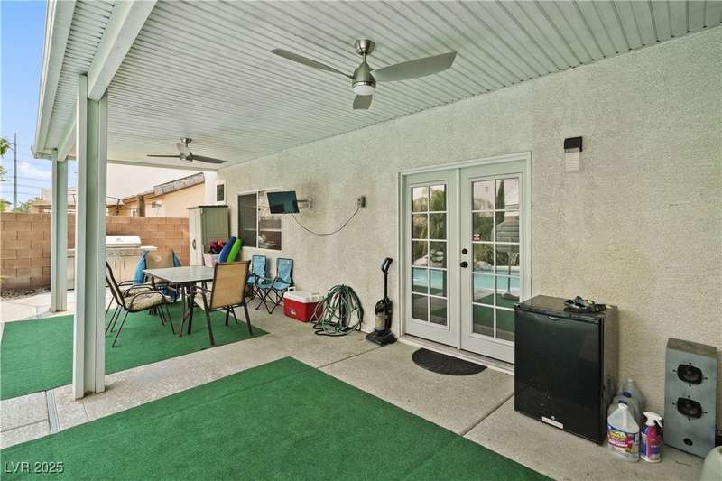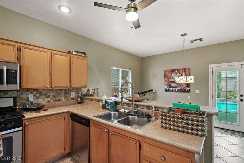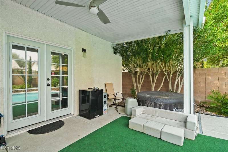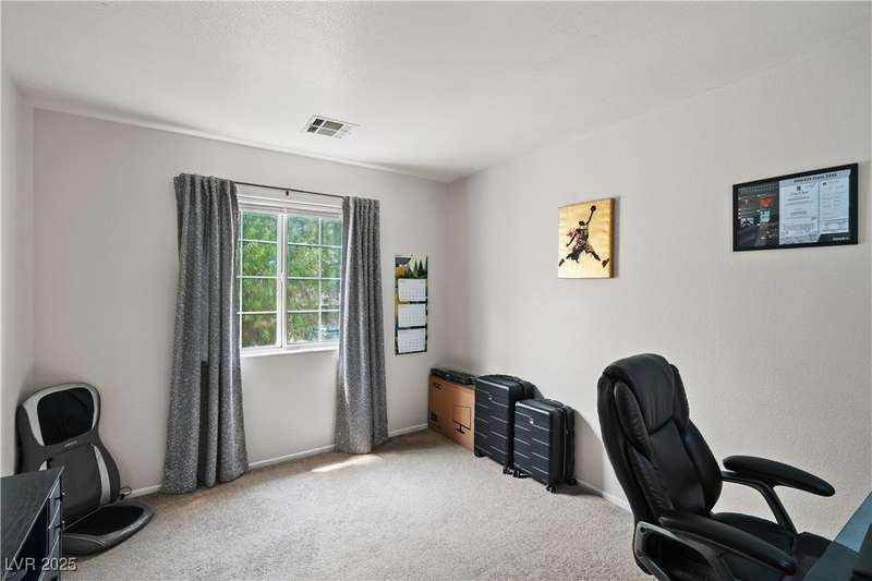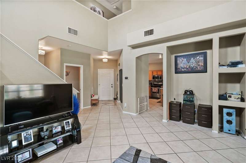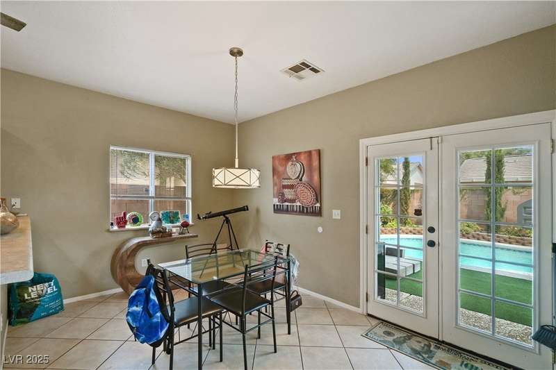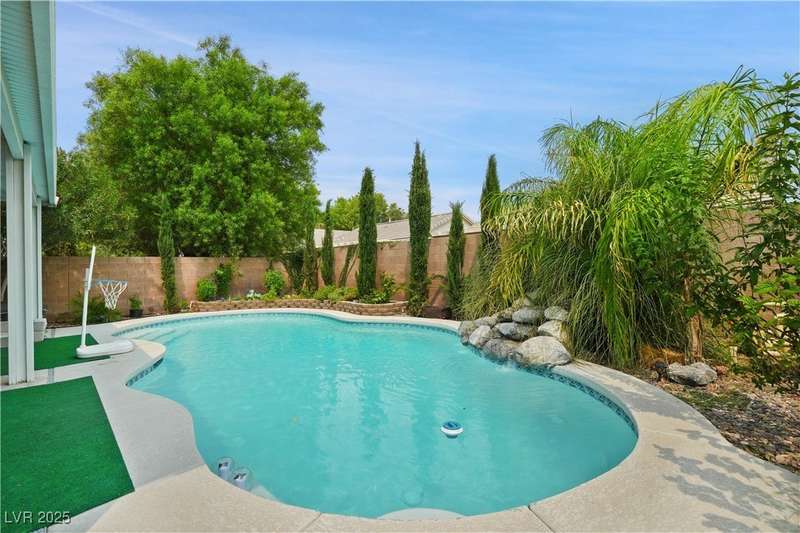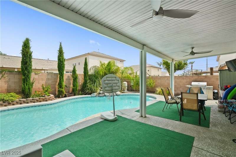 Welcome to this charming 3-bedroom home with a den, 2.5 baths, a 2-car garage, and a sparkling pool, nestled in the peaceful gated community of Lynbrook. From the moment you arrive, you'll be drawn in by the lush green lawn and mature shade trees. Step inside to discover dramatic vaulted ceilings and an open, airy living space that is perfect for relaxing and entertaining. The kitchen is both functional and stylish, featuring stainless steel appliances, ample counter space, a pantry, and a spacious dining area. Upstairs the primary bedroom includes a versatile flex space that can easily be transformed into a home office, gym, or whatever suits your lifestyle. Outdoors you will enjoy year-round living with an extended covered patio, ideal for entertaining, featuring a large pool surrounded by raised flower beds with lush landscaping. Conveniently located near schools, shopping, dining, and major freeways, this home offers both comfort and convenience in a delightful community.