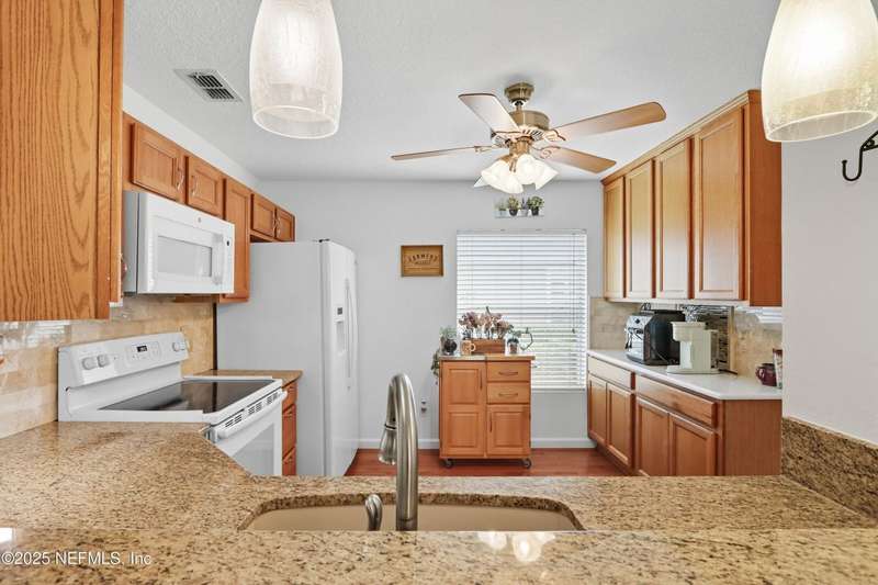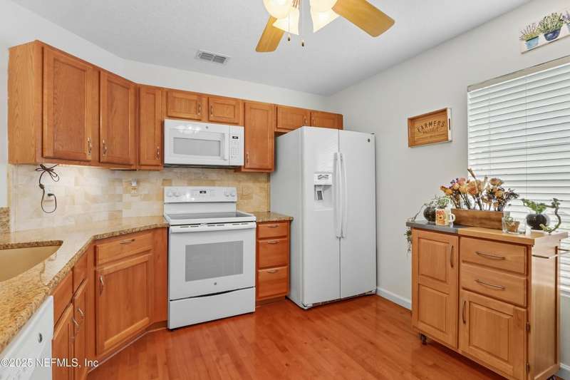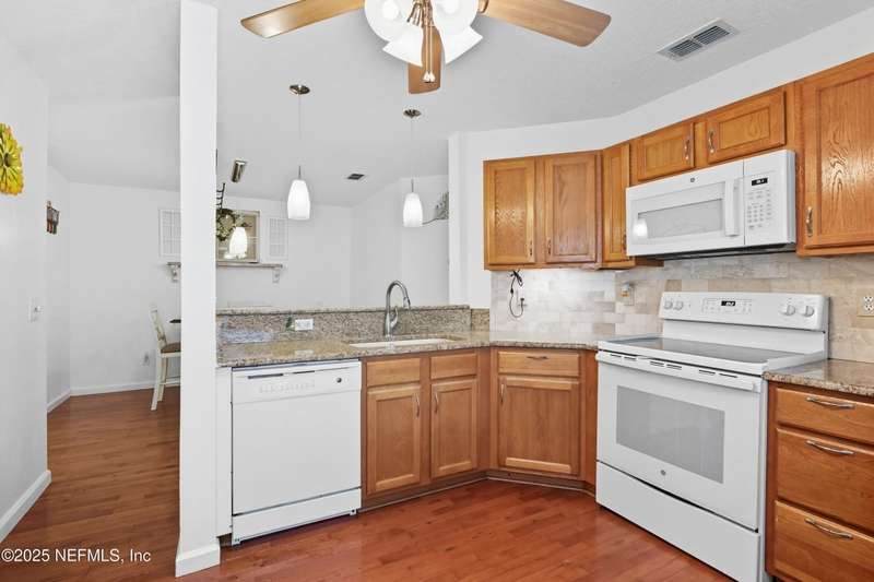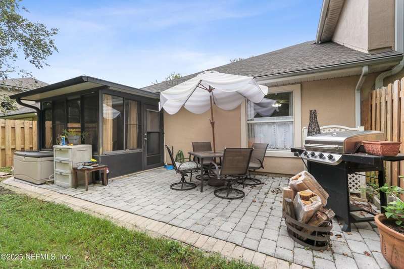 Gorgeous updated one story 3/2 townhouse with fenced backyard & located in a community with a wide variety of amenities. Desirable end unit - offering the privacy of a fenced backyard filled with lush landscape. The glassed enclosure is perfect for relaxing with your morning coffee. Pretty wood floors in the living/dining rooms, owners suite & tile floors in baths. Super updated kitchen, featuring granite counters, plenty of cabinets & breakfast bar. Two additional bedrooms share an updated guest bath. Low maintenance unit with yard work included as part of your HOA fee. Enjoy the super amenities only Fleming Island Plantation can offer to include: pools, tennis, basketball, pickleball, lighted sidewalks, challenging golf course & much more. Community serviced by highly rated schools & a short drive to shopping, restaurants, movie theater, new hospital & a nice selection of medical specialists. Main roads are available to NAS JAX, downtown JAX, international airport & St Augustine.