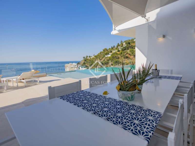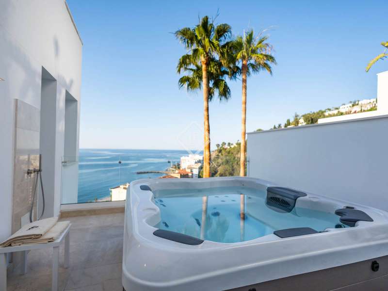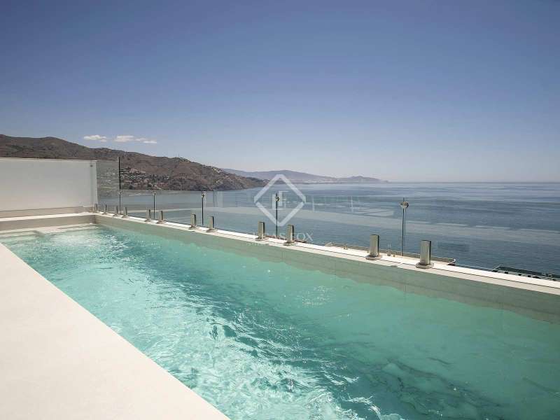 Lucas Fox proudly presents Le Grand Large, a magnificent new development of 15 luxury villas in a dream location on the tropical coast of Almuñécar. With 180º panoramic views over the sea and located just 100 metres from the beach, these homes provide coastal luxury at its finest. Situated just 45 minutes from Malaga airport, Granada, the majestic Alhambra and Sierra Nevada, the location is ideal for exploring and enjoying all that the region has to offer. This particular property measures 436 m² and has 6 bedrooms and 6 bathrooms in total, with top quality materials and fittings used throughout. The property has a special layout with curved areas and a fabulous spacious terrace on the main floor with an inviting swimming pool. The villa is equipped with exceptional details, such as a jacuzzi and advanced home automation system, which allow you to enjoy a modern and technologically sophisticated lifestyle. Bathrooms feature fittings by Villeroy&Boch and the Italian design firm Zuchetti, while the kitchen offers wooden furniture in laminate finish, with German Küpperbusch appliances such as fridge, oven, microwave, hob, extractor hood, dishwasher, sink, pull-out tap and wine cooler and worktops with LaminaM antibacterial technological porcelain. The home has been designed to be energy efficient and eco-friendly, with the installation of 1200 square metres of solar panels and sustainable architecture. There is no doubt that the glistening Mediterranean Sea is the focal point in this development, and the villas feature huge terraces with private infinity pools that blend into the sea on the horizon. Just a 3-minute stroll or shuttle ride from the villas, we find the private beach club with sun loungers and umbrellas, as well as a rental service for all manner of water equipment (jet skis, paddle boards, pedal boats, etc). All owners have the privilege of enjoying 12 days a year aboard an AVENTURA 37 catamaran, accompanied by an experienced skipper. A unique opportunity to explore the stunning tropical coastline with family and friends, creating unforgettable memories in an exceptional environment. Furthermore, the week-round maintenance service for everything from air conditioning and gas systems to garden, pool and electrical appliances, will give you complete peace of mind. Should you wish to enjoy impressive returns on your investment, it is possible to rent your property when you are not using it and leave it in the hands of the excellent property management service available. There are different types of contracts and arrangements available for this service, adapting to each homeowner's needs and preferences. For further information, please contact us.