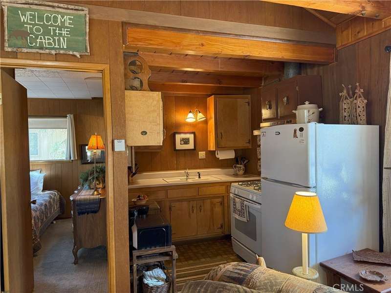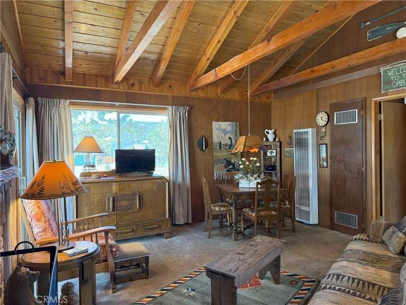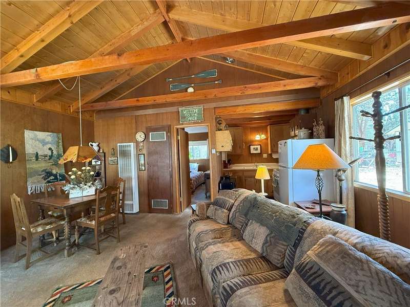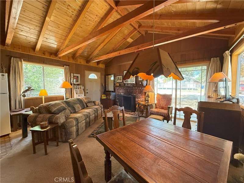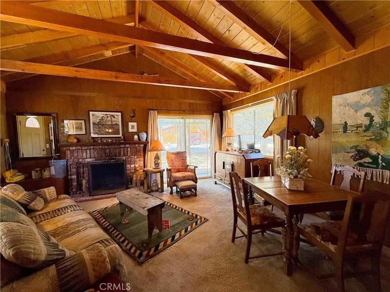 Escape to this storybook cabin tucked away in the scenic beauty of Big Bear City. This 1-bedroom, 1-bathroom furnished retreat offers 504 square feet of charm and comfort, perfect as a weekend getaway or peaceful year-round hideaway. Inside, the spacious family room steals the show with its exposed wood beams, vaulted ceilings, and a welcoming fireplace that invites you to cozy up on chilly mountain evenings. Step outside to a generous 6,750 square foot level lot—offering endless potential. Whether you're dreaming of adding a garage, expanding the living space, or creating the ultimate outdoor hangout, the possibilities are yours. Enjoy recent upgrades including a brand-new roof, fresh exterior paint, and a new gravel driveway. Surrounded by the natural beauty of the mountains, this cabin offers the perfect place to enjoy all four seasons—whether it's snow in the winter or sunshine-filled summer adventures on the lake or hiking and off-roading on the surrounding mountain trails. Located in a peaceful Big Bear City neighborhood, just minutes from the lake, hiking, and ski resorts, this cabin is a rare find with plenty of room to make it your own.