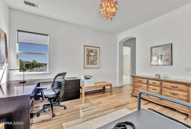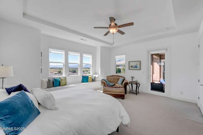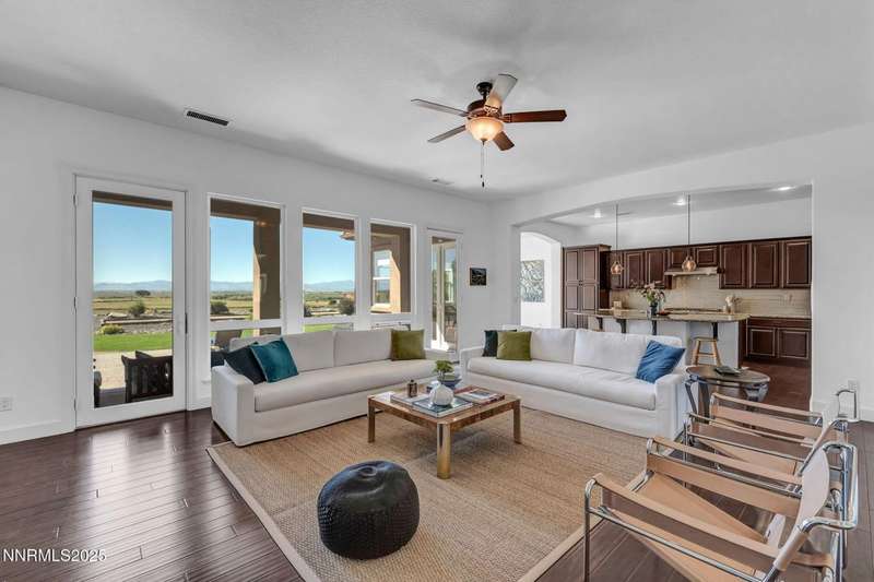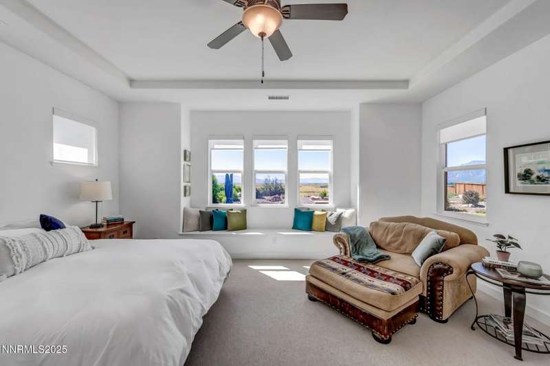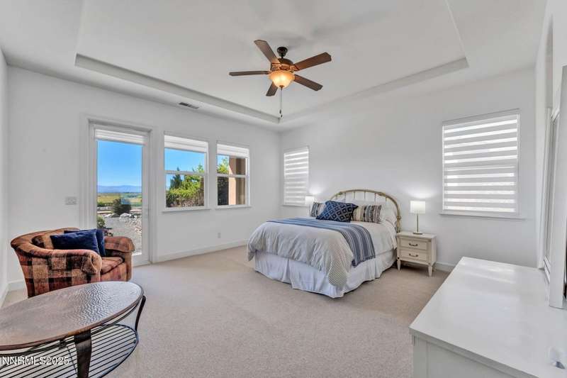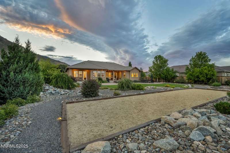 BREATHTAKING VIEWS! Welcome to elevated country living in the coveted community of Genoa Lakes Ranch. Perched on one of the premier view lots, this 3 BD, 3.5 BA + office single-level home offers 3,049 sq ft of thoughtfully curated luxury. Enjoy expansive valley views, privacy, and vibrant outdoor living on over half an acre. Built in 2014, the home features upgraded flooring, custom tile work, and a covered patio, ideal for entertaining. A true gardener's paradise, the landscaped yard includes raised beds, a fire pit, and a bocce ball court-perfect for enjoying all four seasons. Inside, a spacious great room connects seamlessly to the kitchen and dining, while the master suite, junior suite, and guest ensuite offer flexibility for family and visitors. The private office is ideal for remote work. A 3-car tandem garage with epoxy flooring and lots of storage completes this exceptional home. Just minutes to Lake Tahoe, skiing, golf, and shopping-plus Nevada's tax-friendly benefits-this is lifestyle living at its finest.