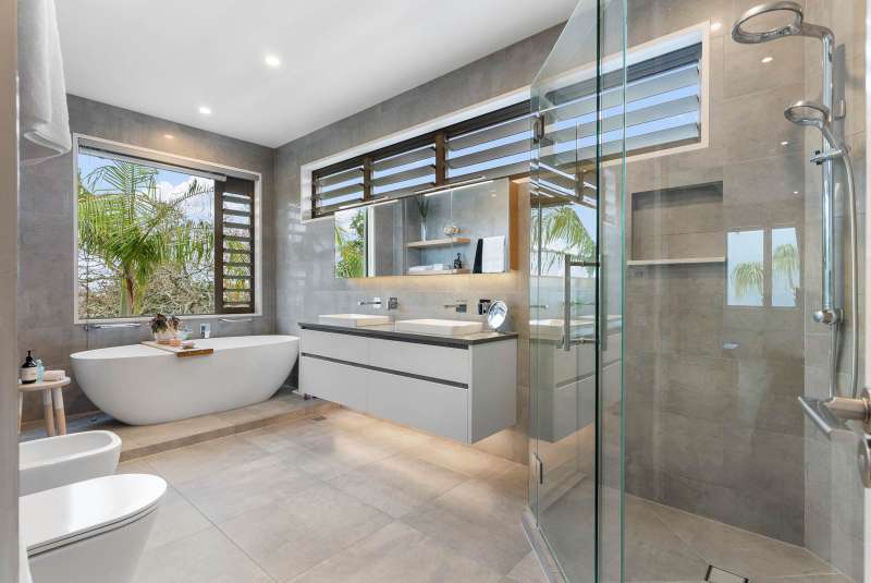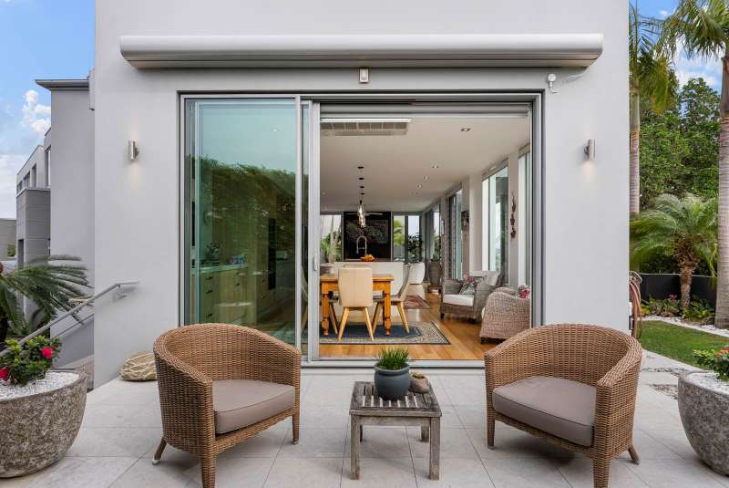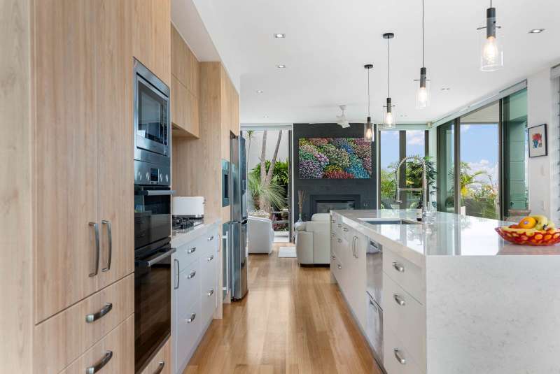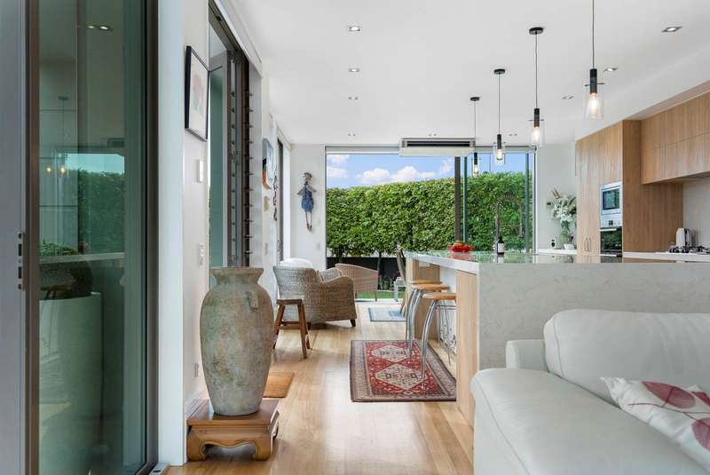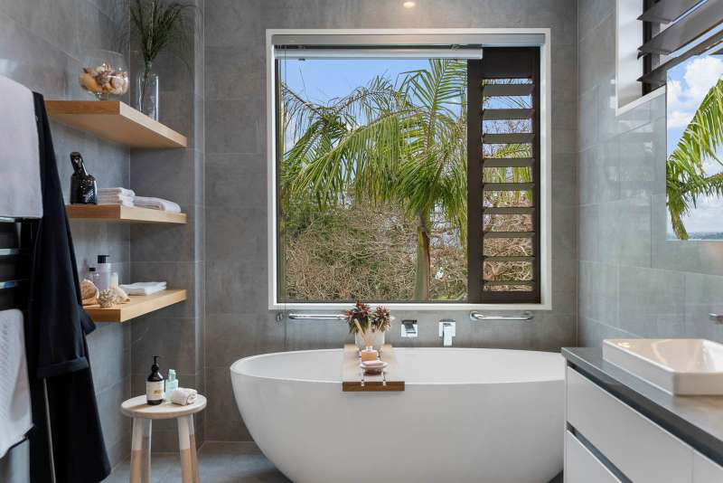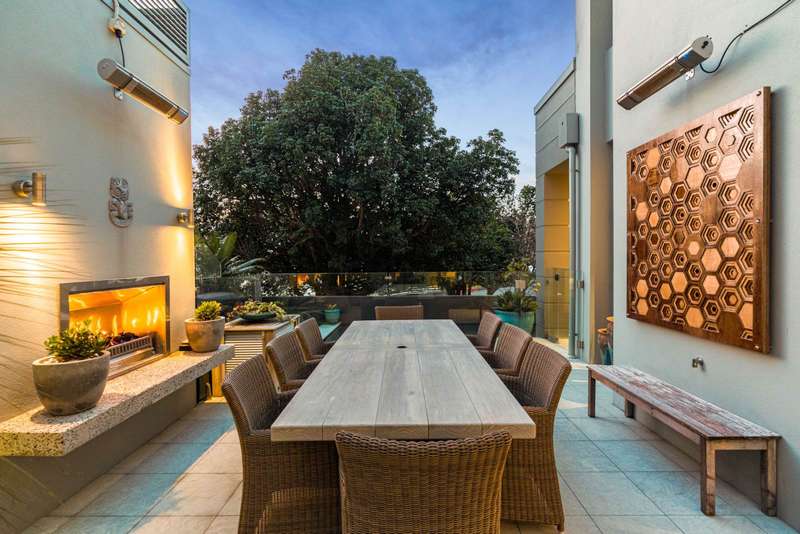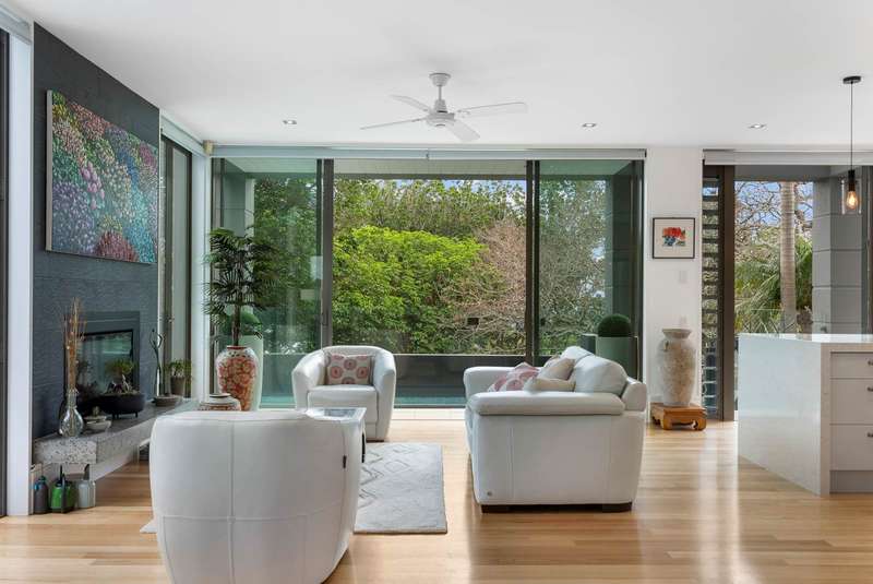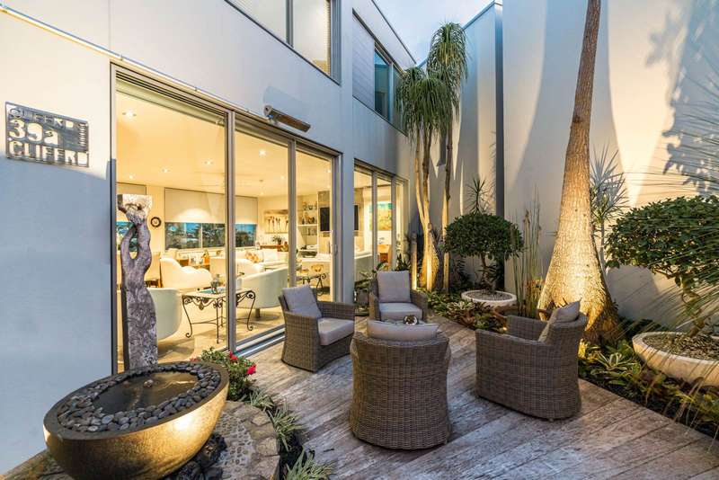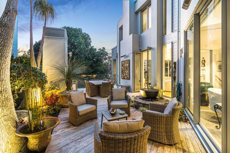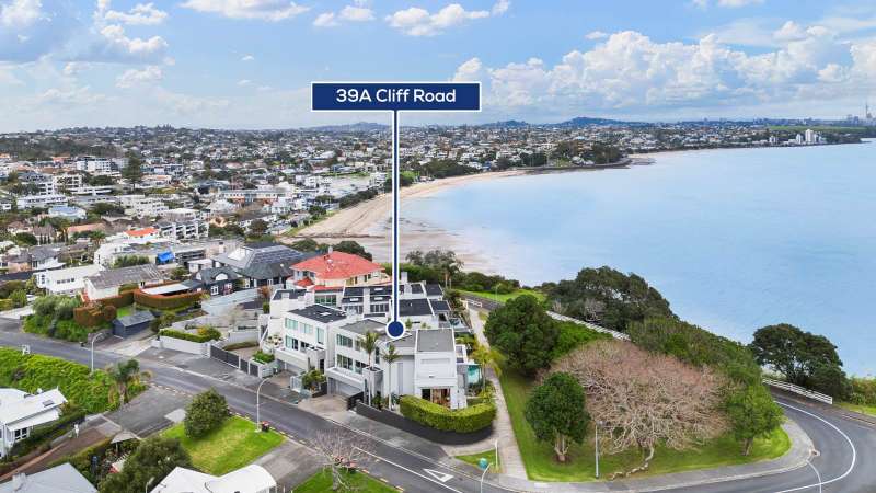This majestic Brent Hulena-designed residence occupies a prized dual-access corner site in one of Auckland's most tightly held and exclusive beachside neighbourhoods. Constructed from concrete and spanning approximately 423 sqm across three luxurious levels with elevator access, the home combines timeless architecture with exceptional functionality. Bordering a reserve and footpath, the property enjoys a rare sense of seclusion while capturing framed views of the village, harbour, beaches, and distant city skyline. Set on 436 sqm (approx.) of lush subtropical gardens, it features a private in-ground saltwater pool and multiple sun-drenched outdoor living areas, including a sheltered alfresco zone with an open fireplace. Inside, a generous central foyer leads to two distinct living areas separated by cavity sliders-one a carpeted formal lounge, the other a timber-floored family and dining zone. Both offer gas fireplaces and seamless flow to outdoor spaces. The north-facing aspect bathes the interior in natural light, enhancing the sleek designer kitchen with Bosch dual ovens, gas hob, stone waterfall island, and warm timber cabinetry. Upstairs, four generous double bedrooms and three beautifully tiled bathrooms include a luxurious master suite with private balcony, walk-through wardrobe, and an opulent ensuite featuring a freestanding Victoria + Albert bathtub and dual vanities. Additional features include a powder room, full laundry, wine cellar, and internal access to triple garaging. Securely walled and gated, with select rooms air-conditioned and the gardens professionally landscaped, this outstanding home offers privacy, security, and effortless family living in a world-class coastal location-just a short stroll from village shops, cafes, restaurants, parks, and in zone for St Heliers School.
