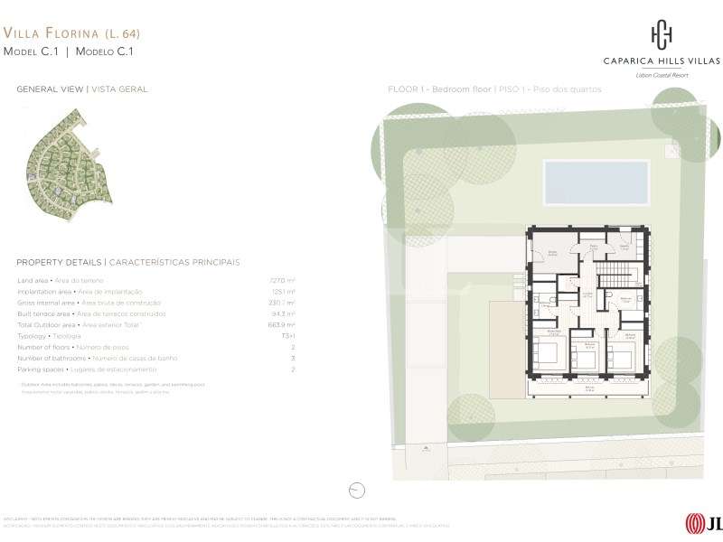 Moradia T4 nova com 231 m2 de área bruta de construção, jardim e piscina privativos, no Caparica Hills Villas, na Costa da Caparica. As unidades do Caparica Hills Villas oferecem garagem privativa, elevador, amplas zonas de lazer e espaços de arrumação. A construção incorpora elementos sustentáveis como painéis de madeira, coberturas ajardinadas e vegetação local, garantindo eficiência energética e conforto durante todo o ano. O empreendimento integra-se num resort completo que inclui o Hotel IHG Crowne Plaza Caparica Lisbon, instalações de bem-estar com spa, fitness club e estúdio de yoga, um campo de golfe de 9 buracos e uma zona comercial com 20 lojas boutique. Nos planos futuros estão previstos um centro desportivo e uma escola. A localização do Caparica Hills Villas combina tranquilidade e conveniência: a 5 minutos do mar, a 15 km do centro de Lisboa (15 minutos de carro) e próximo do aeroporto principal. Para compras diárias, o supermercado encontra-se nas imediações. O Caparica Hills Villas representa uma proposta de valor equilibrada para quem procura um investimento imobiliário ou residência numa das zonas de maior potencial de valorização da Grande Lisboa, conjugando proximidade à capital com a qualidade de vida junto ao mar. Categoria Energética: A #ref:90866
