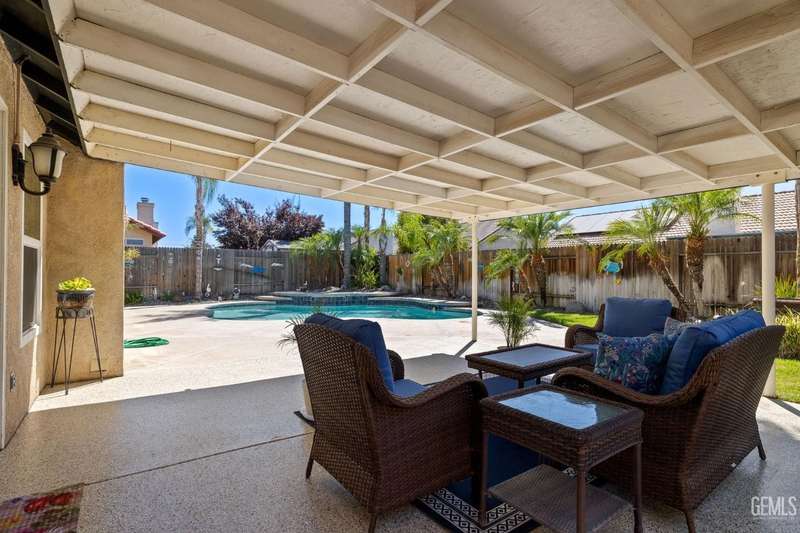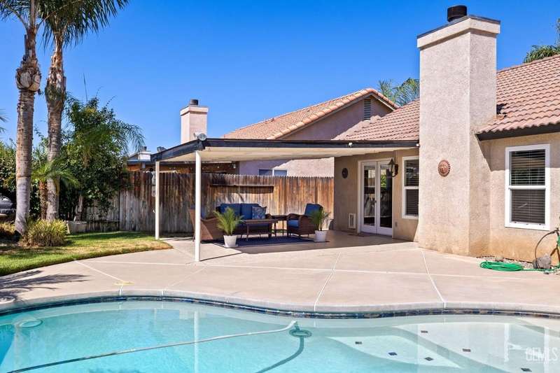 Your Dream Home Awaits! This cute and clean, well-maintained 3-bed,2-bath tropical oasis in desirable NW Bakersfield is sure to impress.Vaulted ceilings and a cozy fireplace add to the ever present ambiance of your well lit home. Many upgraded features include granite counter tops, stainless steel appliances, new stylish front and interior doors, and carpeting. Wonderful covered patio with designer surface and a fresh backyard landscaping. The waterfall pool with swaying palms gives this large private yard family fun to relax and play year round. With a highly rated elementary school, and Polo Park within in walking distance, your heart will feel Home''. Book your appointment today!