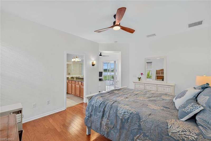 If "serene" had an address, this would be it. This Estero home captures the beauty of sunset lake views, spa nights, and spacious suites for family and guests. Experience effortless comfort and versatility in this beautifully updated three-bedroom, two bath pool home -- expertly reimagined with a dual en suite layout ideal for multigenerational living or extended-stay guests. Located in a vibrant community featuring six pickleball courts, it's the perfect blend of relaxation, recreation, and resort-style living. Enjoy outdoor living at its finest on your screened lanai with a sparkling pool, where stunning sunset views make every evening feel like a private getaway. Recent updates include fresh interior paint, newly coated garage and lanai floors, and modern light fixtures and ceiling fans throughout. Major systems have also been upgraded for peace of mind: A/C replaced June 2023, water heater December 2023, and pool pump in 2025. Nestled within the highly sought-after Bella Terra community are beautifully intertwined serene lakes and natural preserves. Residents enjoy resort-style amenities, including a clubhouse offering many activities for adults and children, 24-hour fitness center, resort pool and spa, pickleball, tennis, bocce, sand volleyball, outdoor roller rink, playground, multi-use sports field, butterfly garden, and scenic walking trails. All of this with low HOA fees and the added assurance of being located in a non-flood (X) zone. Schedule your private showing today and experience the best of Bella Terra living! Bella Terra is located close to I-75, shopping, restaurants, and beaches.
