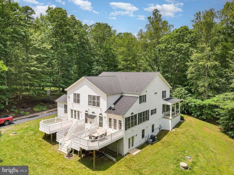 Discover unparalleled elegance in this magnificent 5,000 square foot luxury home featuring soaring ceilings, premium finishes, and thoughtful design throughout. The dramatic two-story foyer welcomes you with a striking split staircase that gracefully flows upstairs and seamlessly connects to the heart of the home. The gourmet kitchen is a chef's dream, showcasing granite countertops, abundant cabinetry, a large granite-topped island, and premium stainless steel appliances. The adjacent breakfast area offers serene views of the backyard and convenient access to the expansive deck and stamped concrete patio. The magnificent great room commands attention with its two-story stone fireplace and elegant coffered ceiling, creating an impressive space perfect for entertaining. Practical luxury continues with a well-appointed mudroom featuring built-ins, pantry, and coat closet, plus a garage equipped with an EV charging station. The primary suite is a true retreat, boasting a sitting area, custom built-ins, tray ceiling, and private balcony access. Enjoy morning coffee at the convenient wet bar before stepping into the spa-like ensuite with dual vanities, water closet, linen storage, separate soaking tub and shower, leading to an exceptionally spacious walk-in closet. Three additional upper-level bedrooms include two generous rooms sharing a Jack-and-Jill bath with separate vanity areas, plus a fourth bedroom with its own private ensuite. The hallway overlook provides stunning views of the great room below. The finished 1,500 square foot walkout basement adds incredible value with a flexible fifth bedroom, full bathroom, abundant storage, and direct access to the outdoor entertaining space. This versatile area is perfect for a home theater, game room, or entertainment hub. Outdoor living is equally impressive with a beautiful deck, stamped concrete patio, and cozy fire pit area - ideal for year-round enjoyment.