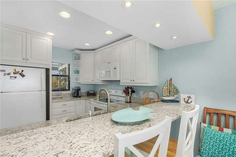 Spectacular unobstructed views of beautiful Charlotte Harbor from all living spaces! Enjoy Florida's resort coastal living at its finest in this beautiful, fully furnished condo in the sought-after B building of Bocilla Island Club in Bokeelia. The updated unit boasts 2 bedrooms, and 2.5 baths, fully remodeled with quartz or granite vanities and new glass shower doors, remodeled kitchen with granite counters, Kraftmaid cabinets, and recessed lights; new interior doors throughout, complete re-piping of water supply lines, vaulted screened porch with beadboard ceiling, and, in 2023, new paint inside and carpeting on the staircase and in the bedrooms. The guest bedroom includes a full-size bed along with twin bunk beds for additional guests. The meticulously maintained grounds include lush landscaping, walking paths with bay views, 2 pools, 2 tennis/pickleball courts, shuffleboard, and a private fishing pier on Charlotte Harbor. New roofs were installed in 2023. There is a boat ramp in the complex and, even though this unit does not come with a boat slip, some slips may be available nearby. There are 2 parking spaces, 1 of which can accommodate a boat, below the unit and storage for your boating & fishing needs. Conveniently located within walking distance to restaurants and Four Winds Marina, a full-service marina. Rentals are approved for 30 days, up to 12 times per year. Flood insurance is covered by the HOA.