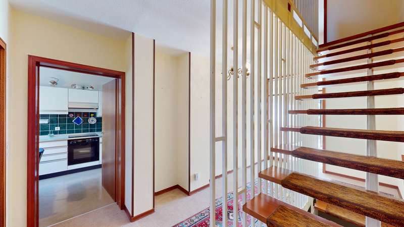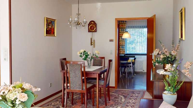 This cozy terraced house is located near the edge of a field in Nieder-Eschbach and offers a perfect home for a family on two levels. Completed in 1975, the house boasts a well thought-out floor plan and a generous amount of space. The heart of the house is the bright living and dining area on the first floor. From here, you can access the beautiful, south-facing sun terrace and the well-tended garden - a perfect place for relaxation and family time outdoors. A separate kitchen and a guest WC complete this level. The upper floor offers three bright rooms that can be used as bedrooms, children's rooms or home offices. A daylight bathroom with bathtub and shower also contributes to a pleasant living atmosphere. The basement offers ample storage space and potential uses, with plenty of room for hobby and DIY projects. Modernization measures such as the renewal of the roof, the floor coverings and the facade painting have been carried out in recent years, so that a beautiful home can be designed according to your own wishes with little modernization effort. The offer is rounded off by a lockable single garage, which is already included in the purchase price. This house offers a quiet residential area close to nature with nearby shopping facilities and good connections to the city life of Frankfurt. Ideal for families looking for a new home in a relaxed environment and for discerning couples who want to combine working and living.