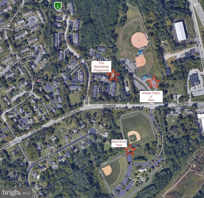 Welcome to The Woodlands! This beautifully maintained townhome offers 4 bedrooms, 2.5 bathrooms, and thoughtful upgrades throughout. From the moment you arrive, you'll notice the inviting curb appeal with new siding (2023). Step into a spacious living room featuring wall-to-wall built-in cabinetry and a charming bay window that fills the space with natural light. The kitchen is a true highlight, equipped with crisp white cabinetry, ample counter space, stainless steel appliances (including a new refrigerator), and a slider leading to the back deck. Overlooking serene wooded views, the deck is the perfect spot to enjoy fall foliage or host a summer BBQ. The kitchen opens seamlessly into the family room, creating an ideal layout for everyday living and entertaining. A large coat closet and half bath completes the main level. Upstairs, the primary suite is a retreat with a dreamy walk-in closet featuring custom organizers and an en-suite bath with a frameless glass shower with bench seating, and a tub for added relaxation. Bedroom two includes wall-to-wall built-in closet system, while bedroom three offers a spacious double-door closet. A hall bath with a stall shower and timeless neutral tile completes the second floor. Hardwood floors gleam throughout the first two levels, adding warmth and character. The third floor provides a versatile fourth bedroom or flex space with skylights and additional built-in storage for added convenience. This space is perfect for a guest room, home office, or play area. The finished basement offers even more living space with slider to the back patio, an unfinished storage area, and stackable laundry closet. Additional recent updates include Gutter Guards (2023), most of the interior paint refreshed (2023), a new deck railing (2024), and fresh deck paint (2024). Located in a prime spot near major routes and Exton Train Station for an easy commute and close proximity to shopping and dining at Exton Square, Main Street at Exton, Whiteland Town Center, and downtown West Chester. Plus, The Woodlands playground is on Redwood Ct, a trail at this playground that leads right to Joseph Catov Jr. Park ( built in 2021). From this park, there is a crosswalk that takes you right to Boot Road Park. Enjoy low-maintenance living and a move-in-ready home that's been lovingly cared for and thoughtfully upgraded. Home is where your story begins!