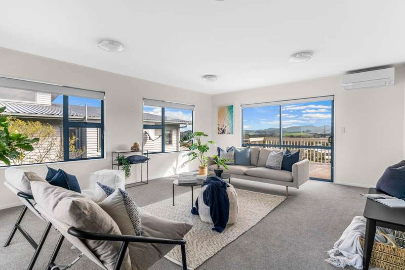 Positioned in one of Mangawhai Heads’ most sought-after locations with fantastic views, this elevated modern family home offers the perfect blend of comfort, style, and convenience—all within easy walking distance to the Estuary, vibrant local cafés, Golf club, and Maz. Step inside and enjoy light-filled open plan living, dining, and lounge areas that seamlessly flow out to expansive front and rear decks—ideal for entertaining or simply soaking up the panoramic 180-degree ocean views to the front, and sweeping vistas of the Brynderwyn Ranges at the rear. With three generously sized bedrooms, there's plenty of space for family or guests. The master suite is a true retreat, complete with a walk-in wardrobe, a private ensuite, and direct deck access. Each bedroom enjoys its own connection to the outdoors, bringing in natural light and sea breezes throughout the day. The potential of the home also adds the possibility of doing something with all the space under the house. Bring the builder to find out how easy it would be to add a room underneath. Alternatively, create a storage space for all those toys you need to make the most of Mangawhai. Additional features include an internal access garage for secure parking and storage, and a fully fenced rear section—perfect for children and pets. Whether you’re looking for a permanent home, weekend escape, or a savvy investment in a prime location, this stunning property ticks every box. Don’t miss your chance to experience coastal living at its best—before someone else does.
