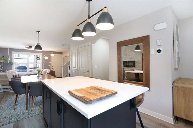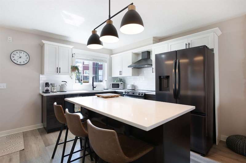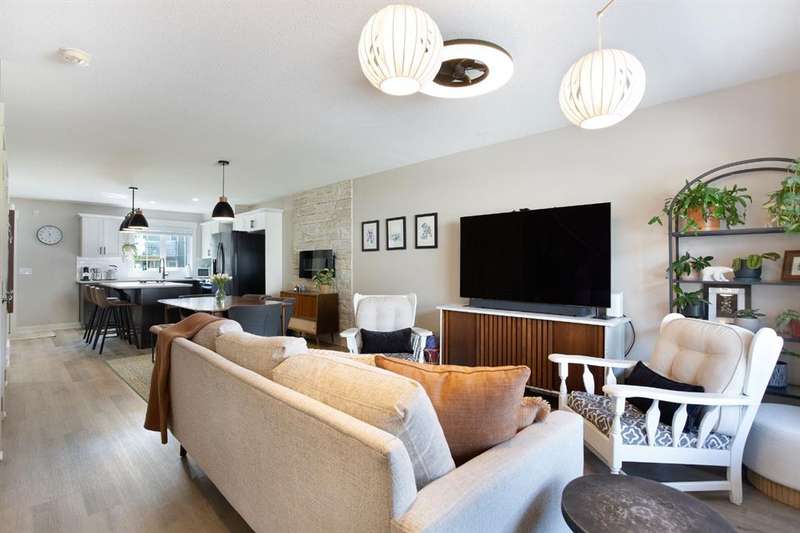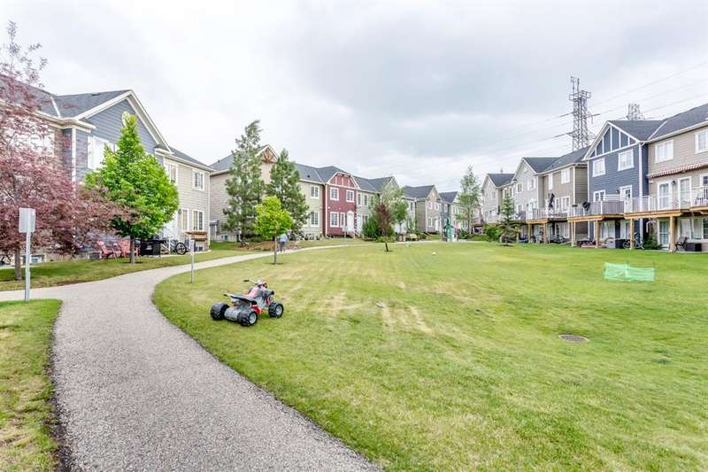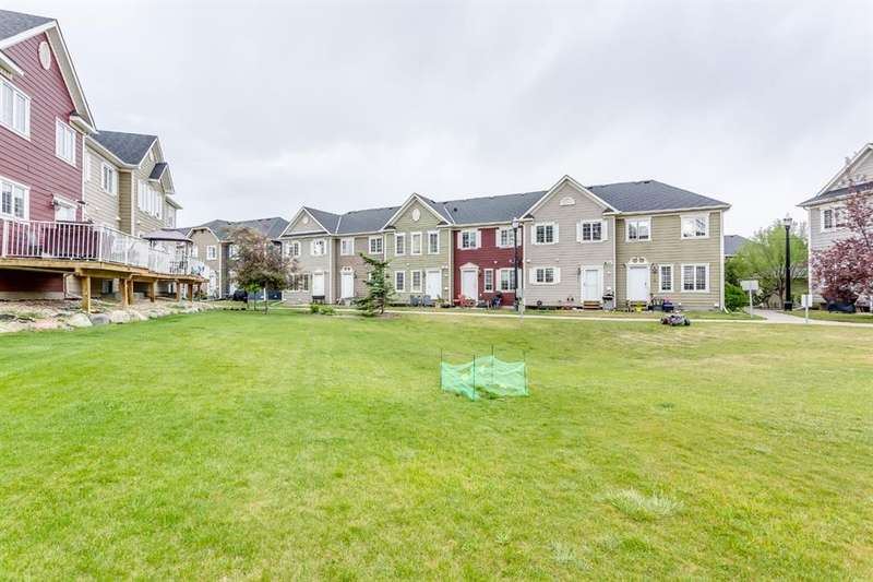 Welcome to this beautifully updated 2-storey townhome nestled in the tranquil and highly desirable community of Rainbow Falls. Perfectly situated in a quiet area, this home backs onto peaceful green space with a walking path—ideal for morning strolls or unwinding in the evening. Renovated just three years ago, the home features updated flooring, fully refreshed bathroom fixtures, and a modernized kitchen complete with stainless steel appliances and a brand-new fridge still under warranty. The main bathroom has been entirely redone, and the home showcases custom built-in closets crafted by California Closets, along with updated light fixtures throughout. Additional thoughtful touches include new storm doors installed in 2024 and new front closet doors. The main floor boasts an inviting open-concept layout with a spacious living room and central kitchen island, finished in warm, neutral tones that provide a welcoming, versatile backdrop. The lower level is drywalled and ready for your creative vision—whether you’re looking to add a cozy family room, home office, or extra bedroom. Located close to shopping, schools, parks, golf courses, Chestermere Lake, and only a short commute to downtown Calgary, this home offers the perfect combination of comfort, convenience, and community. Don’t miss your opportunity to call Rainbow Falls home.