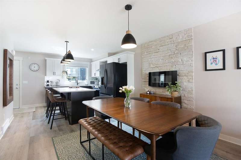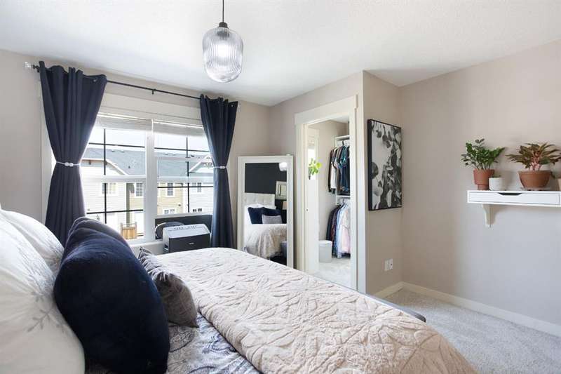 Welcome to this beautifully updated 2-storey townhome nestled in the tranquil and highly desirable community of Rainbow Falls. Perfectly situated in a quiet area, this home backs onto peaceful green space with a walking path—ideal for morning strolls or unwinding in the evening. Renovated just three years ago, the home features updated flooring, fully refreshed bathroom fixtures, and a modernized kitchen complete with stainless steel appliances and a brand-new fridge still under warranty. The main bathroom has been entirely redone, and the home showcases custom built-in closets crafted by California Closets, along with updated light fixtures throughout. Additional thoughtful touches include new storm doors installed in 2024 and new front closet doors. The main floor boasts an inviting open-concept layout with a spacious living room and central kitchen island, finished in warm, neutral tones that provide a welcoming, versatile backdrop. The lower level is drywalled and ready for your creative vision—whether you’re looking to add a cozy family room, home office, or extra bedroom. Located close to shopping, schools, parks, golf courses, Chestermere Lake, and only a short commute to downtown Calgary, this home offers the perfect combination of comfort, convenience, and community. Don’t miss your opportunity to call Rainbow Falls home.