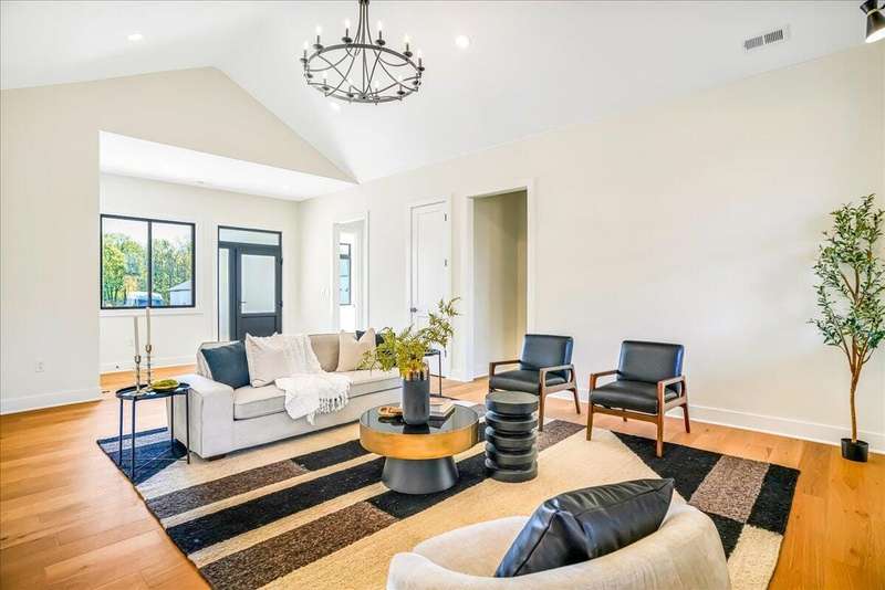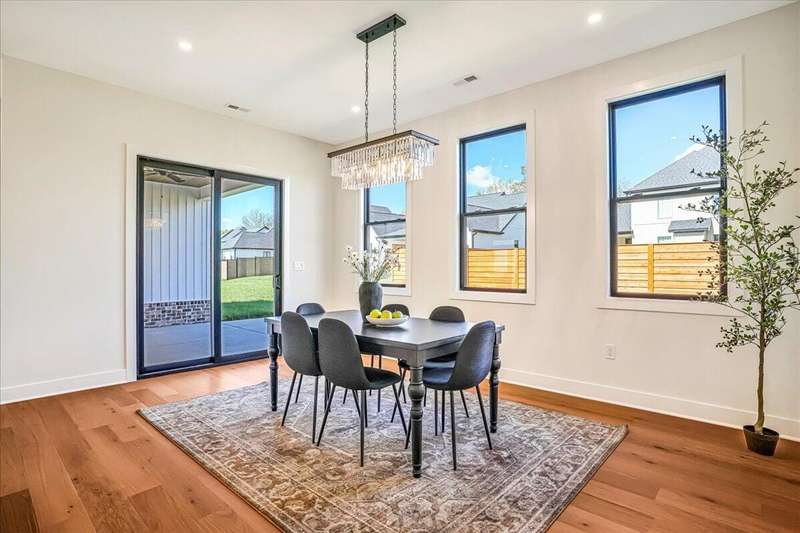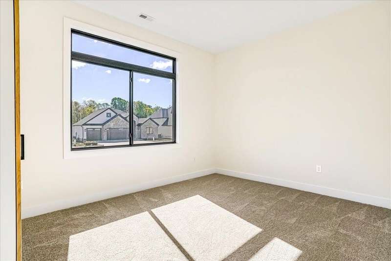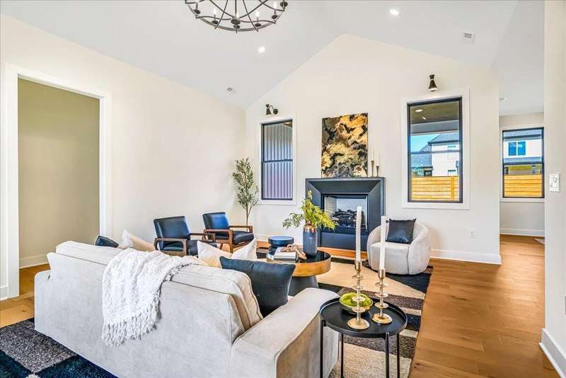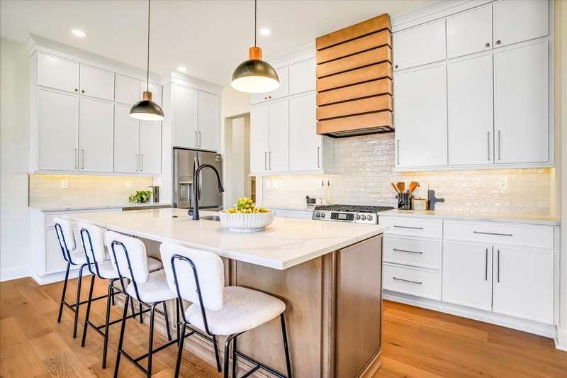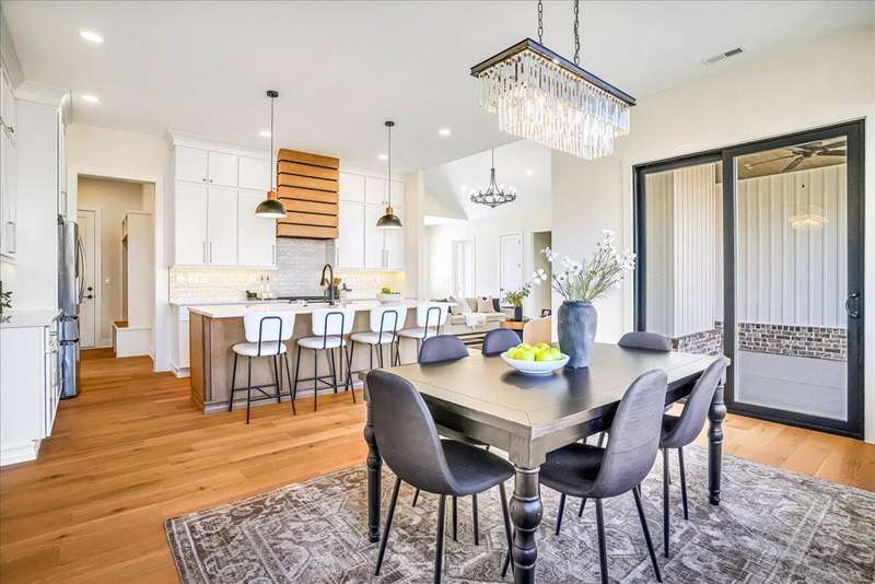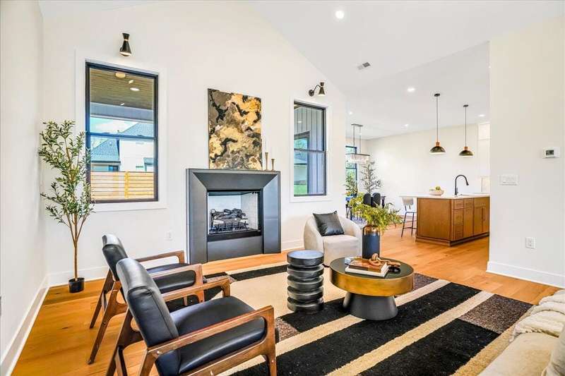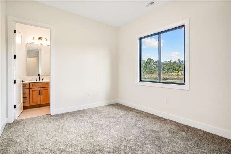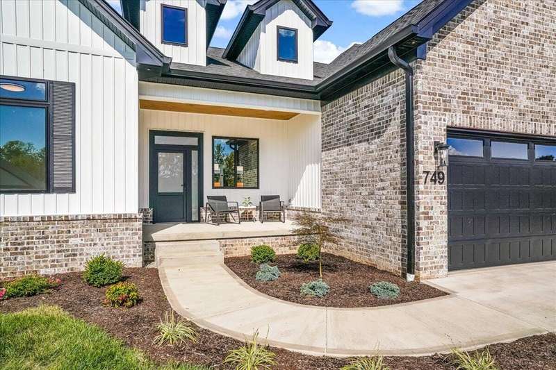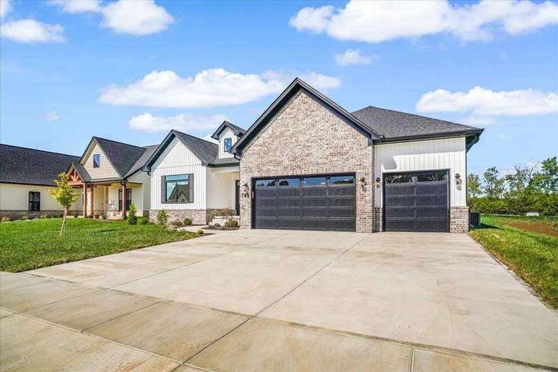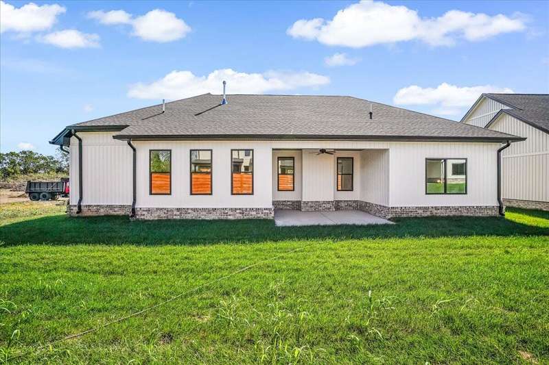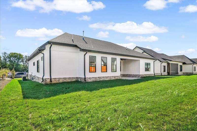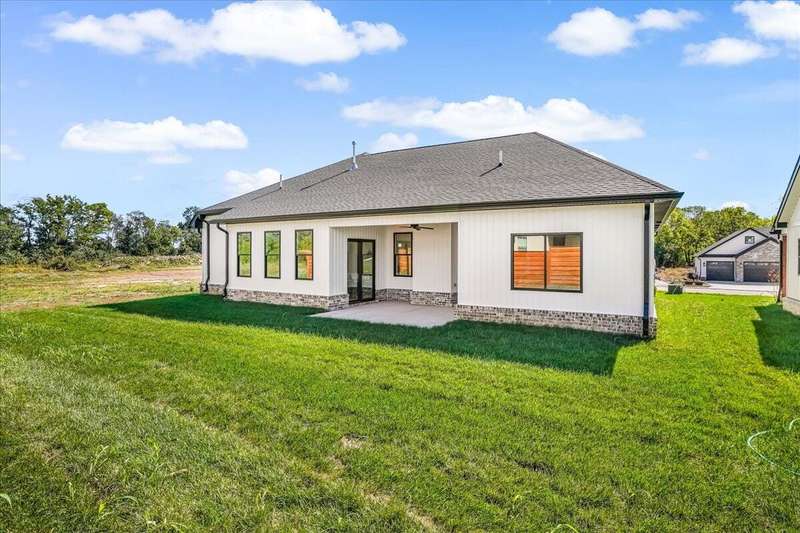 Beautiful New Construction Ranch - Thoughtfully Designed with Exceptional Finishes Welcome to this stunning new construction, single-story ranch offering modern design, open-concept living, and exceptional craftsmanship throughout. The spacious entryway leads to a dedicated office featuring a custom feature wall and double French doors, providing the perfect space for remote work or study. The living room boasts abundant natural light and a cozy fireplace, seamlessly connecting to the kitchen and dining area. The kitchen showcases a wood island, white cabinetry extending to the ceiling, a custom wood vent hood, and elegant quartz countertops. A walk-in pantry with built-in shelving and a drop zone off the garage add both beauty and functionality. The adjoining dining area offers access to the covered back patio, ideal for outdoor entertaining or relaxing evenings. The primary suite is a private retreat featuring an accent wall, a luxurious bathroom with dual vanities and under-cabinet lighting, a freestanding soaking tub, a walk-in shower, and a spacious walk-in closet. A guest bedroom with an attached full bath provides comfort and privacy, while an additional full bathroom serves the remaining living spaces. The well-designed laundry room includes a transom window for natural light, sink, and ample cabinetry for storage. Additional features include: Three full bathrooms Covered back patio Drop zone off garage entry Walk-in pantry with shelving Large laundry room with sink and cabinetry Premium finishes throughout This home combines timeless style with everyday convenience, all on one level. A perfect opportunity to own a beautifully designed, move-in ready new construction home.