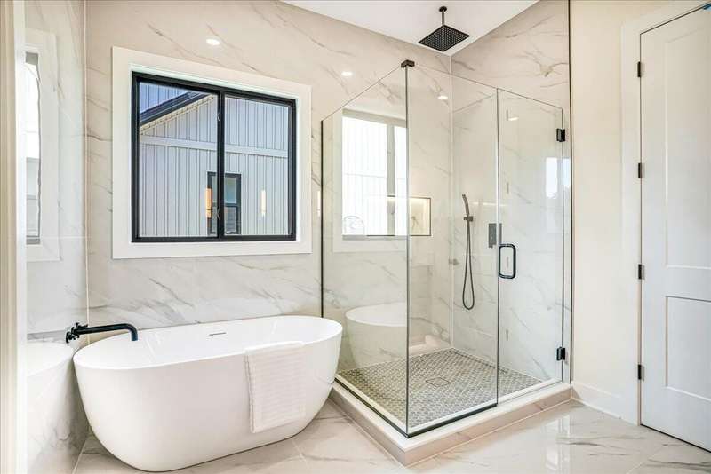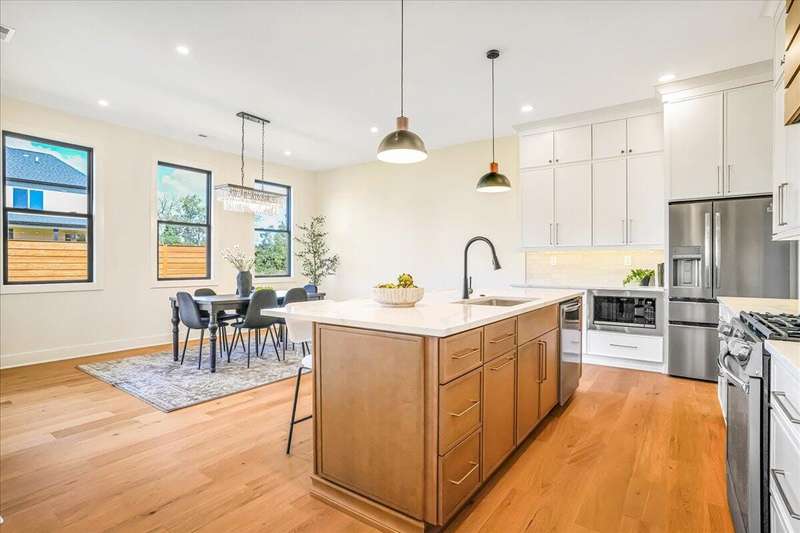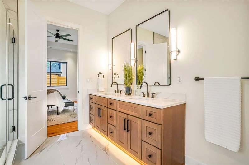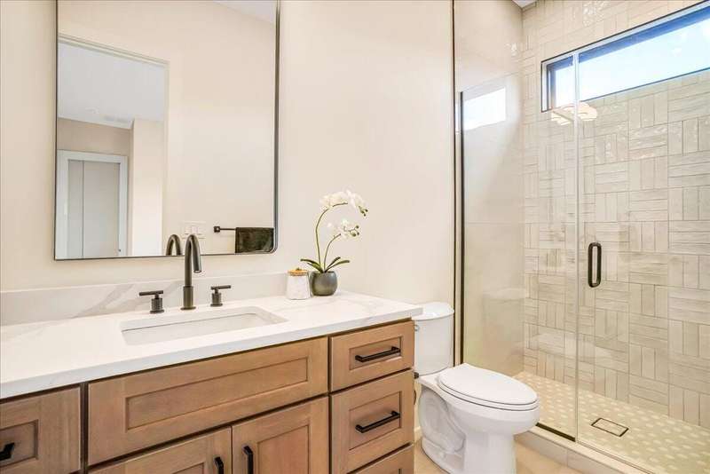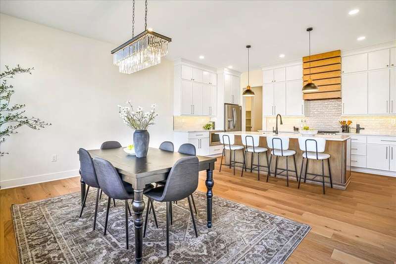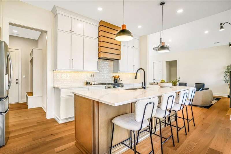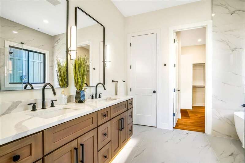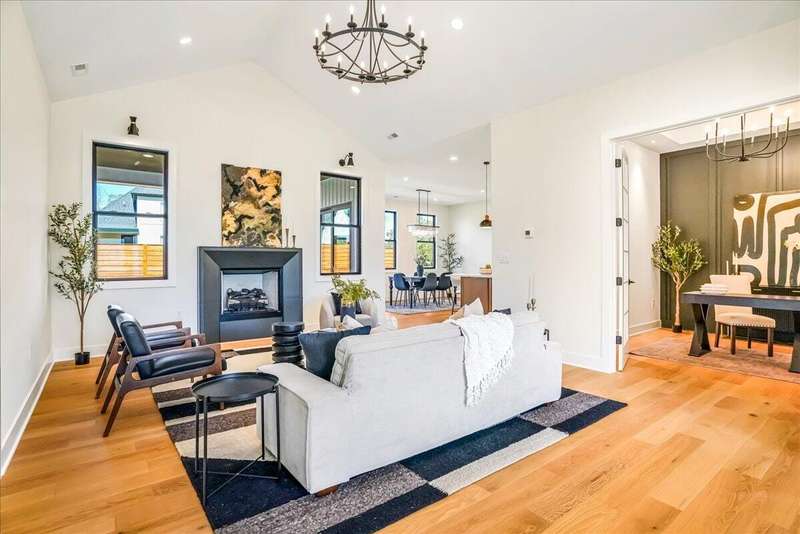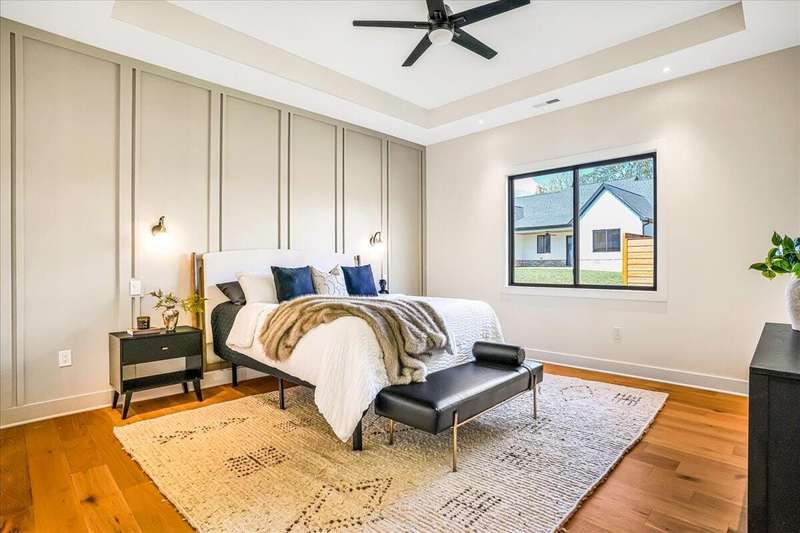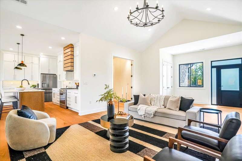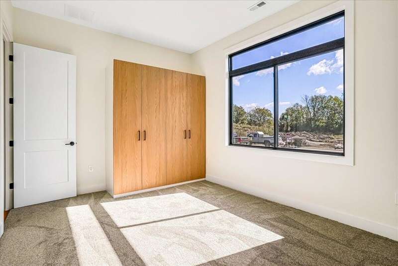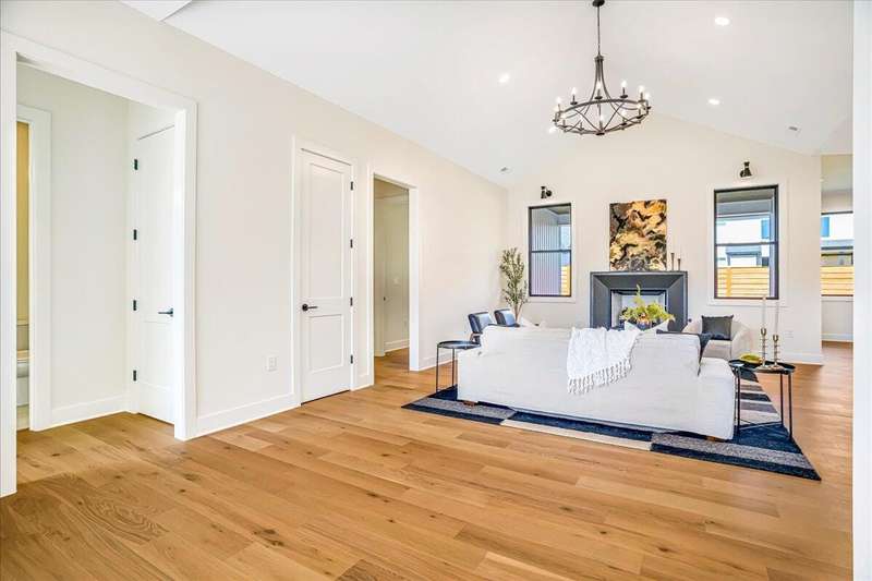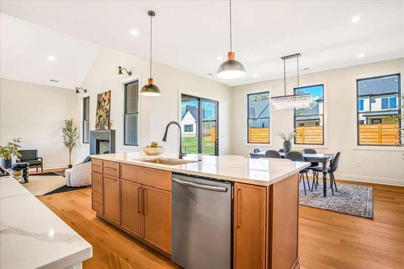 Beautiful New Construction Ranch - Thoughtfully Designed with Exceptional Finishes Welcome to this stunning new construction, single-story ranch offering modern design, open-concept living, and exceptional craftsmanship throughout. The spacious entryway leads to a dedicated office featuring a custom feature wall and double French doors, providing the perfect space for remote work or study. The living room boasts abundant natural light and a cozy fireplace, seamlessly connecting to the kitchen and dining area. The kitchen showcases a wood island, white cabinetry extending to the ceiling, a custom wood vent hood, and elegant quartz countertops. A walk-in pantry with built-in shelving and a drop zone off the garage add both beauty and functionality. The adjoining dining area offers access to the covered back patio, ideal for outdoor entertaining or relaxing evenings. The primary suite is a private retreat featuring an accent wall, a luxurious bathroom with dual vanities and under-cabinet lighting, a freestanding soaking tub, a walk-in shower, and a spacious walk-in closet. A guest bedroom with an attached full bath provides comfort and privacy, while an additional full bathroom serves the remaining living spaces. The well-designed laundry room includes a transom window for natural light, sink, and ample cabinetry for storage. Additional features include: Three full bathrooms Covered back patio Drop zone off garage entry Walk-in pantry with shelving Large laundry room with sink and cabinetry Premium finishes throughout This home combines timeless style with everyday convenience, all on one level. A perfect opportunity to own a beautifully designed, move-in ready new construction home.