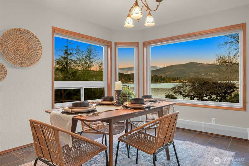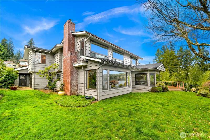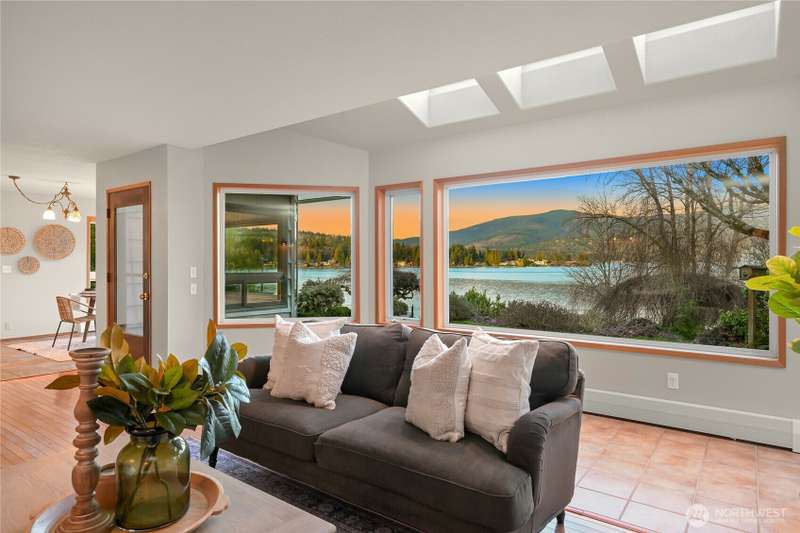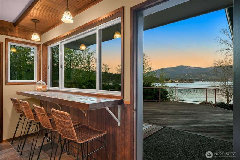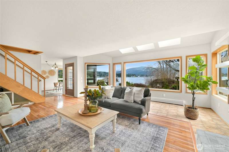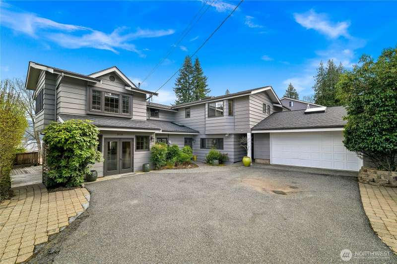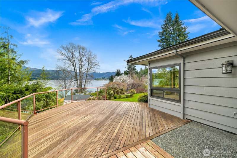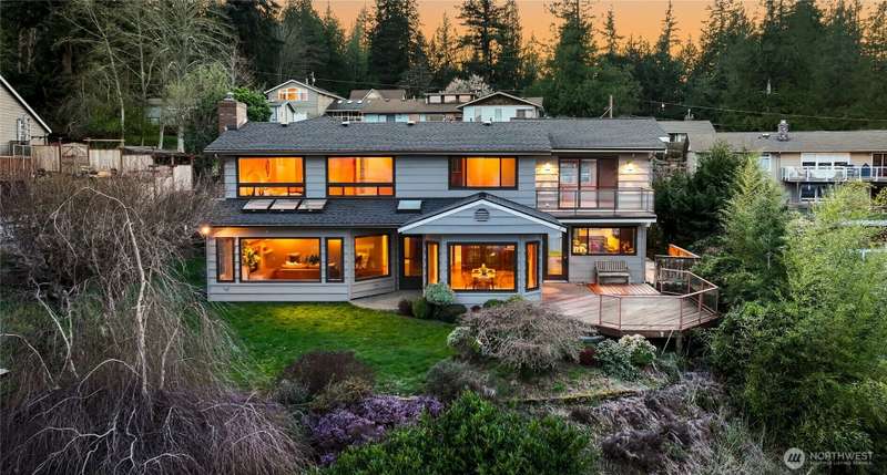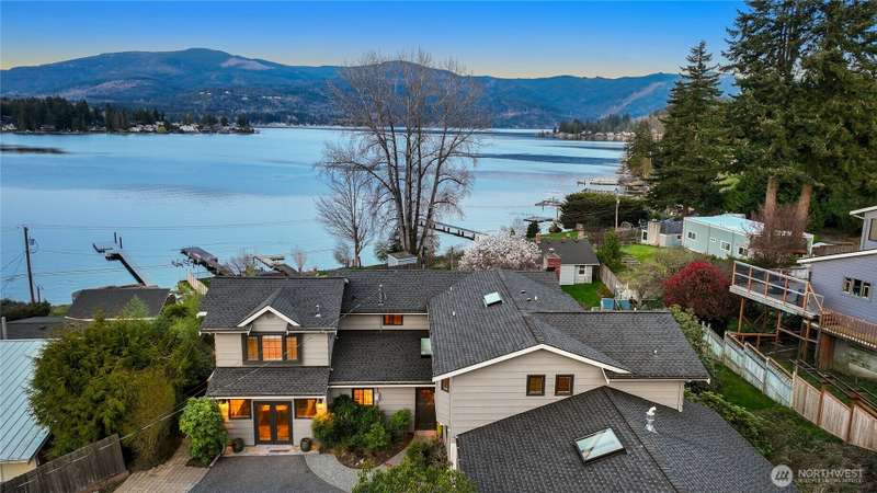 LAKE WHATCOM BEACHFRONT! Approached from a long driveway & perched on a picturesque knoll with 180 degree views overlooking the lake and surrounding mountains. Located in the sought after Geneva neighborhood, this artfully designed 3,600 sqft home is perfectly appointed. Features include an ideal floor plan with two primary suites plus an additional 4 bedrooms/office, 4.5 baths, multiple living areas with 3 fireplaces and a large garage attached by a breezeway. Nicely landscaped level yard with plenty of room for a garden or play equipment. Enjoy the lake lifestyle with nearly 50 feet of waterfront, and improved with a fully fenced level yard, firepit, beach cabana with adjacent deck, bulkhead, dock, and even includes a hoist for your boat!