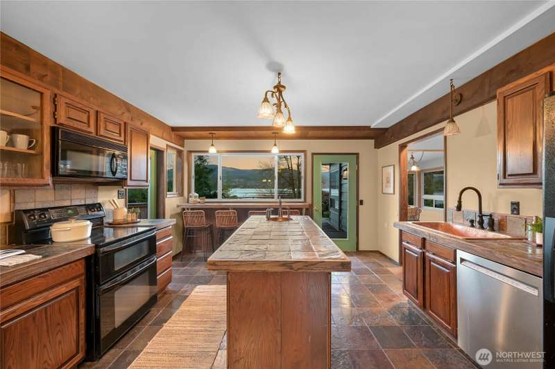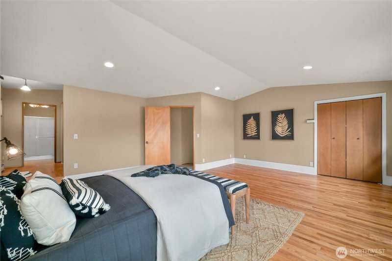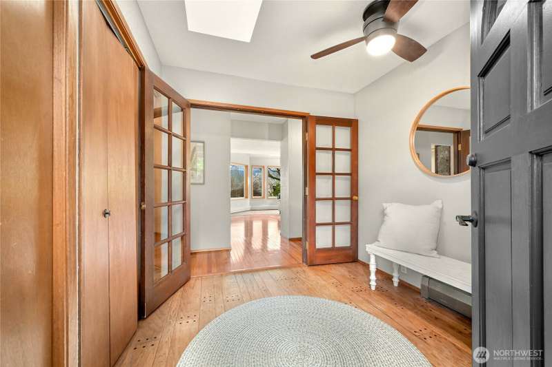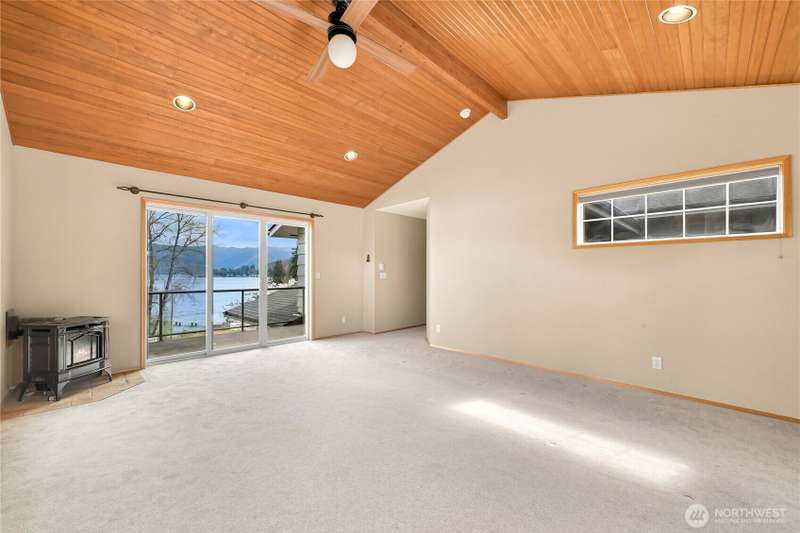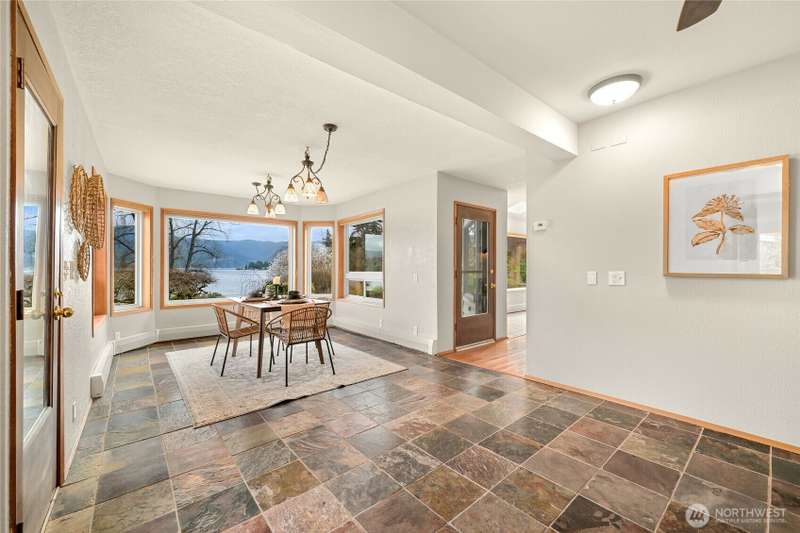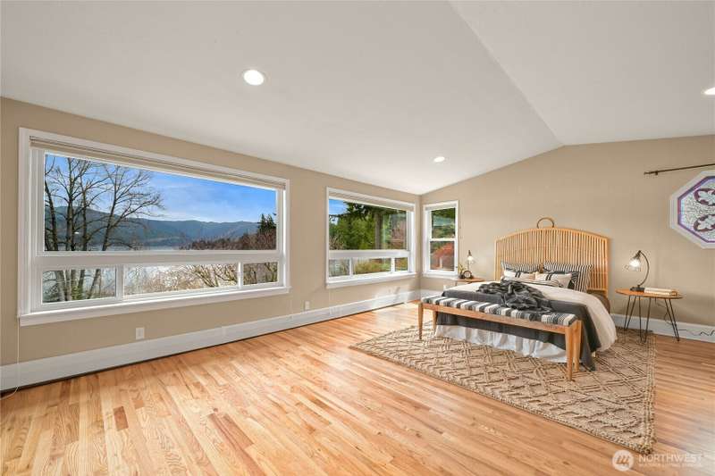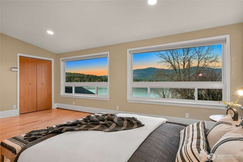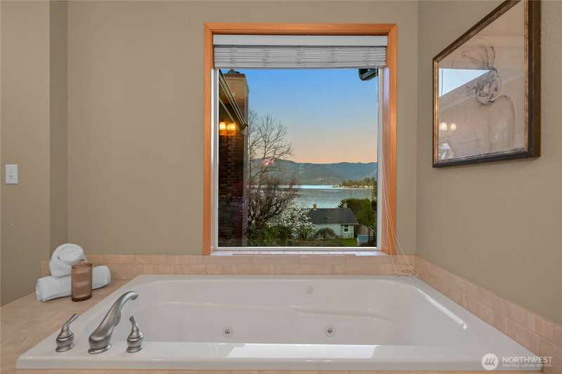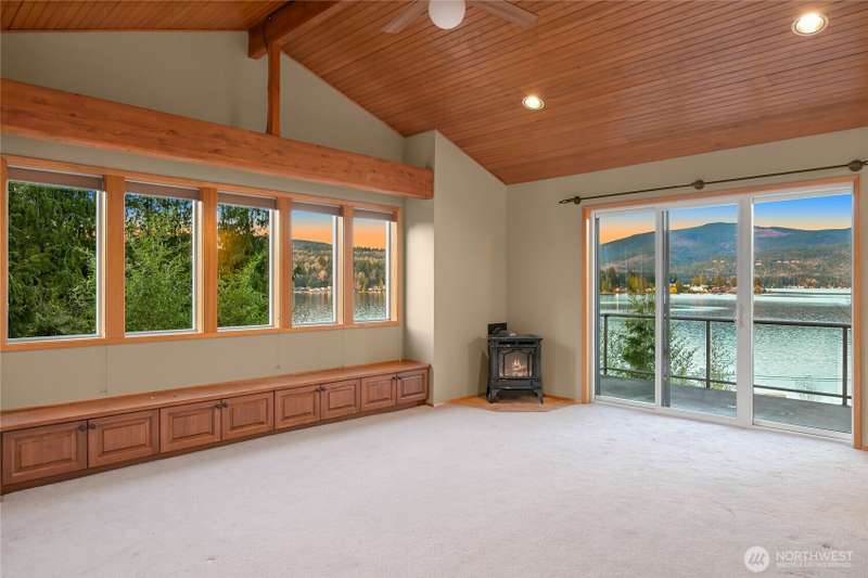 LAKE WHATCOM BEACHFRONT! Approached from a long driveway & perched on a picturesque knoll with 180 degree views overlooking the lake and surrounding mountains. Located in the sought after Geneva neighborhood, this artfully designed 3,600 sqft home is perfectly appointed. Features include an ideal floor plan with two primary suites plus an additional 4 bedrooms/office, 4.5 baths, multiple living areas with 3 fireplaces and a large garage attached by a breezeway. Nicely landscaped level yard with plenty of room for a garden or play equipment. Enjoy the lake lifestyle with nearly 50 feet of waterfront, and improved with a fully fenced level yard, firepit, beach cabana with adjacent deck, bulkhead, dock, and even includes a hoist for your boat!