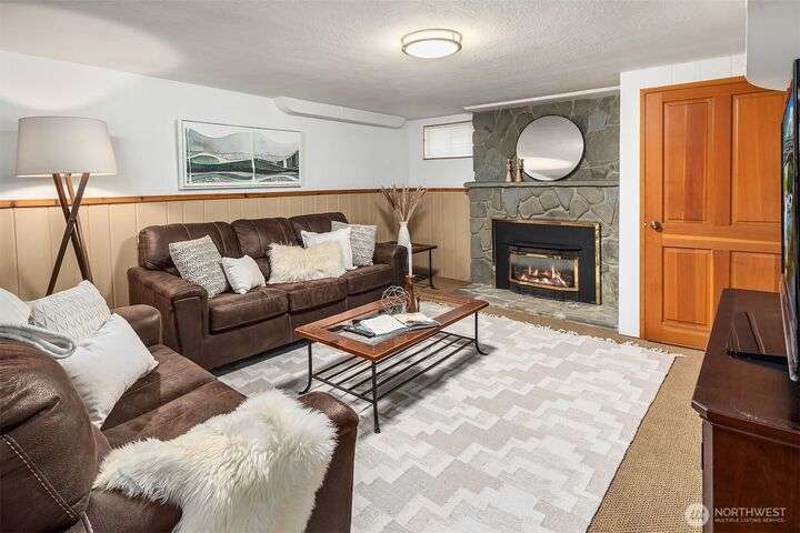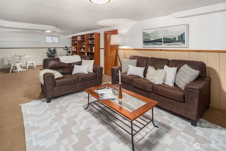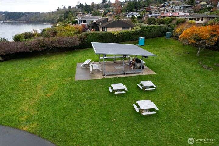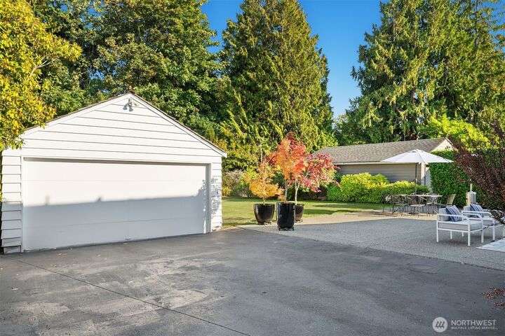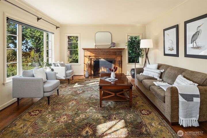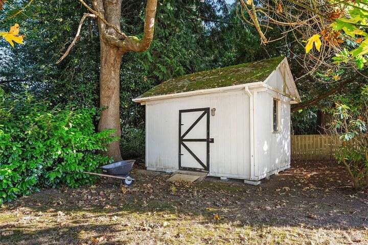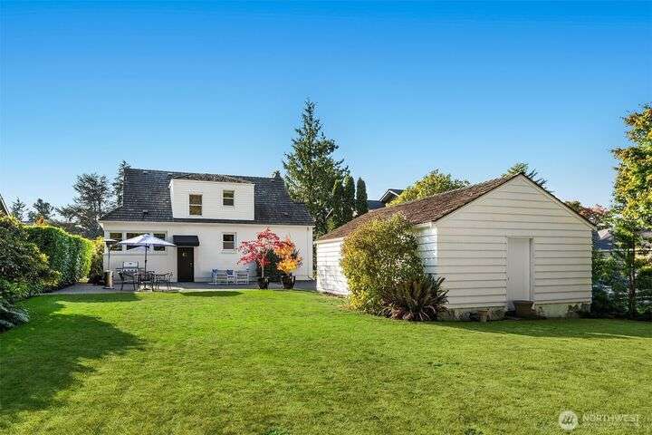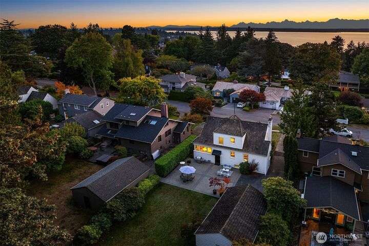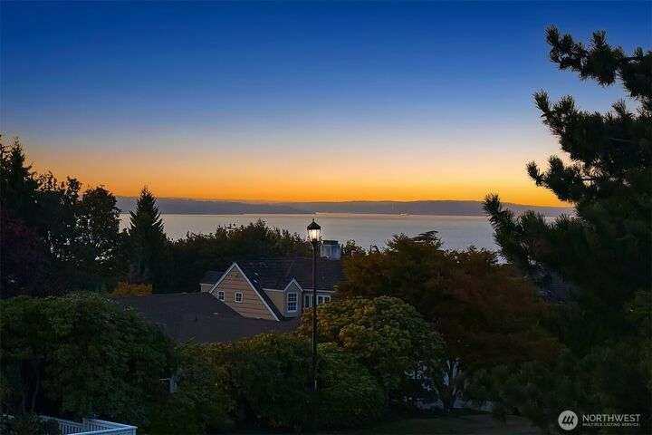 Timeless charm meets unbeatable amenities in this meticulously maintained 1940 classic, offered for the first time in 25 years. Situated on a street-to-street lot with westerly territorial views and glimpses of Puget Sound and the Olympics, this home offers a traditional layout with thoughtful updates. The remodeled kitchen with eating nook complements a sun-filled living room anchored by the fireplace—perfect for entertaining. Three bedrooms span the main and upper floors, with a guest room, ¾ bath, family room, laundry, and generous storage below. Outside, enjoy a 580-sf two-car garage, garden shed, and backyard ideal for play or gardening. Community perks: clubhouse, pool, tennis/pickleball courts, and an enviable private beach park.