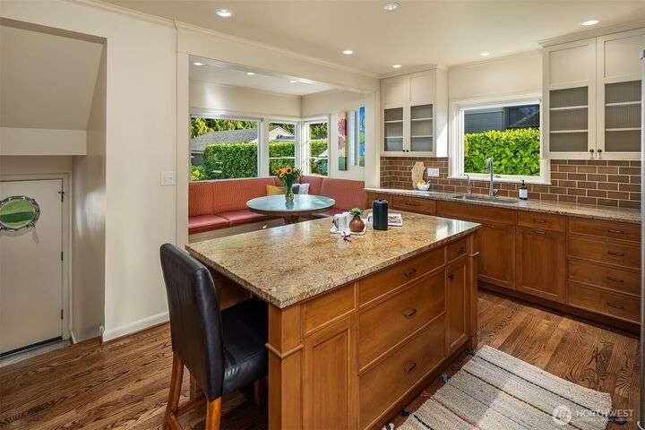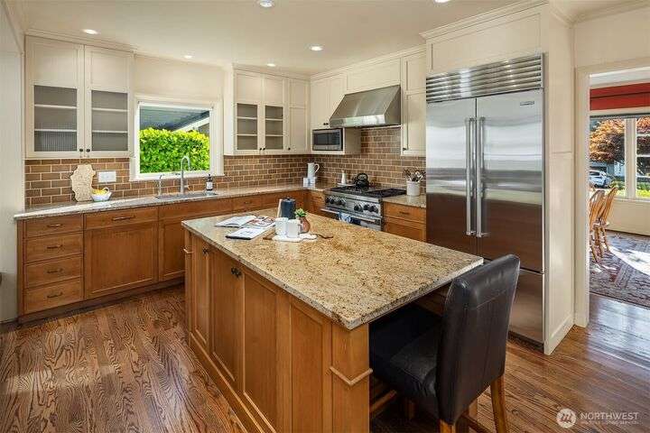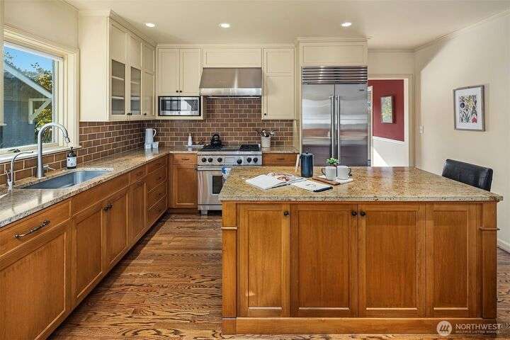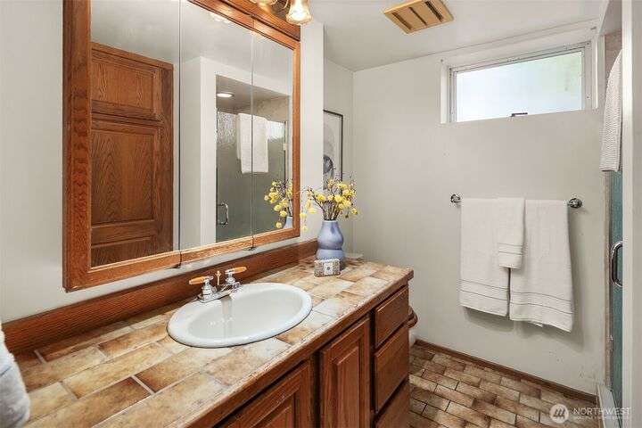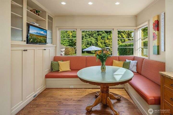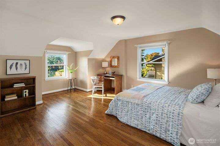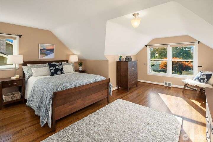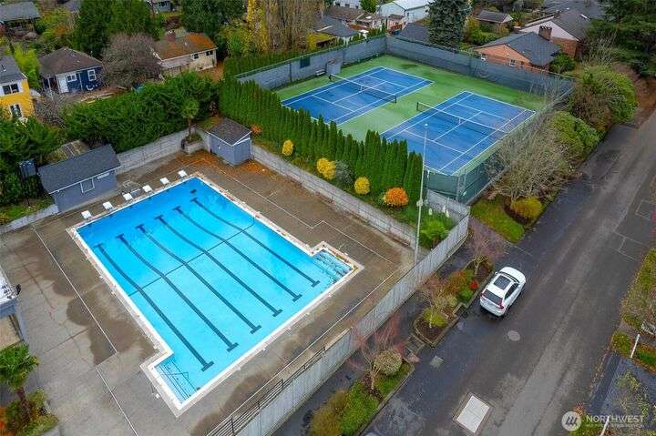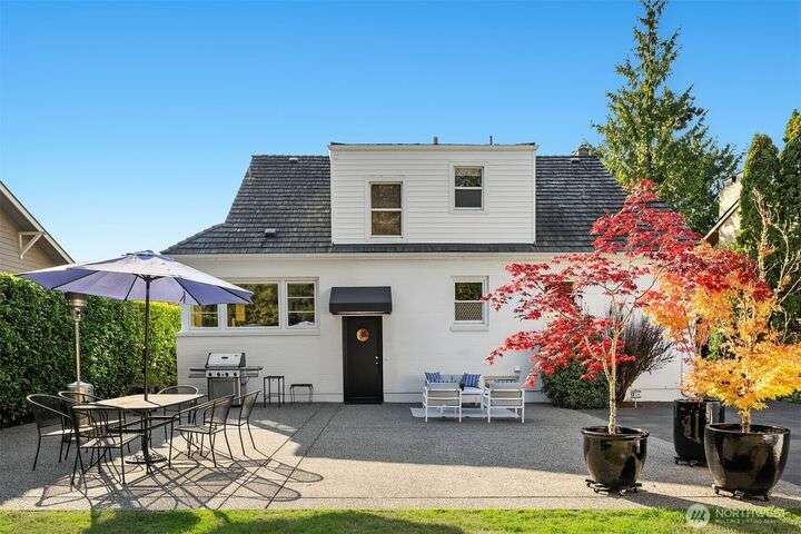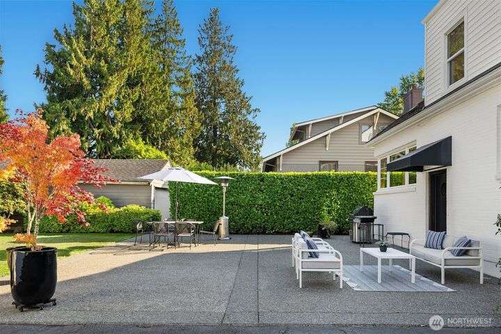 Timeless charm meets unbeatable amenities in this meticulously maintained 1940 classic, offered for the first time in 25 years. Situated on a street-to-street lot with westerly territorial views and glimpses of Puget Sound and the Olympics, this home offers a traditional layout with thoughtful updates. The remodeled kitchen with eating nook complements a sun-filled living room anchored by the fireplace—perfect for entertaining. Three bedrooms span the main and upper floors, with a guest room, ¾ bath, family room, laundry, and generous storage below. Outside, enjoy a 580-sf two-car garage, garden shed, and backyard ideal for play or gardening. Community perks: clubhouse, pool, tennis/pickleball courts, and an enviable private beach park.
