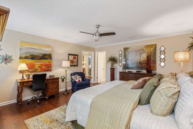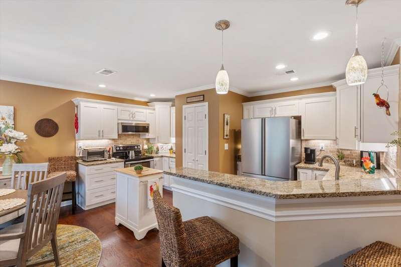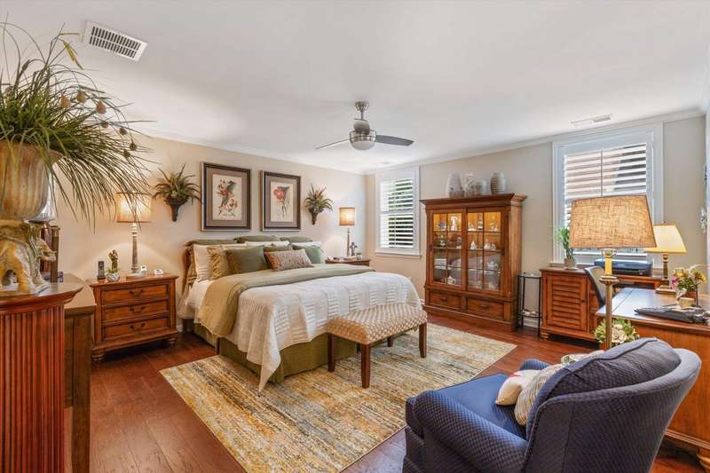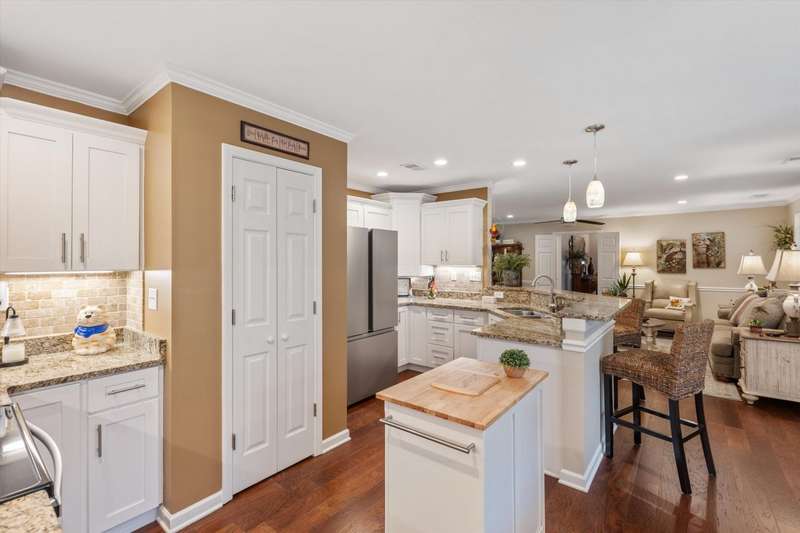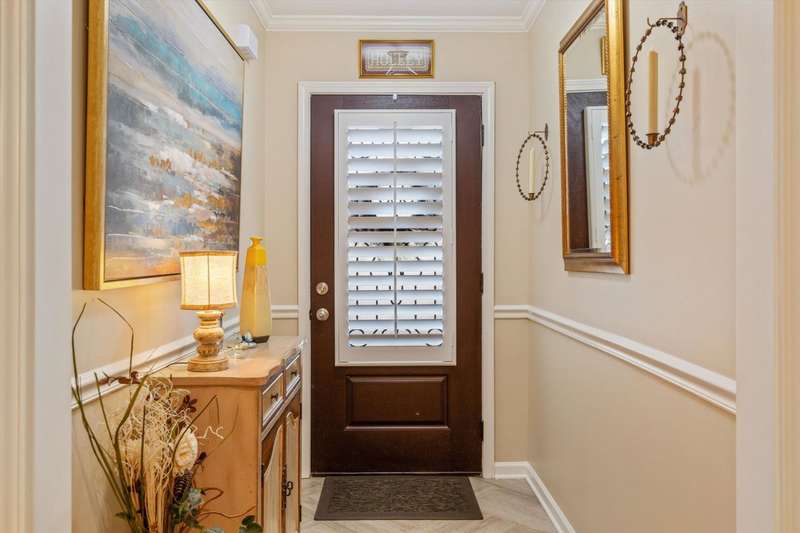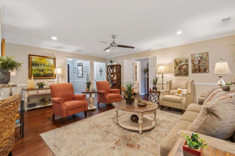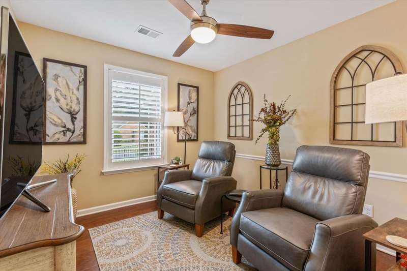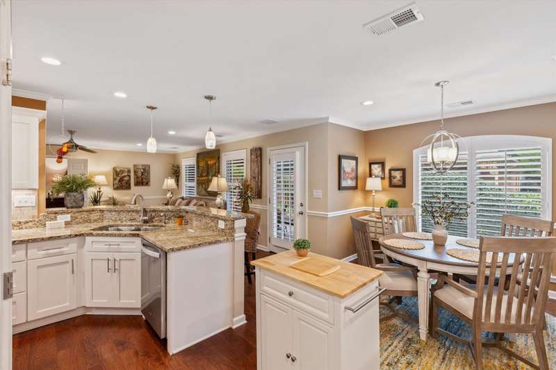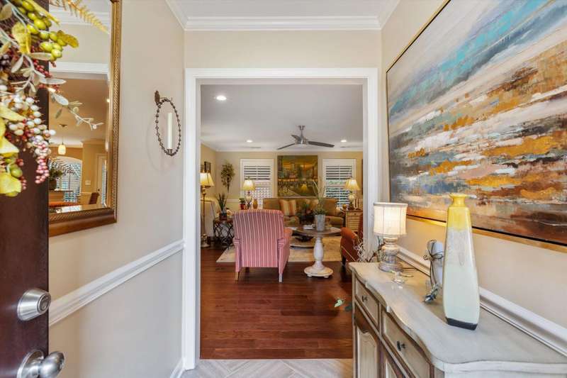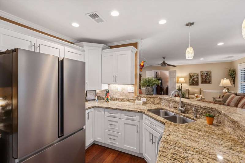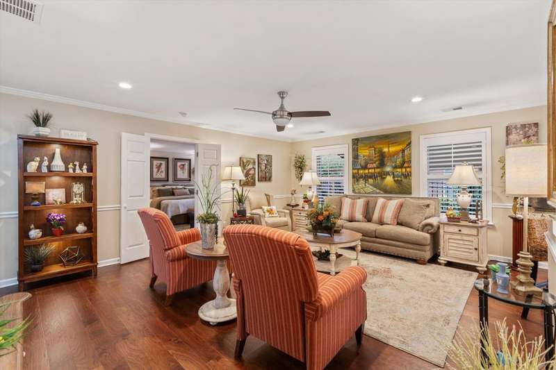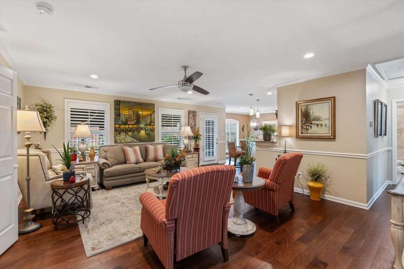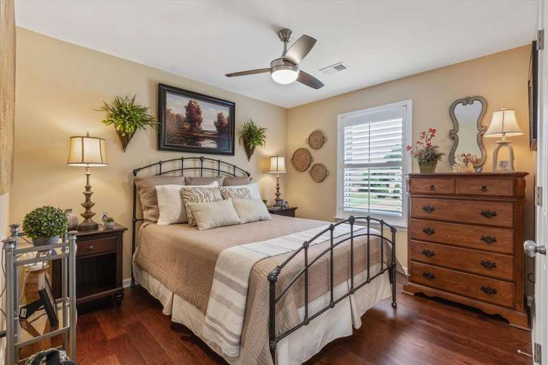 Hard to find gated private subdivision totally tucked away - You will have a hard time finding anything comparable lin this price range. Custom built in 2019 this one-story home has hardwood floors, smooth ceilings, beautiful spacious and thoughtout floorplan with no wasted space. Primary suite features well designed bath with separate shower & dual sinks, split bedroom plan has other 2 bedrooms on opposite end of the house -- open great room and kitchen with breakfast area, pantry, breakfast bar and granite countertops plus double ovens & microwave. Laundry room, cable wired, and all plantation shutters stay -- the patio area has retractable sun shades and is made for morning coffee or afternoon sunset viewing. As opposed to many zero lot lines this one has extra parking in the front for guests.