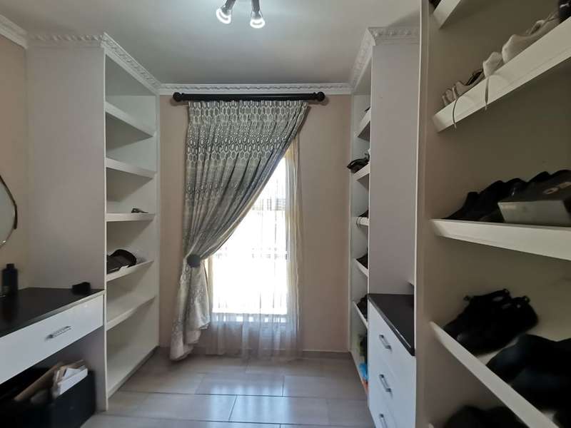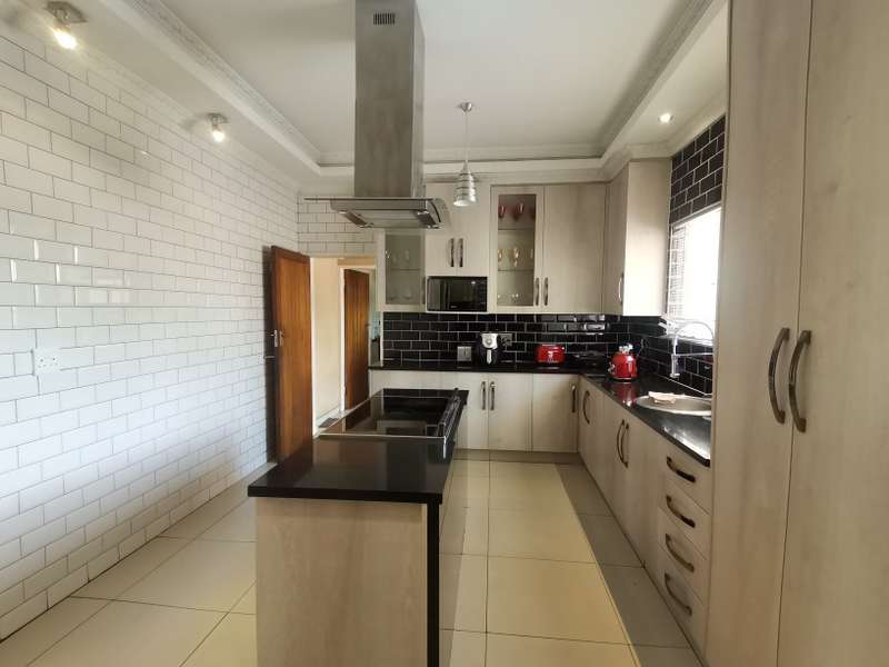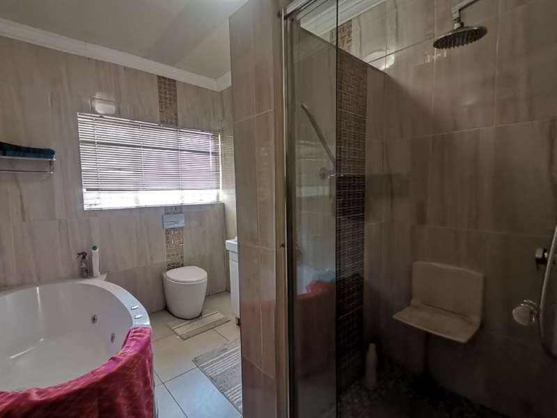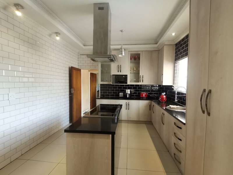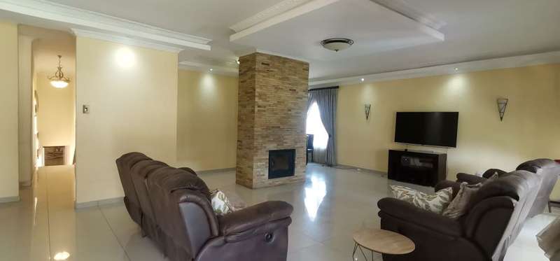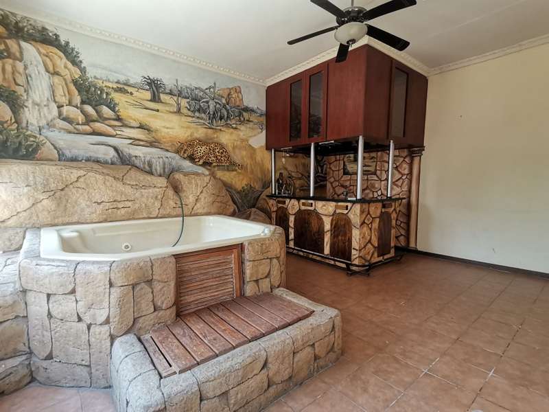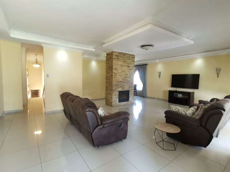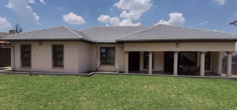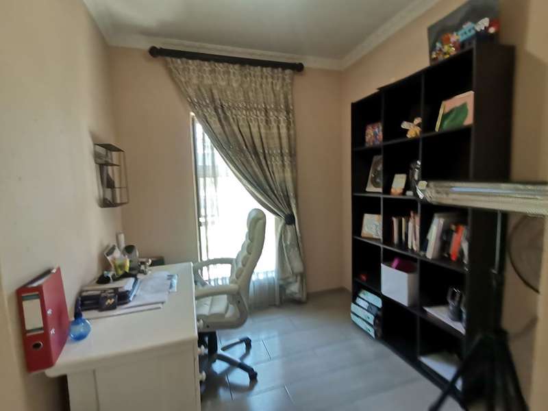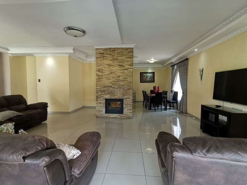 This ideal property comprises of 4 large bedrooms, (Main bedroom with en-suite, walk-in-closet, a study and a private patio outside complimented by 2 other bathrooms (1 full bathroom & another for guests). Entering from the front with an open patio leading into an open main living room and lounge plus TV room & dining room coupled by a double-sided fireplace to keep family warm in winter and a masterpiece open plan kitchen, beautifully fitted with loads of built-in cupboards, scullery and pantry. A Granny flat is an added bonus equipped with 2 bedrooms, bathroom, kitchen & lounge . Other extras include entertainment area with bar and Jacuzzi, balcony area with outside kitchen, overlooking the beautiful scenery, servant’s quarters, double garage, double carport, laundry room, gym area, and a Wendy house. The property is well secured with electric fencing all round. This beautiful property is located within close proximity to Mondeor High school & Primary school, Columbine Square shopping centre, doctors & dentists, N1 Freeway, The Glen Shopping Centre and much more.