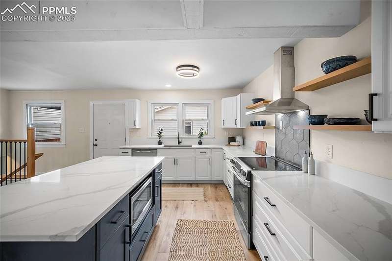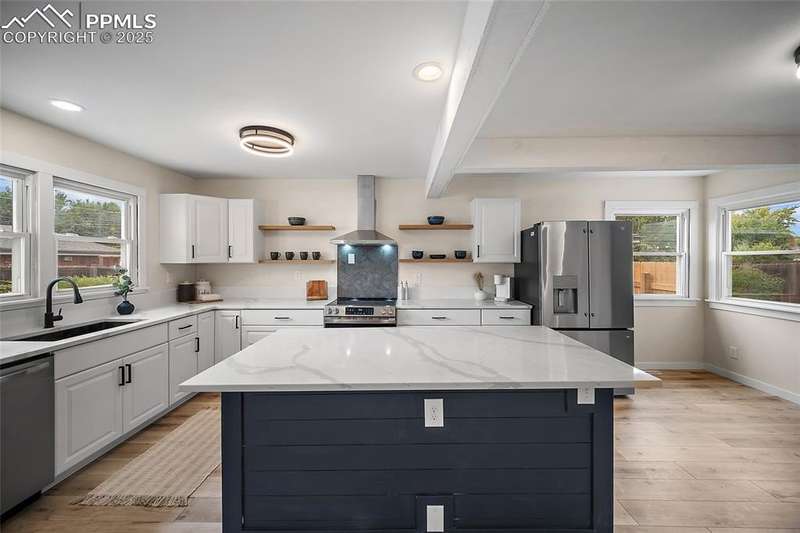 Marvel at the massive rooms on every floor of this renovated tri-level. A huge and stylish kitchen combines open shelving and large center island with attached dining area to create a spacious and welcoming hub of a retreat just past the cozier living room with a built-in bookcase. The upper level features a palatial master suite with vaulted ceiling and stand-out wall design, contemporary en suite bath, walk-in closet and a nook for extra storage. Three more bedrooms and a full bath upstairs give you space for everyone and everything you need. The lower level throws a rec room at you that just won't stop. Use it for a game room, movie nights or family time around the fireplace -- or all three at the same time. Outside is more space to roam, with a large patio and a detached oversize garage that can be used as a workshop and two sheds for storage or converting to more cool recreation space. Packed with gorgeous upgrades such as quartz counters, stainless steel appliances, luxury vinyl flooring, tiled baths and designer fixtures, there are endless ways to enjoy this unique and versatile home on a quiet street, centrally located to downtown and everywhere you need to go.