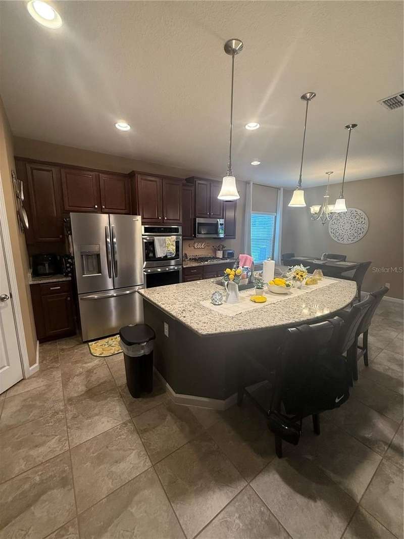 MOTIVATED SELLER...PRICE IMPROVEMENT!!! POOL HOME IN SOUGHT-AFTER ARDMORE RESERVE! This well maintained home sits on a CORNER LOT and is FULLY FENCED-IN with three rear access gates. Enjoy entertaining guests in the open-concept kitchen/family room combo, that contains a large three panel sliding door and separate pool door that lead out to the relaxing pool deck to the SCREENED-IN, SOLAR HEATED, SALTWATER POOL. Back patio has a GAS HOOK UP BUILT IN for the option of a future outdoor kitchen. HUGE eat-in kitchen island with granite countertops, pendant lighting, and a GOURMET KITCHEN WITH STAINLESS STEEL APPLIANCES to include double ovens, a gas cooktop, dishwasher, and a brand new French door refrigerator. Large, wide, beautiful foyer with double glass decorative doors makes moving in a breeze. BONUS den with French doors can be used as a playroom or office. Master bedroom with his/her closets and vanities. Vanities throughout the house are gentleman height and toilets are comfort height. Master shower with double shower heads and separate soaking tub. Upgraded 18-inch tile throughout the main living area, and carpet in the bedrooms. Ceiling fans throughout the house. Indoor laundry room with the option of ELECTRIC OR GAS DRYER HOOK UP. Three car garage for added storage/parking space. Built-in storage racks on the garage ceiling help to keep things organized and out of the way. Paver driveway and pool deck. EXTERIOR OF HOME IS PRE-WIRED FOR CAT5 SECURITY CAMERAS. Holiday decorating is easy with SOFFIT OUTLETS at the front of the home. GATED ACCESS RESORT STYLE COMMUNITY POOL AND PLAYGROUND. LOW QUARTERLY HOA DUES. HIGHLY SOUGHT-AFTER SCHOOLS. Easy commute to shops, restaurants, local hospitals, bike trails, the National Training Center, Minneola Athletic Complex, Minneola Trailhead Park, and turnpike access. Don't miss the opportunity to own this beautiful pool home. Schedule your showing and make this home yours!