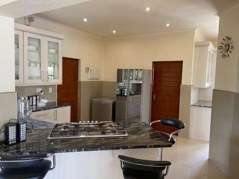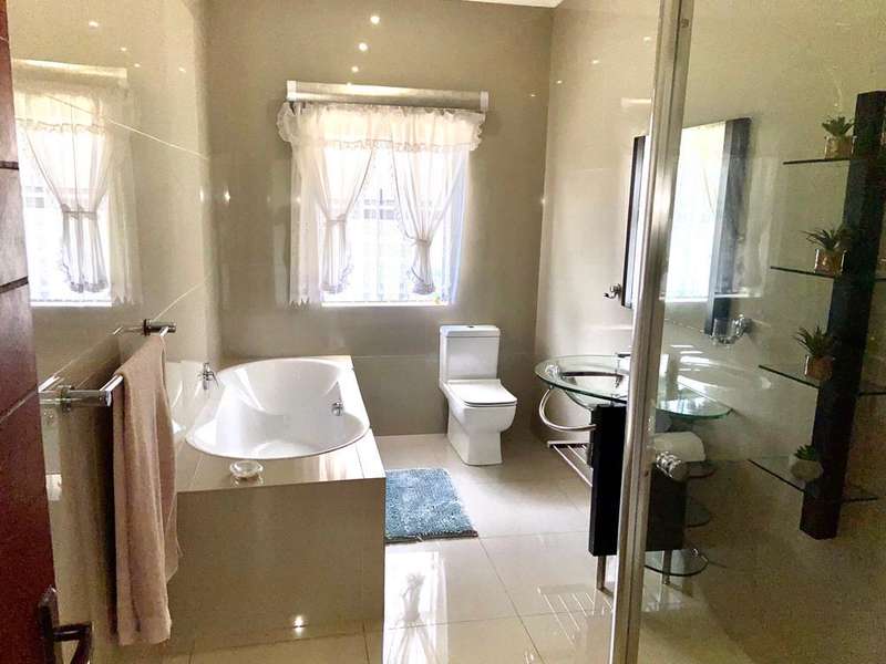 This home welcomes you with an elegant living area, including the dinning and an open plan kitchen with great finishings and a sparkling swimming pool. The house is very spacious with well-established and manicured gardens with various fruits and vegetable. Two of the four bedrooms are en-suit with modern finishes in the bathrooms and are very spacious. The main bedroom has a walk- in closet and opens to the swimming pool area with very a stunning view. Also, for people who love to entertain, the living area can easily be opened into a nice and large entertainment area. This beautiful home is conducive for family and retirement living as it is wheelchair friendly and located in a tranquil, upmarket, and well-established wildlife estate with easy access to adventure sites, malls, shopping centres and many other amenities. Two inverters and solar installations are included in the sale of this property. Don?ÇÖt miss the opportunity to own this home. Call us to view now?Ǫ...