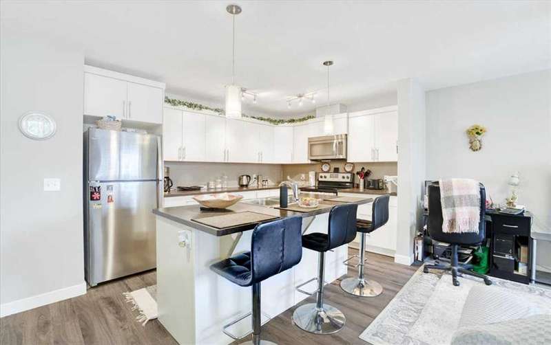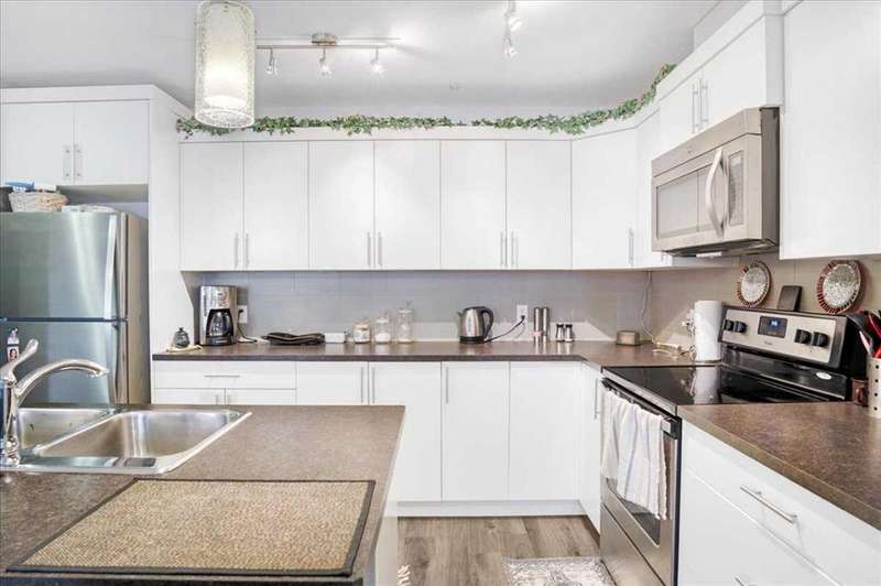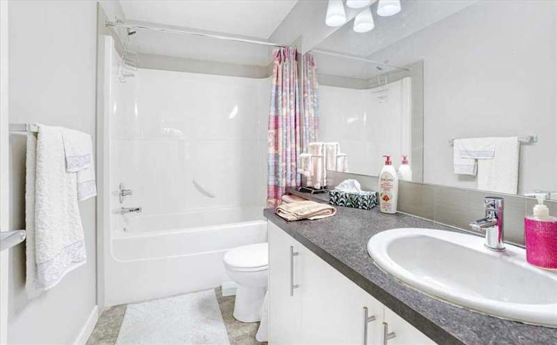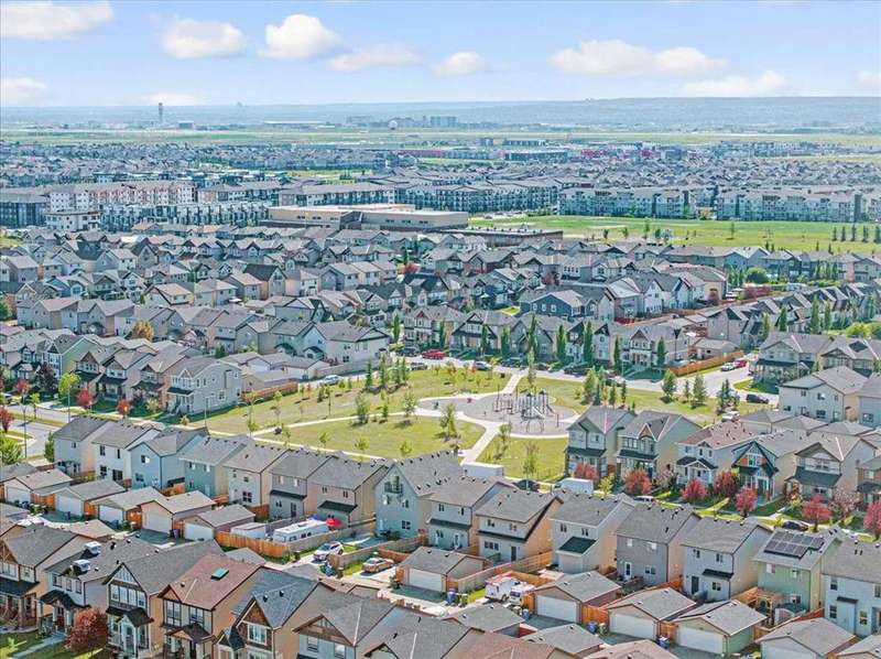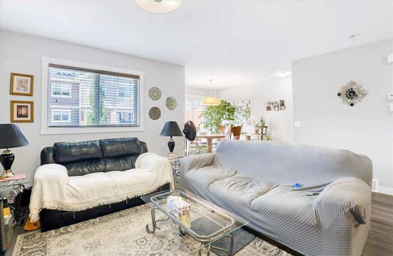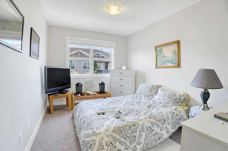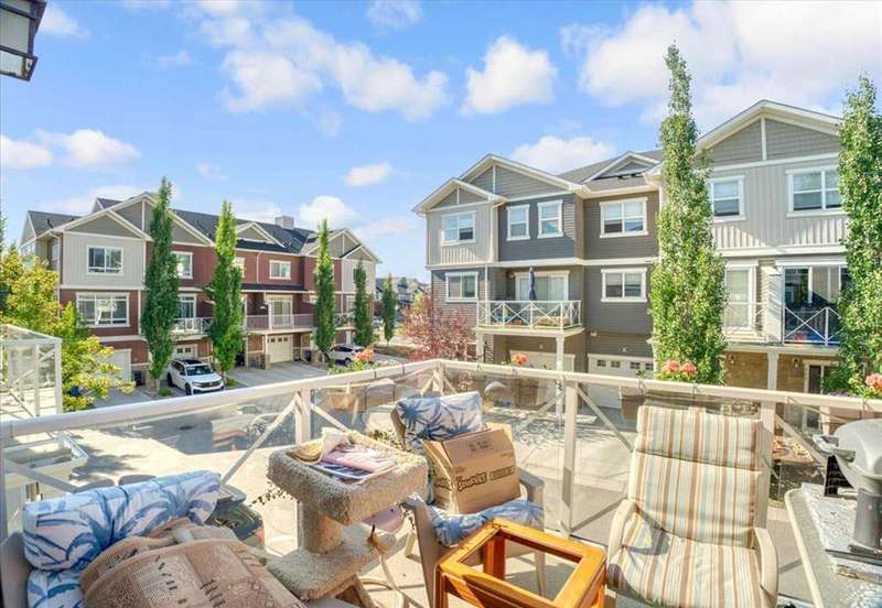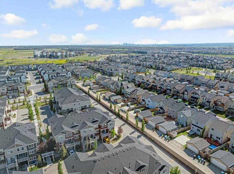 Beautifully Maintained Multi-Level Townhouse in Skyview Ranch Grove This well-kept home features quality finishes throughout, including modern cabinets, flooring, and countertops. The spacious layout offers high ceilings, 2 bedrooms, and 2 bathrooms, providing a comfortable and functional living space. Lightly lived in, the property maintains the fresh feel of a new build. - Ideally located near parks, K-9 schools (Apostles of Jesus and Prairie Sky School), and major amenities such as CrossIron Mills and the airport. The home is equipped with a Heat Recovery Ventilator (HRV) for year-round fresh air and improved energy efficiency. - A generously sized, well-ventilated kitchen makes meal preparation a pleasure, with ample space for daily cooking and entertaining.