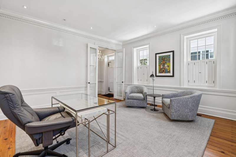 The Colonel James English House: Beautifully sited on a double wide lot within historic South of Broad. This recently restored double-piazza masonry home features impeccable details with fabulous modern updates, including a spacious kitchen/family space to the rear, plus an equally grand primary suite above with elevator access, marble bath finishes, and multiple closets with a separate dressing area.The generous garden offers exceptional light and space. The lot width allows for side by side gated parking and a large pool at the rear of the lush garden. Other amenities include an elevator from the parking area, and a new slate roof. 4 bedrooms, 3 full baths, and 2 half baths. 4,100 SQFT of interior space.No conservation easements have been taken on the property.